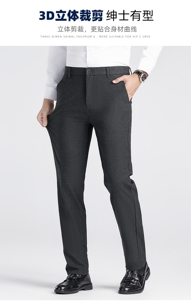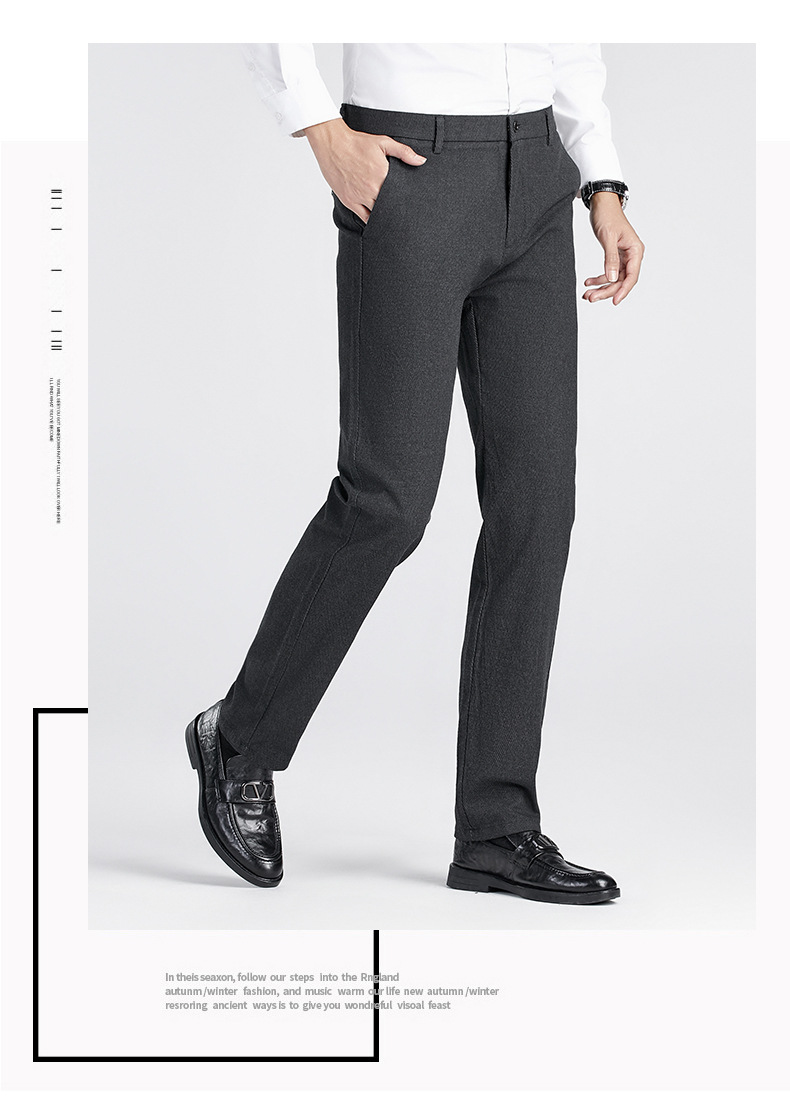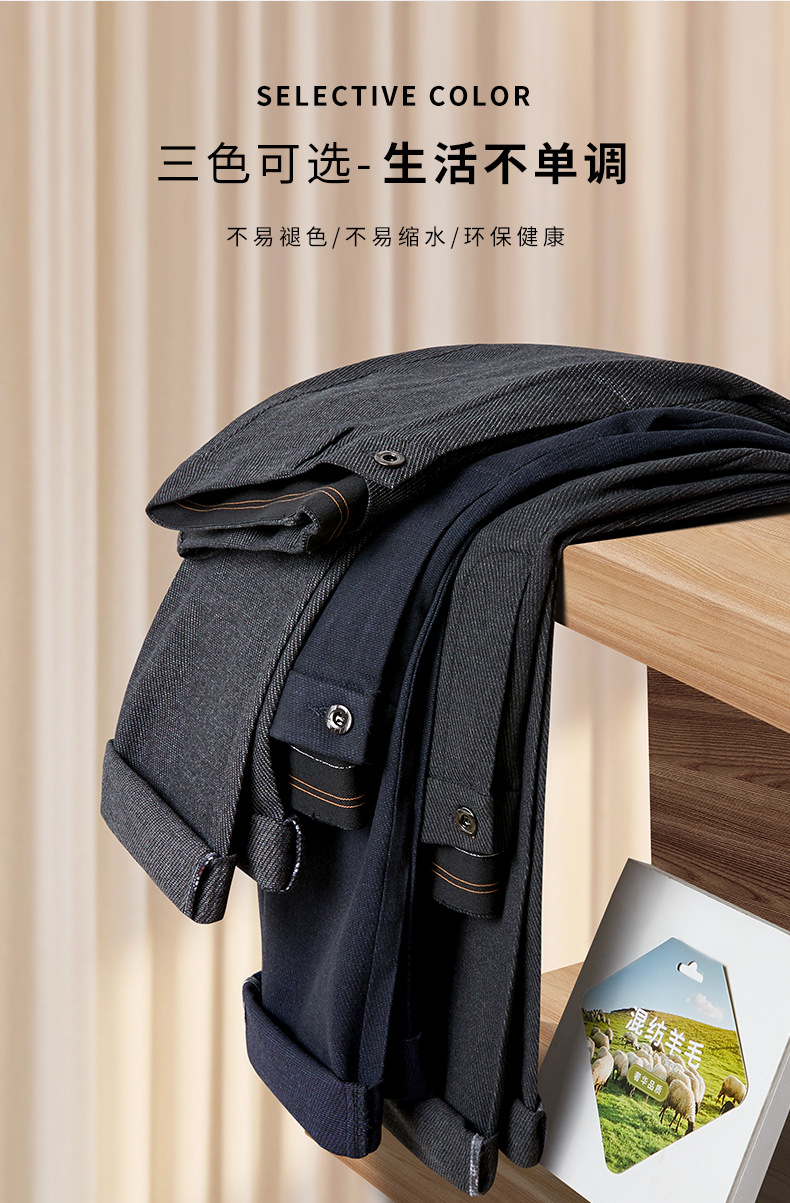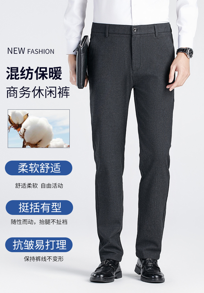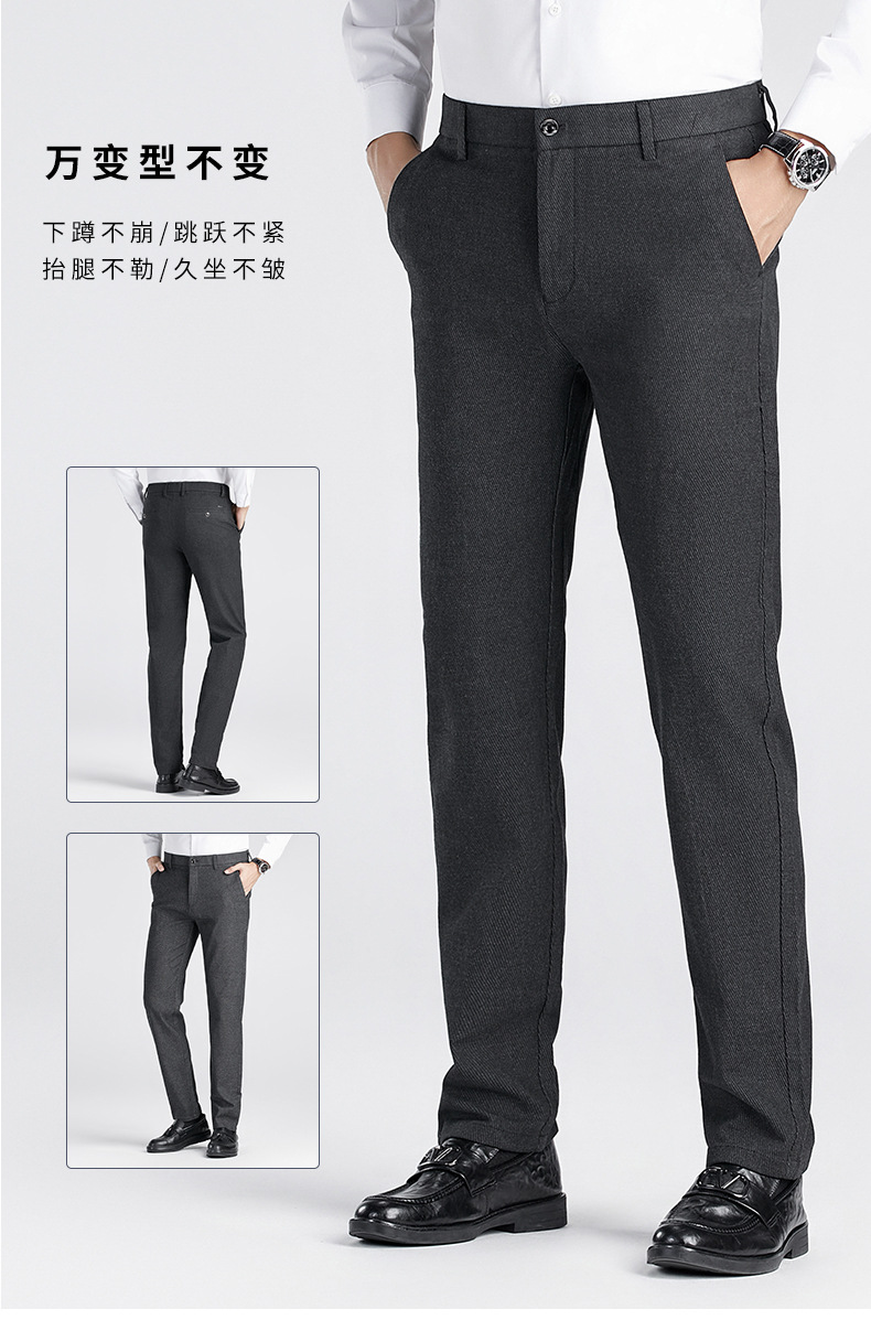 红览 羊毛混纺秋冬抗皱弹力休闲裤男士修身直筒中腰西装裤子H2219