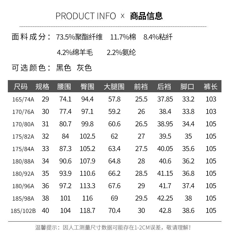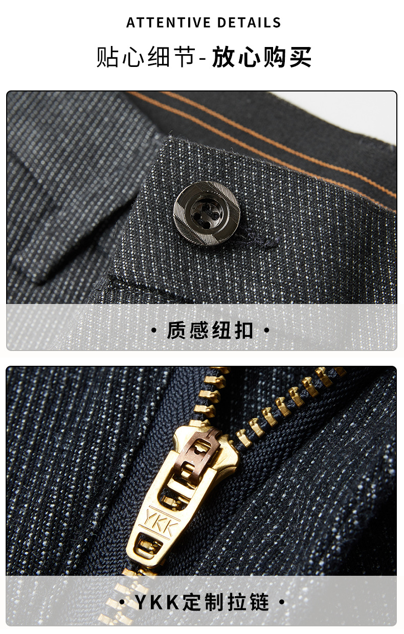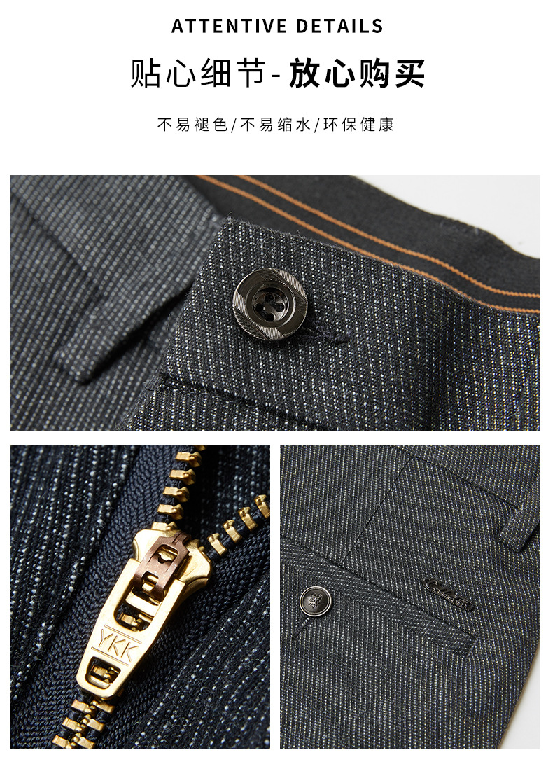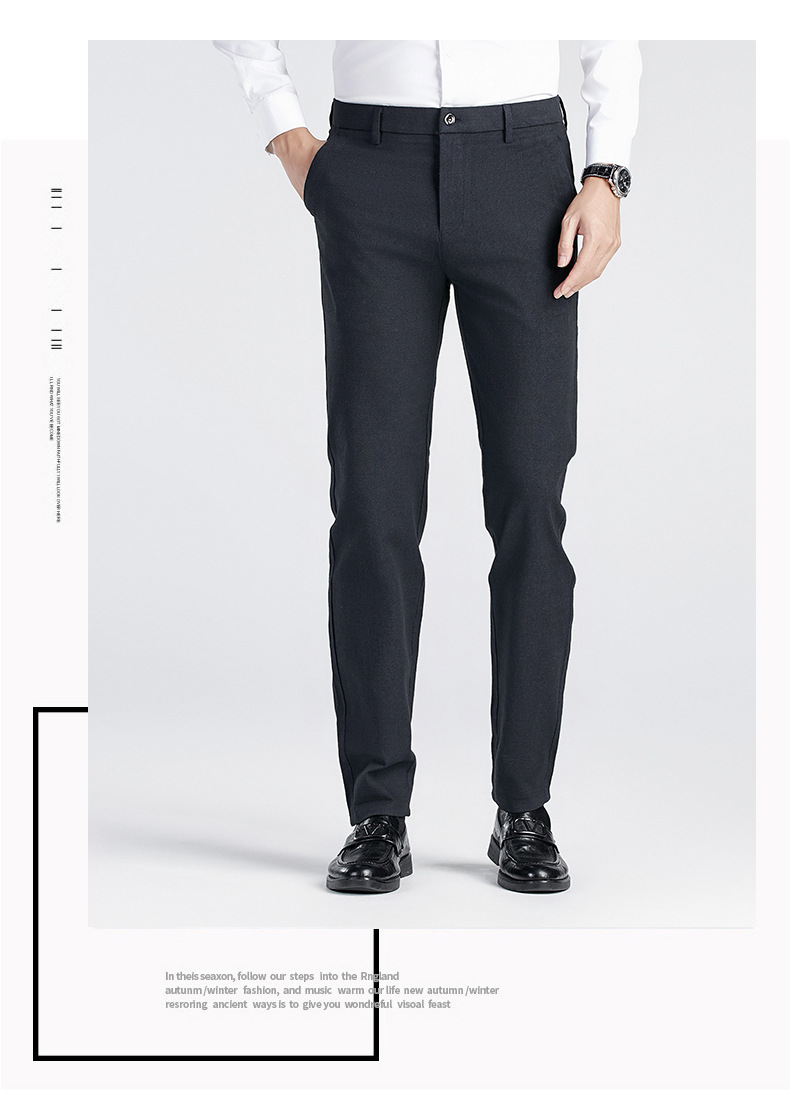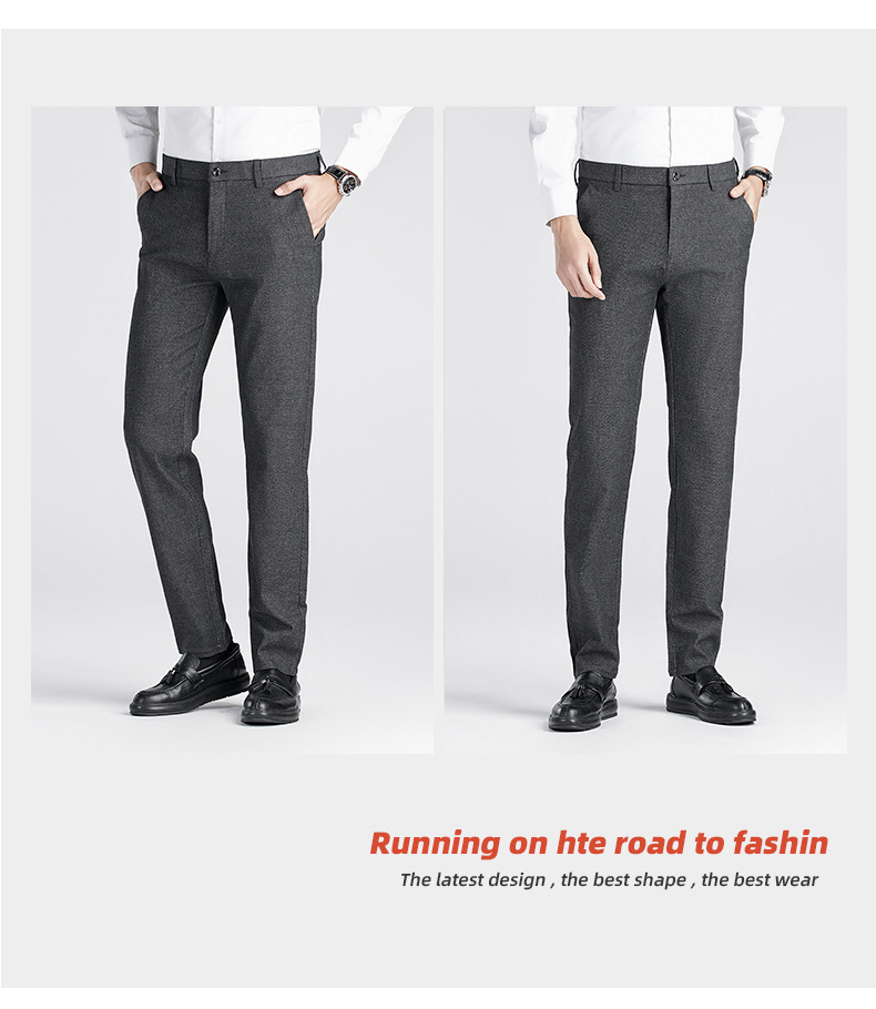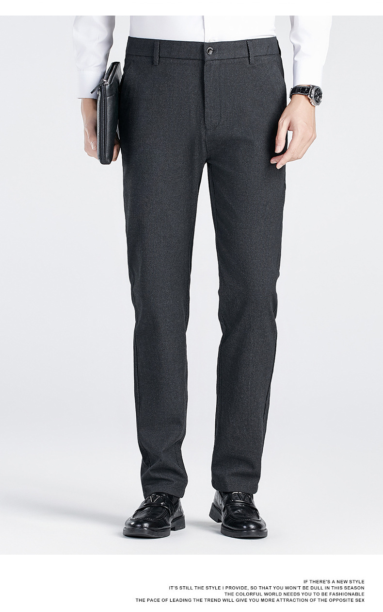 红览 羊毛混纺秋冬抗皱弹力休闲裤男士修身直筒中腰西装裤子H2219