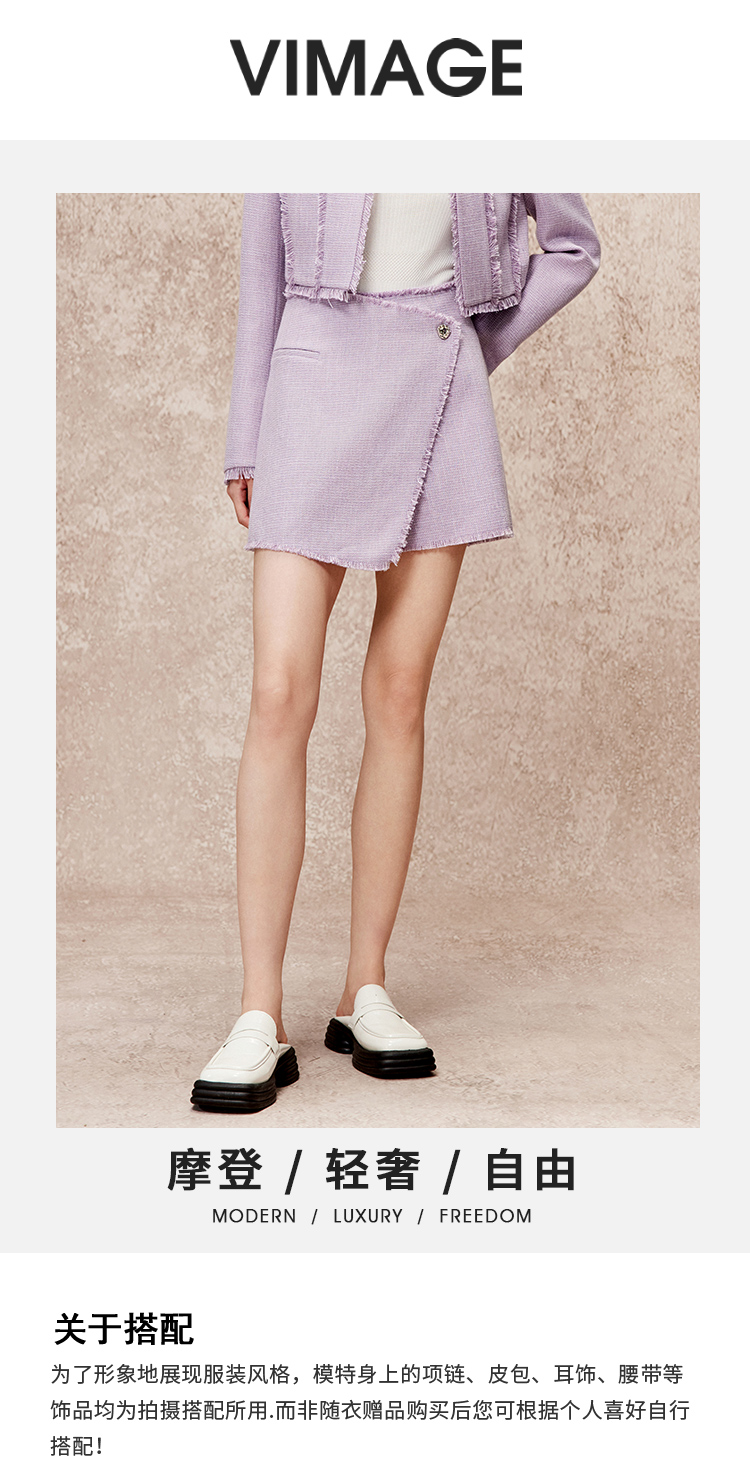 VIMAGE纬漫纪秋季新款气质通勤时尚紫色高腰显瘦时尚a字裤裙短裤V2206806