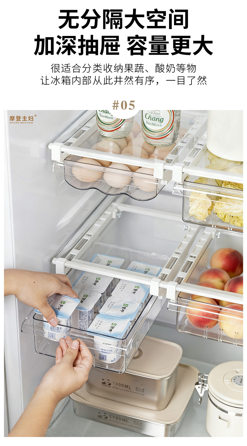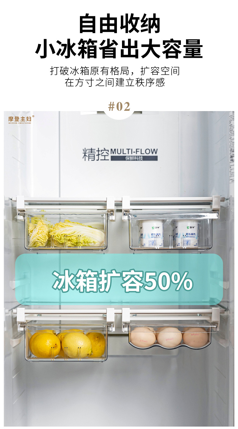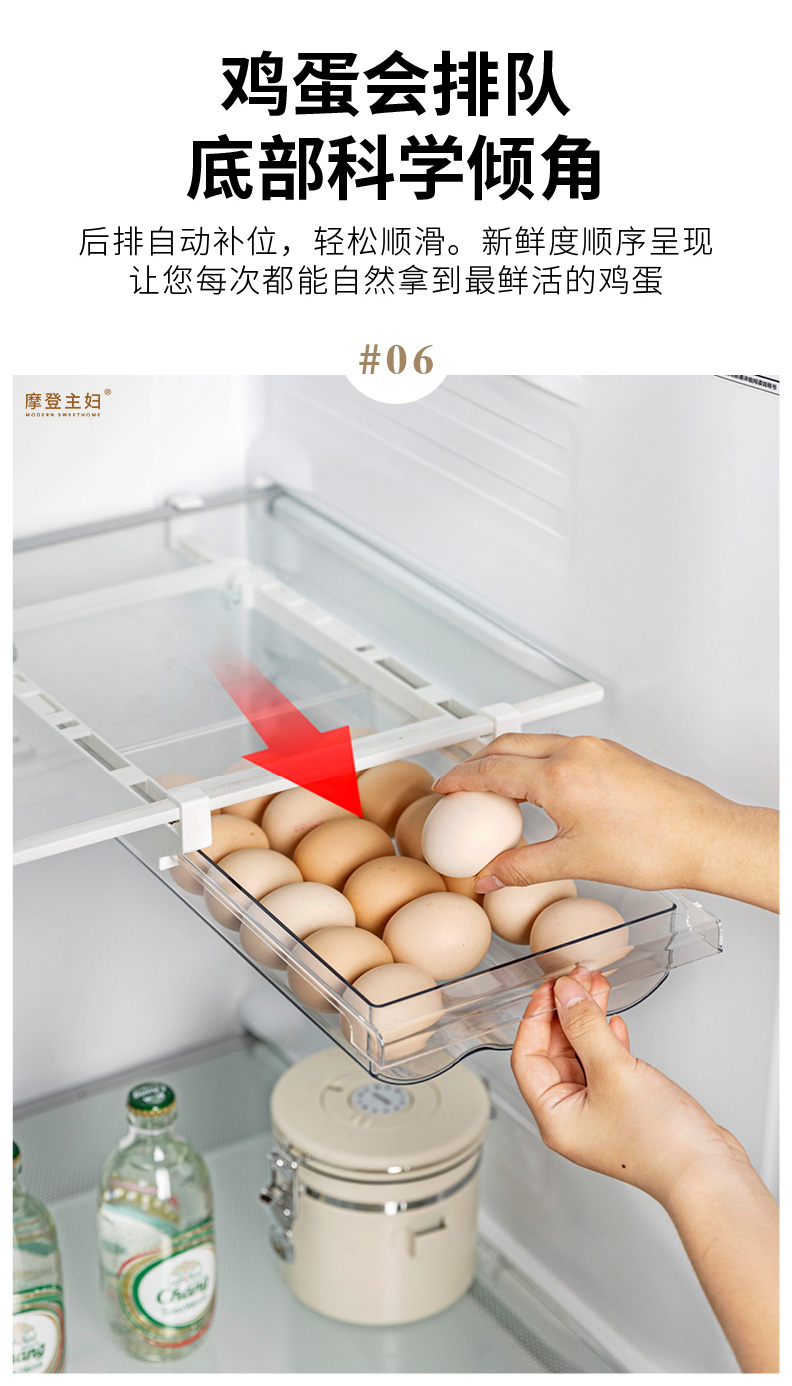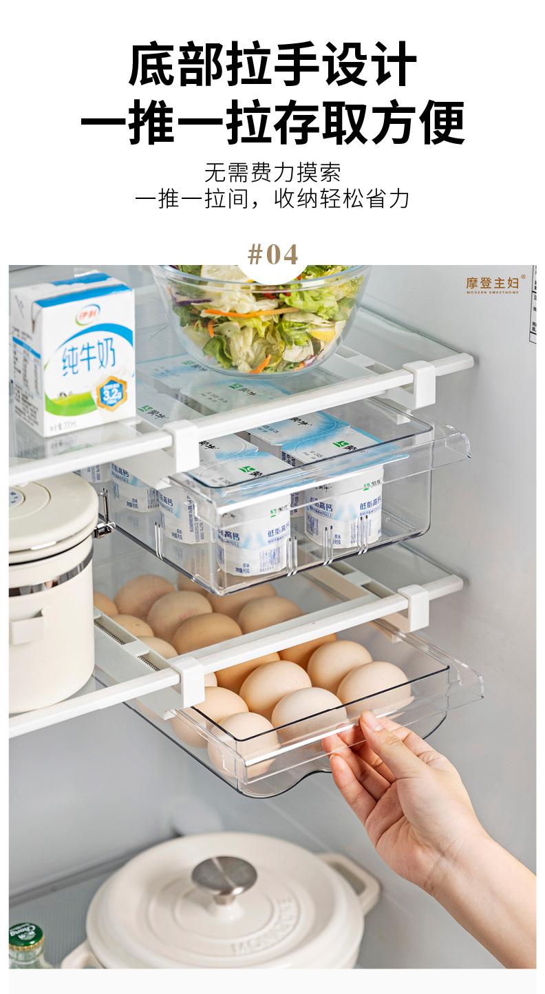 摩登主妇鸡蛋收纳盒冰箱专用悬挂抽屉式整理盒储物盒食品级保鲜盒