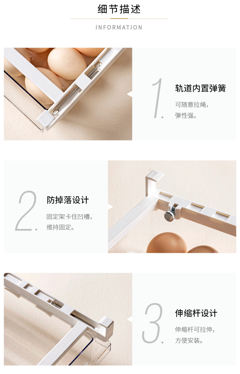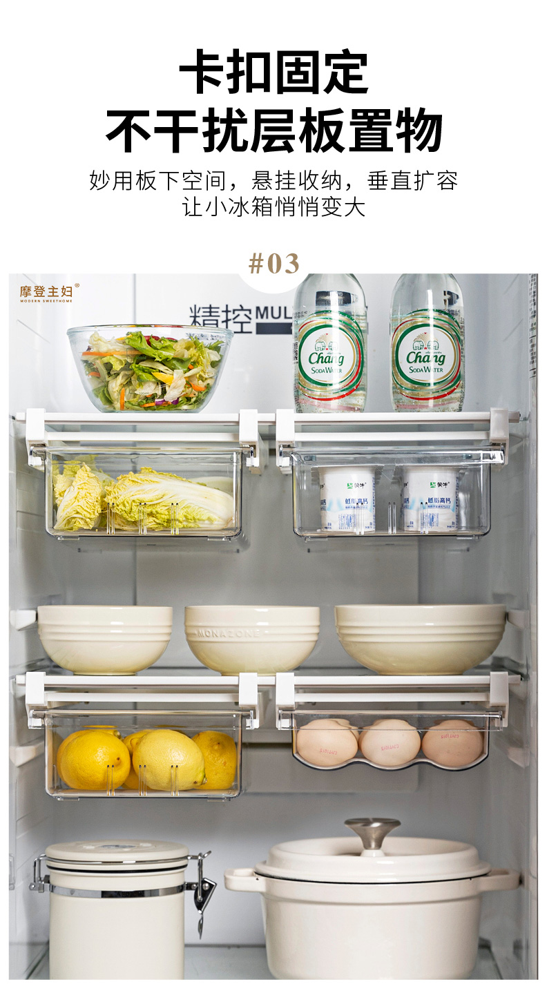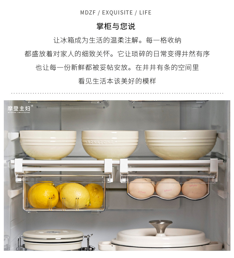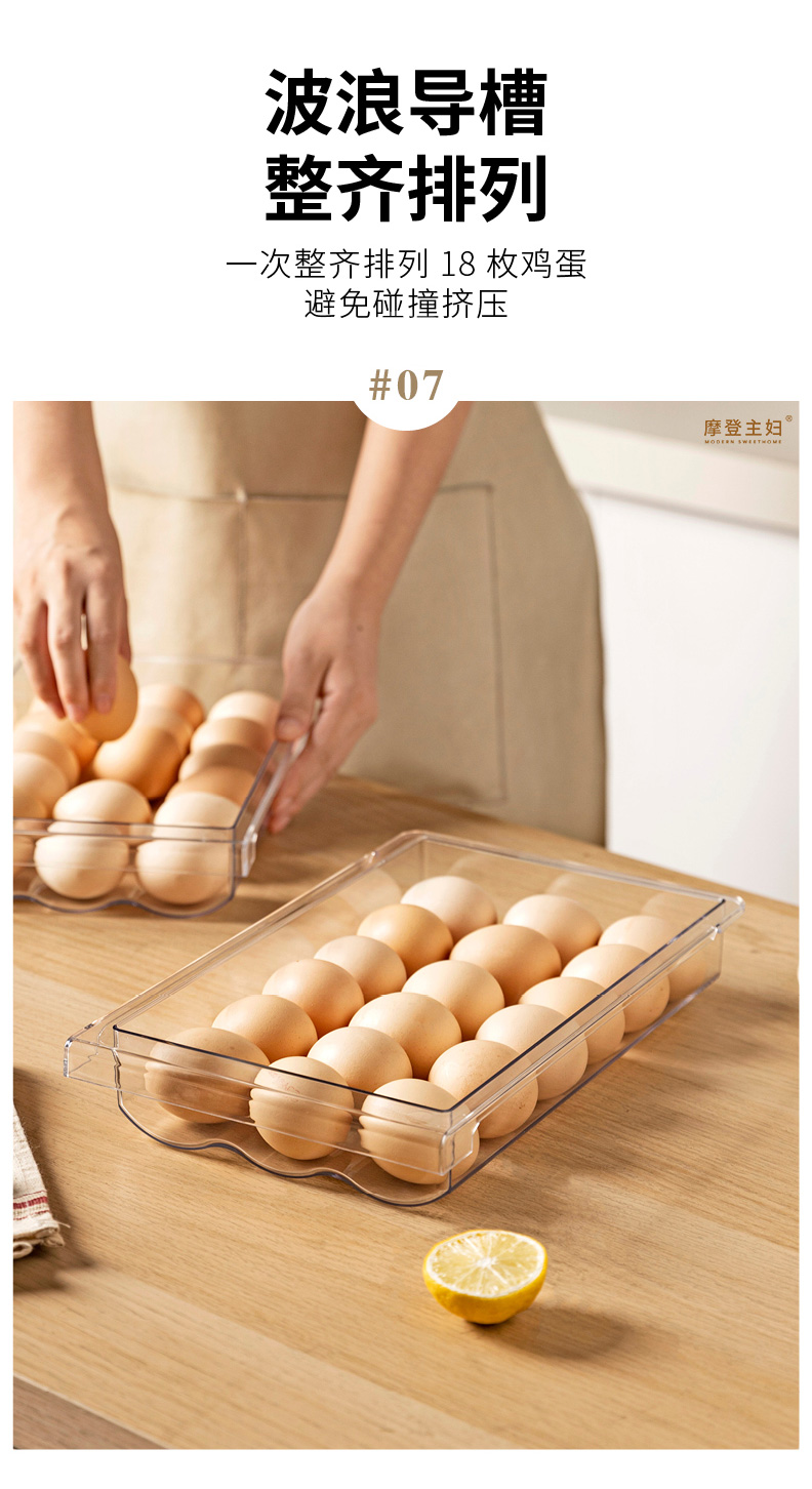 摩登主妇鸡蛋收纳盒冰箱专用悬挂抽屉式整理盒储物盒食品级保鲜盒