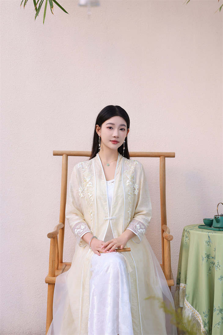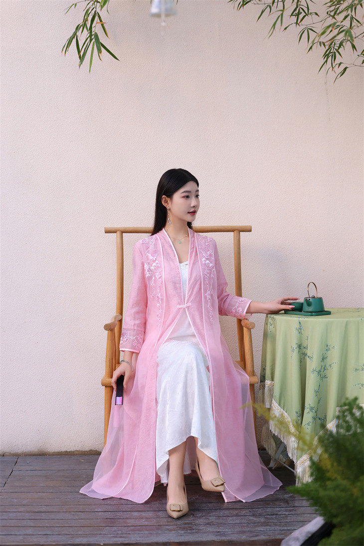 中式绣花外披天丝提花茶服仙气禅服FL6087