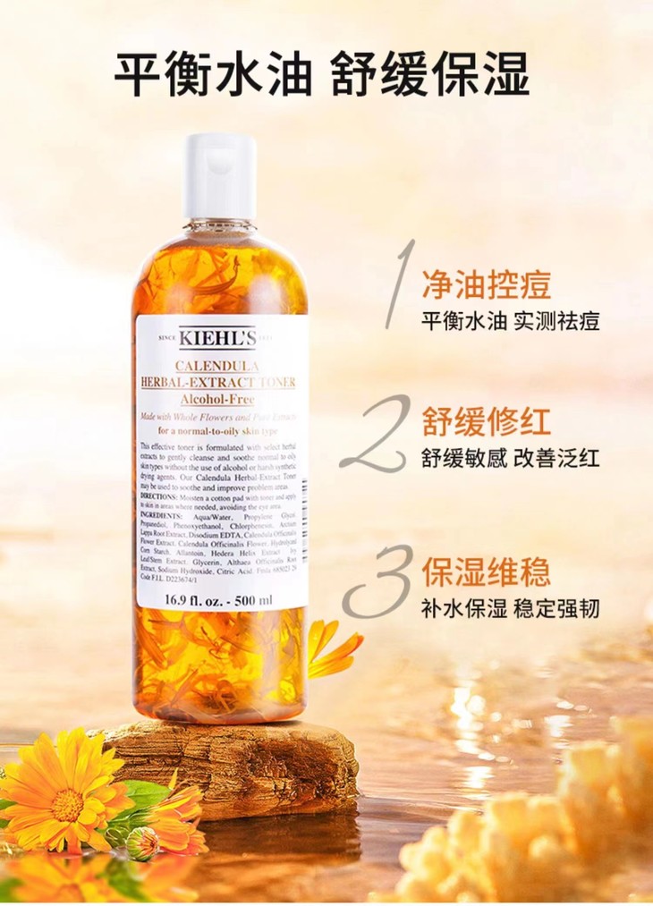 【双节大促价】大牌正品Kiehl's/科颜氏金盏花水500ml 舒缓补水/保湿控油-喜出