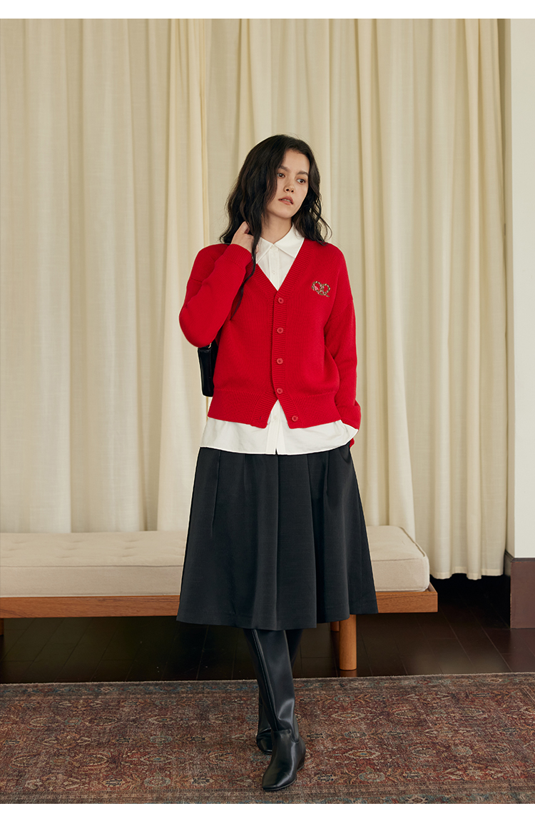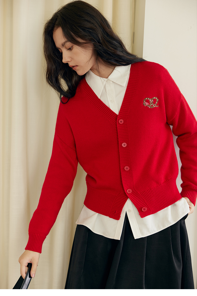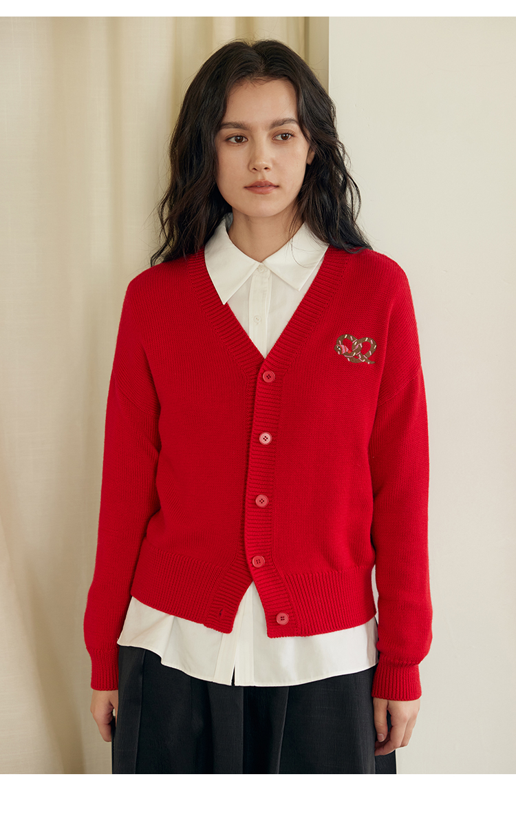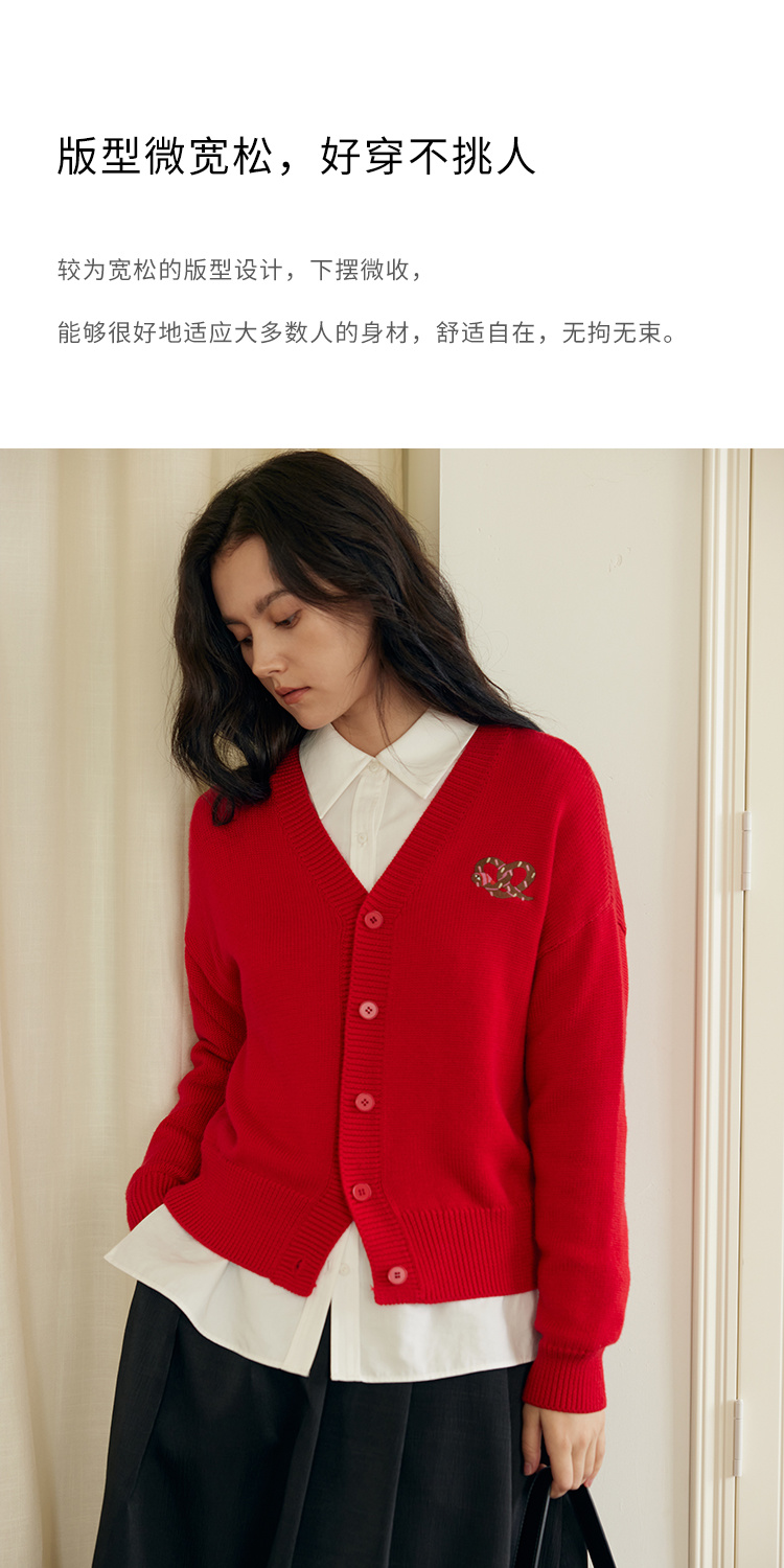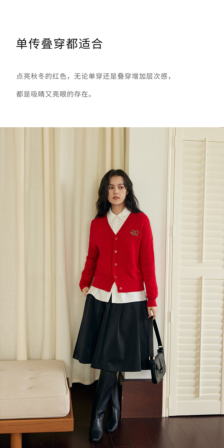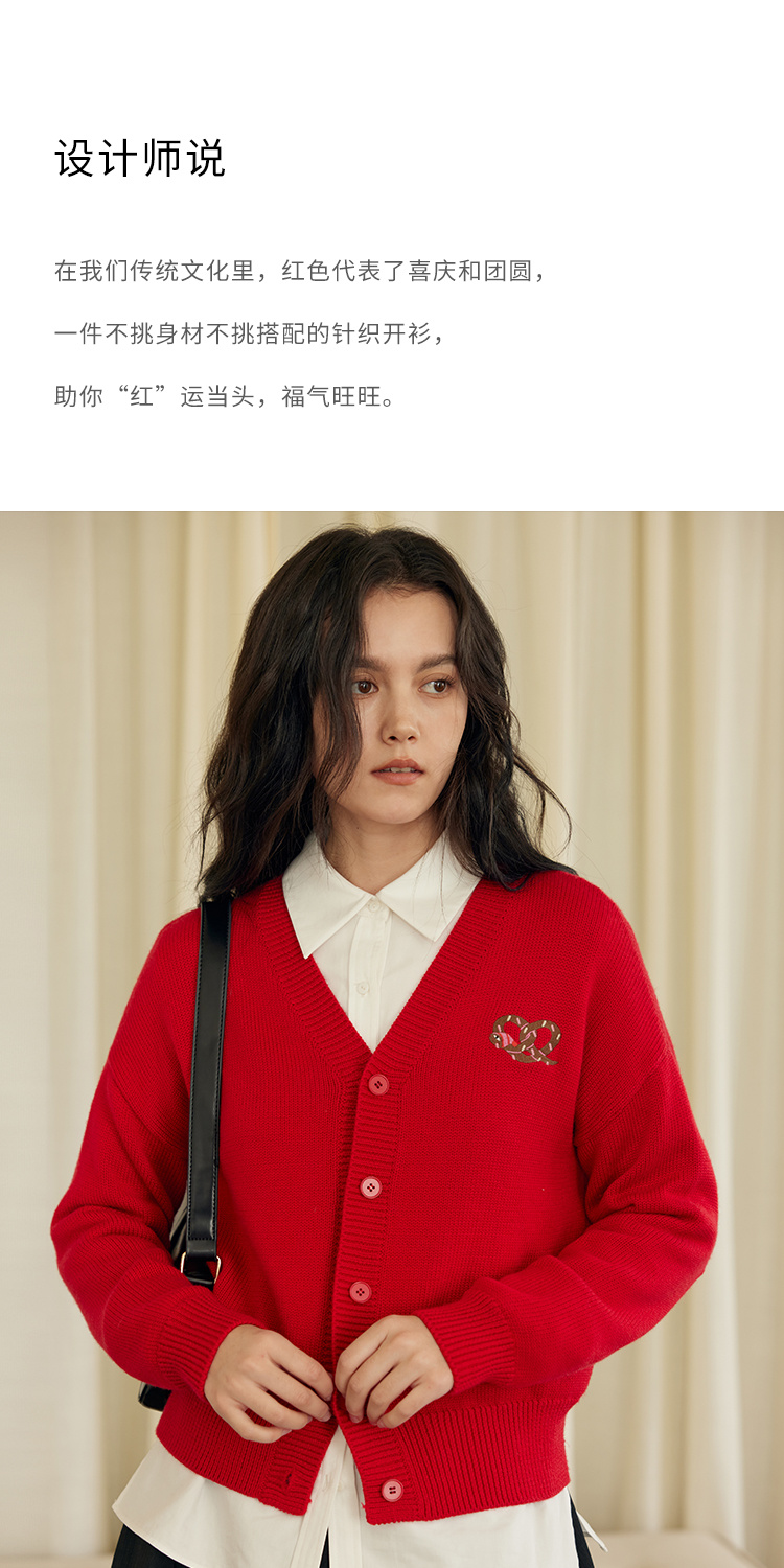 HeyDress蛇年限定针织开衫女冬季新年设计感本命年红色毛衣上衣