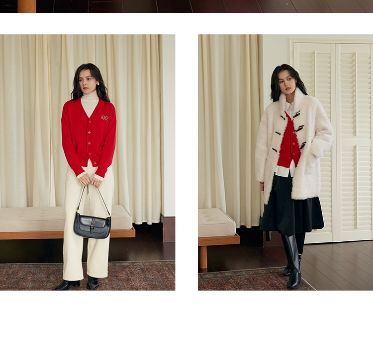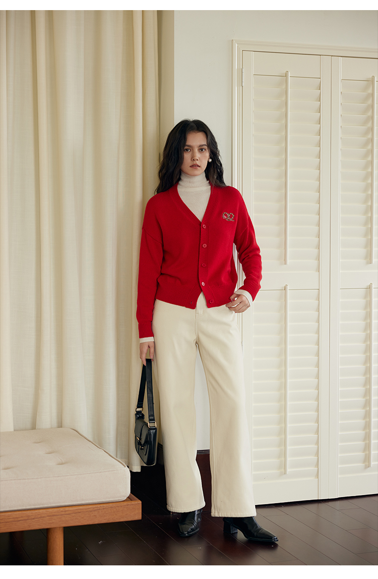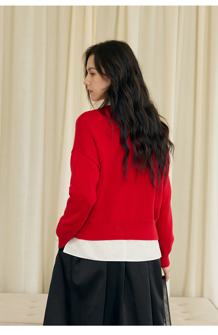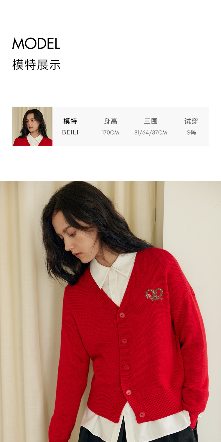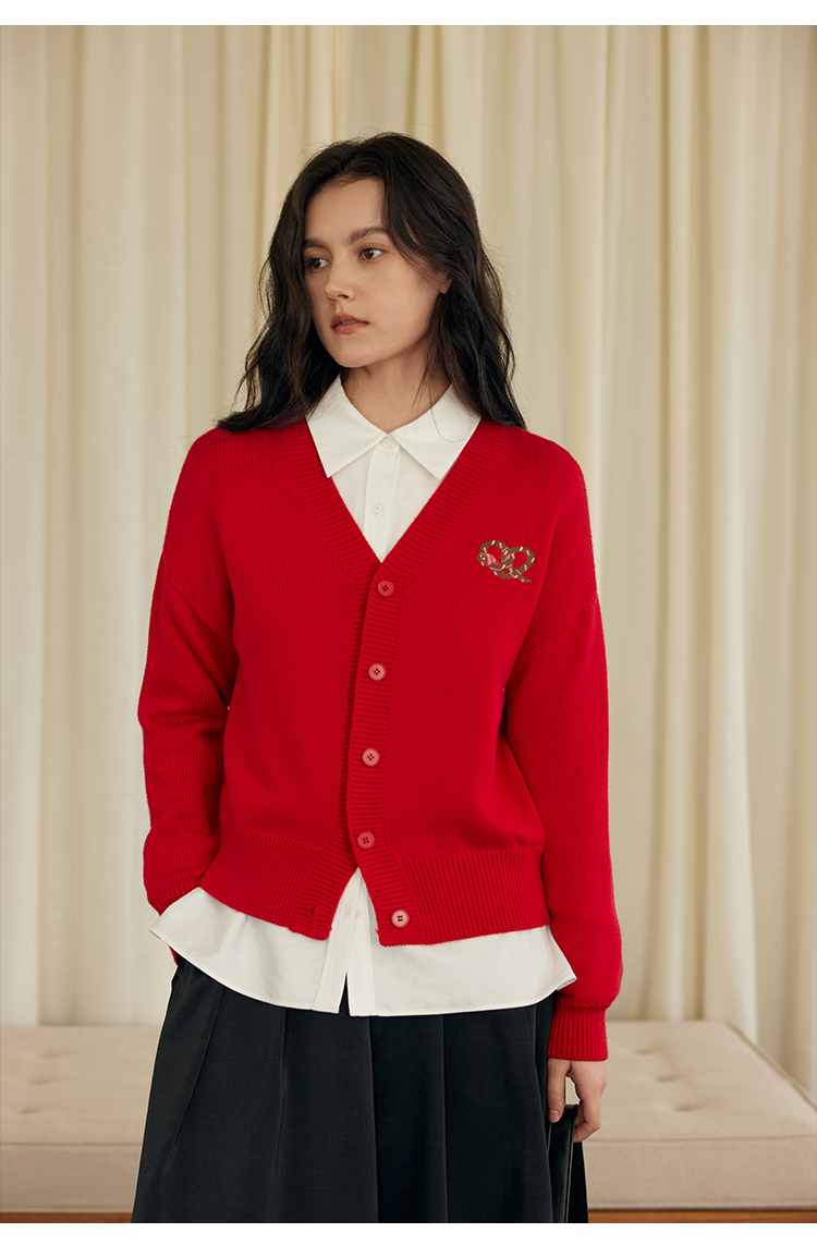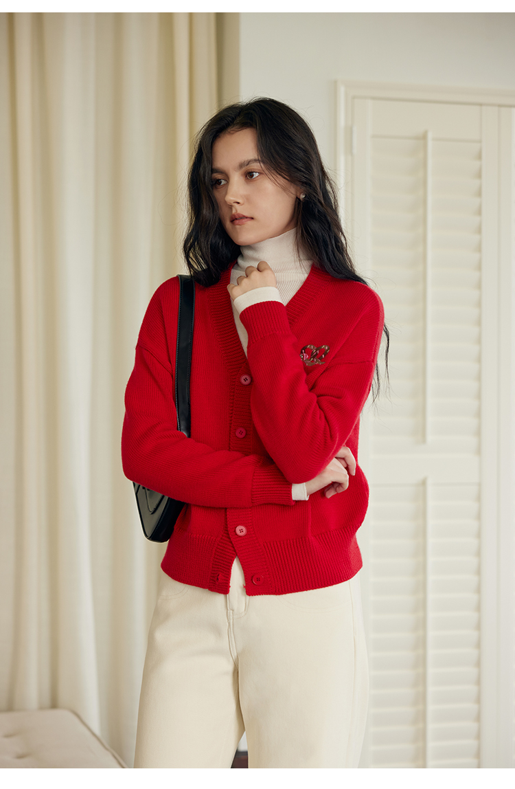 HeyDress蛇年限定针织开衫女冬季新年设计感本命年红色毛衣上衣