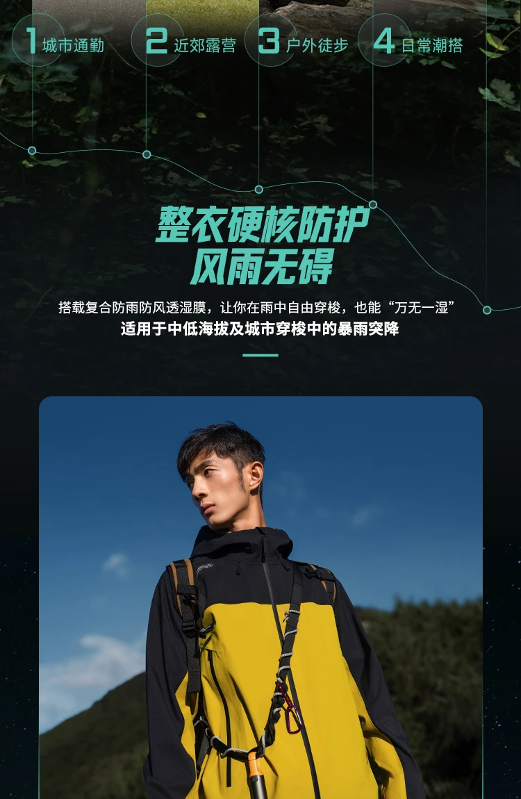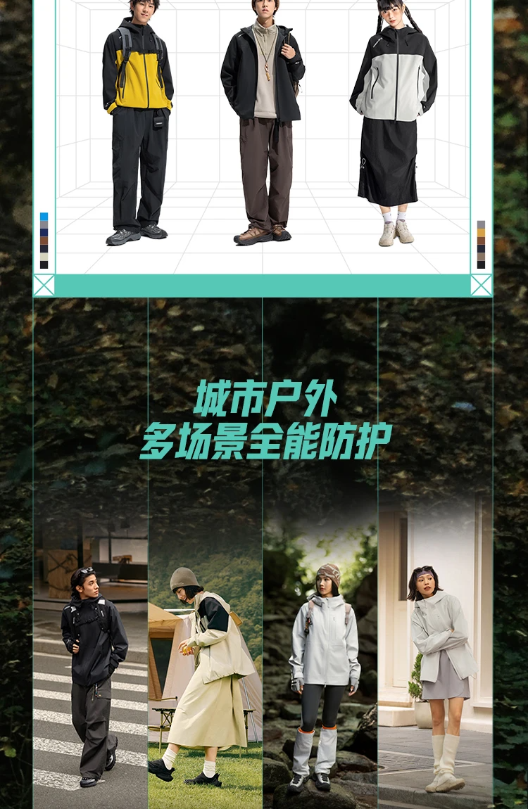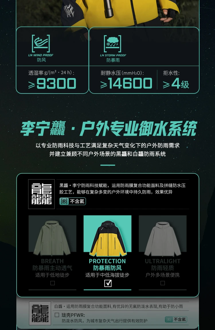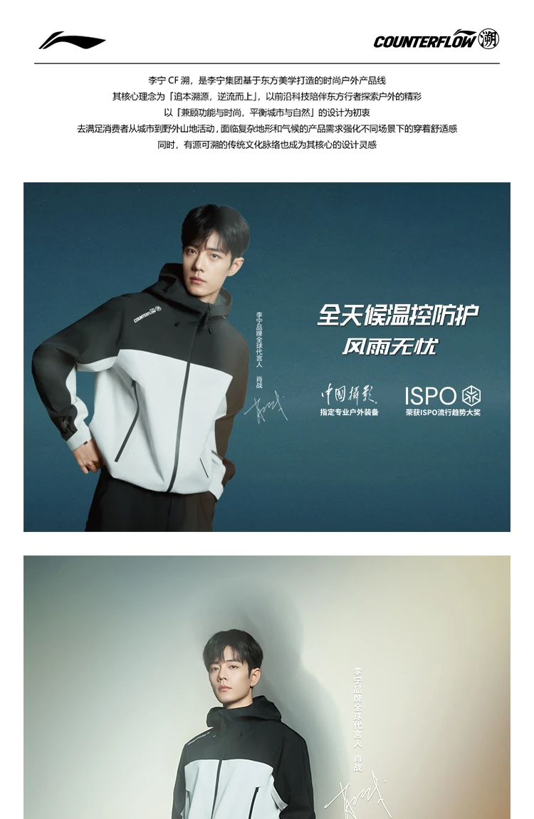 【肖战同款】李宁户外CF溯万龙甲冲锋衣黑龘男女同款反光防泼水防风宽松单层冲锋衣AEMV033