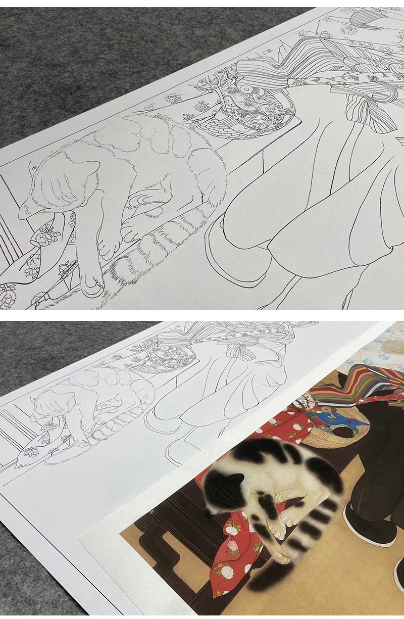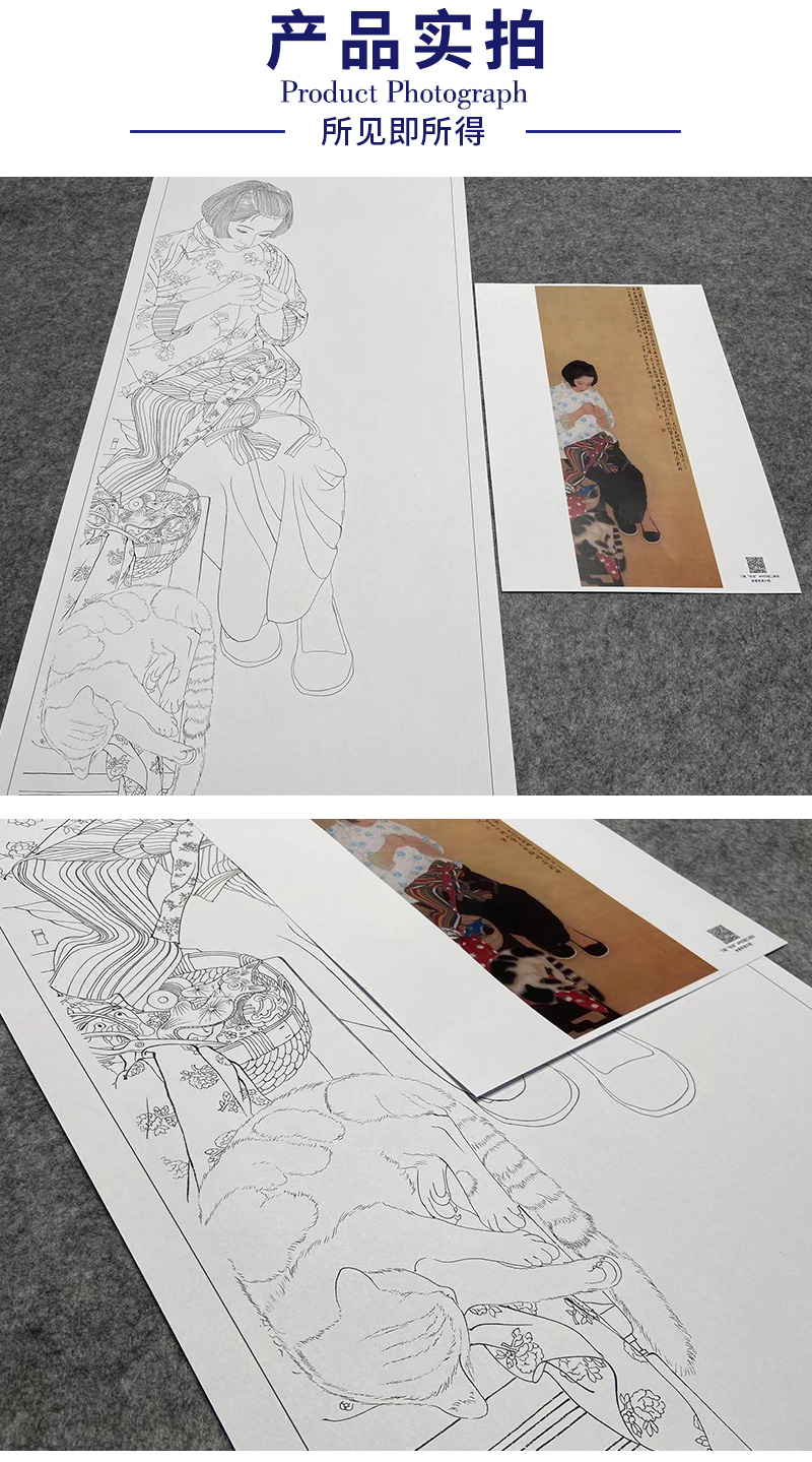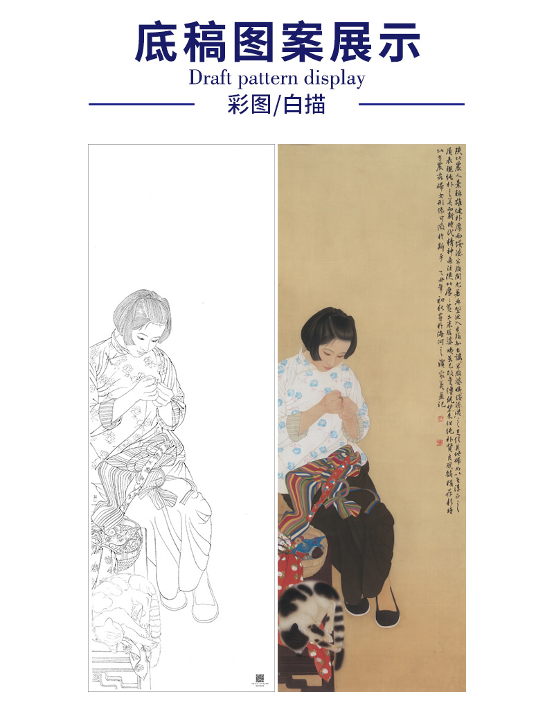 【大彩图】何家英工笔画白描底稿《米脂的婆姨》高清打印稿人物线稿ZV13