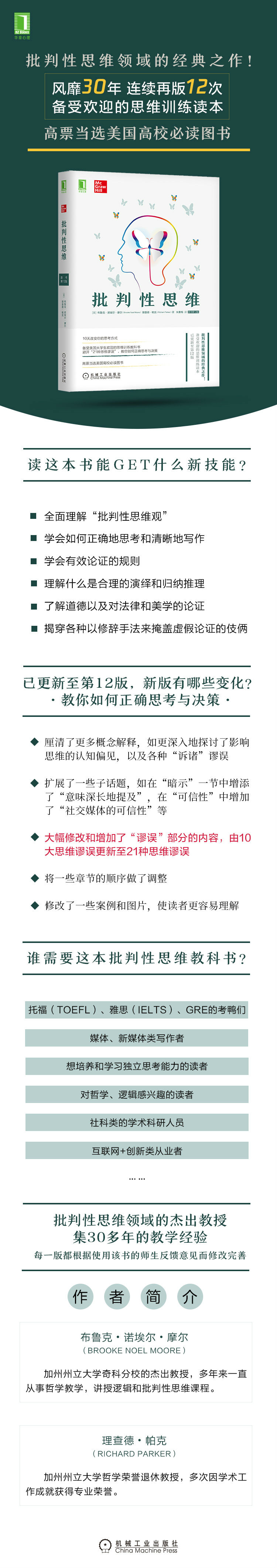这本《批判性思维》是美国最受欢迎的大学教材,连续畅销多年,一版再版。