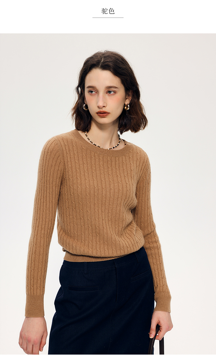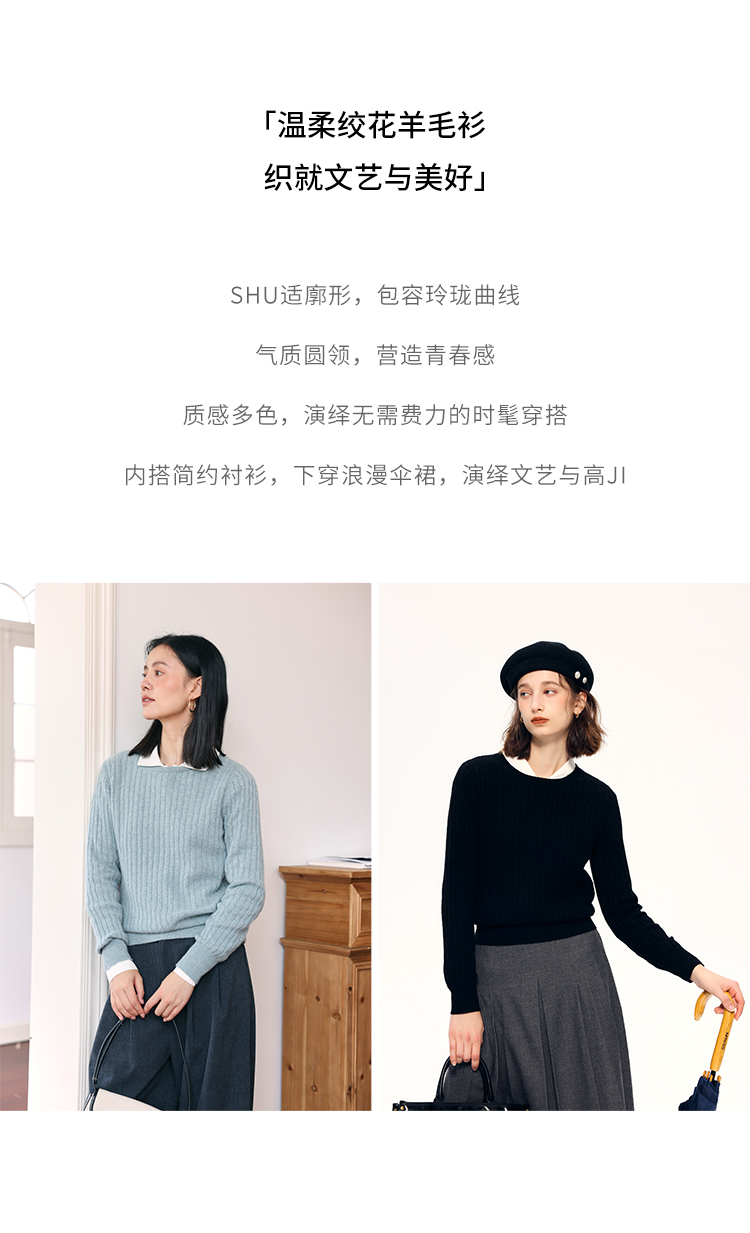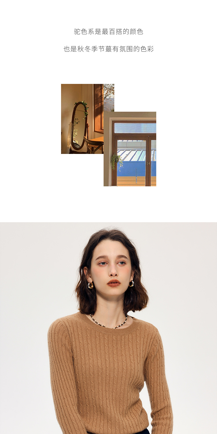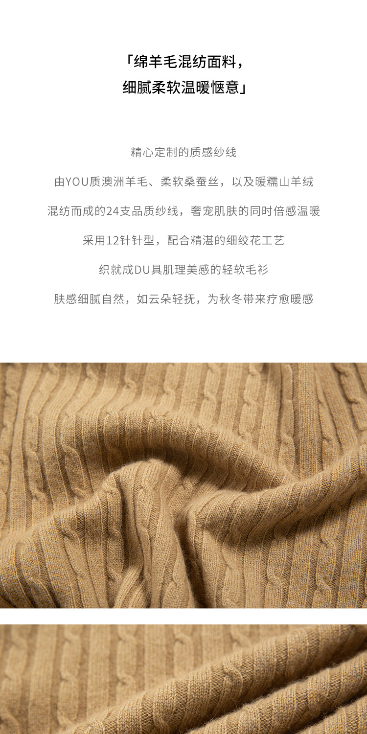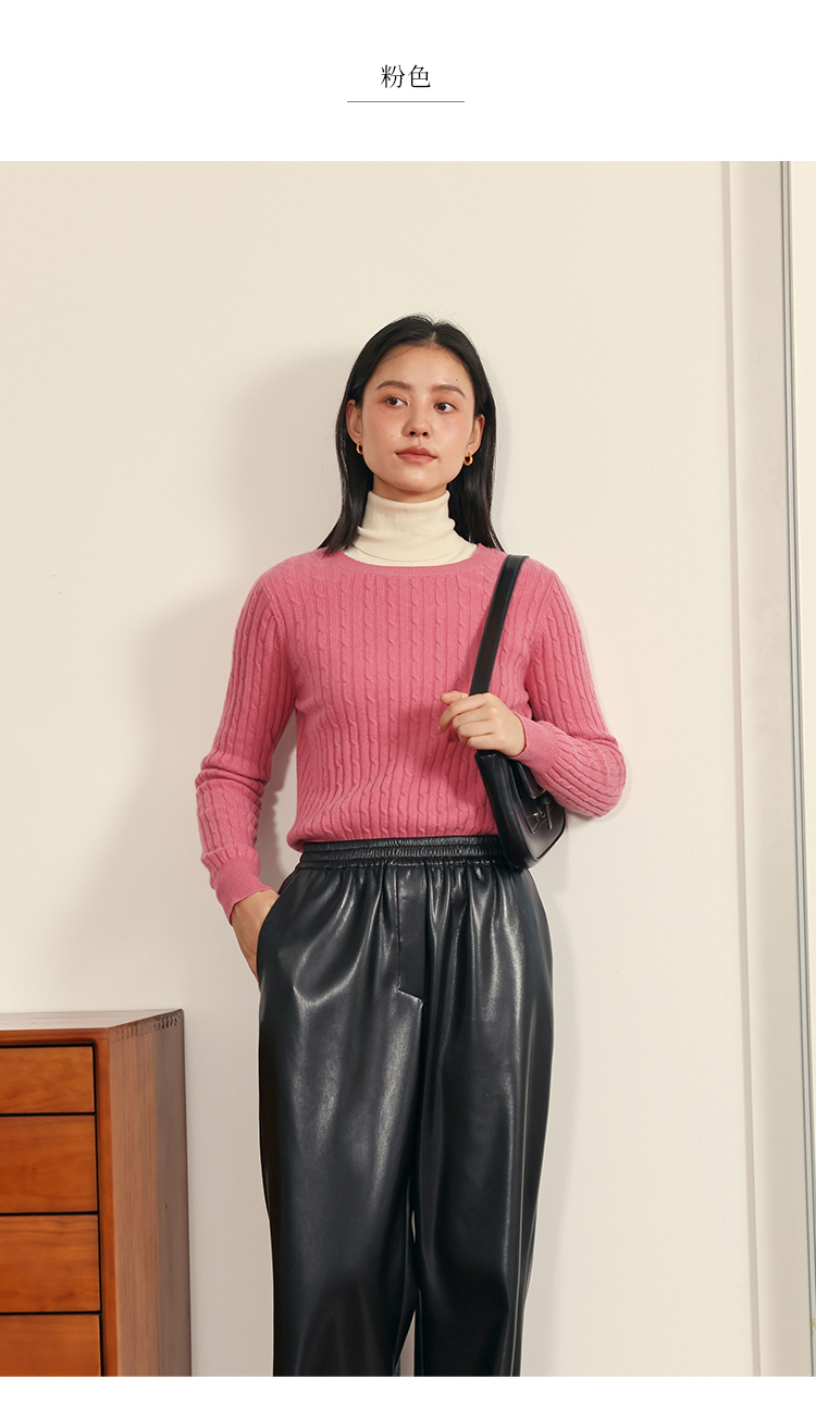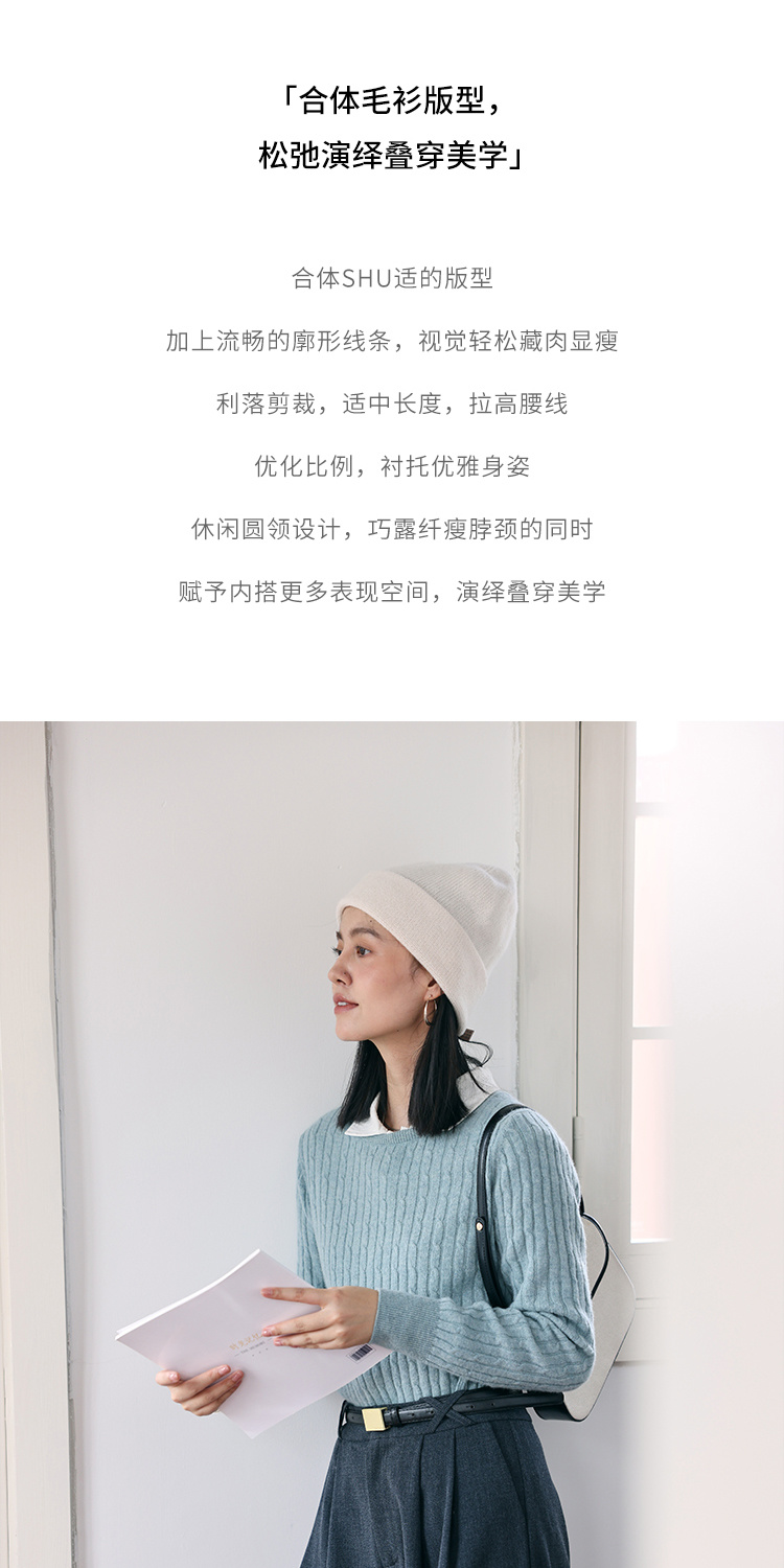 HeyDress绵羊毛绞花毛衣女秋冬圆领宽松针织衫桑蚕丝保暖上衣