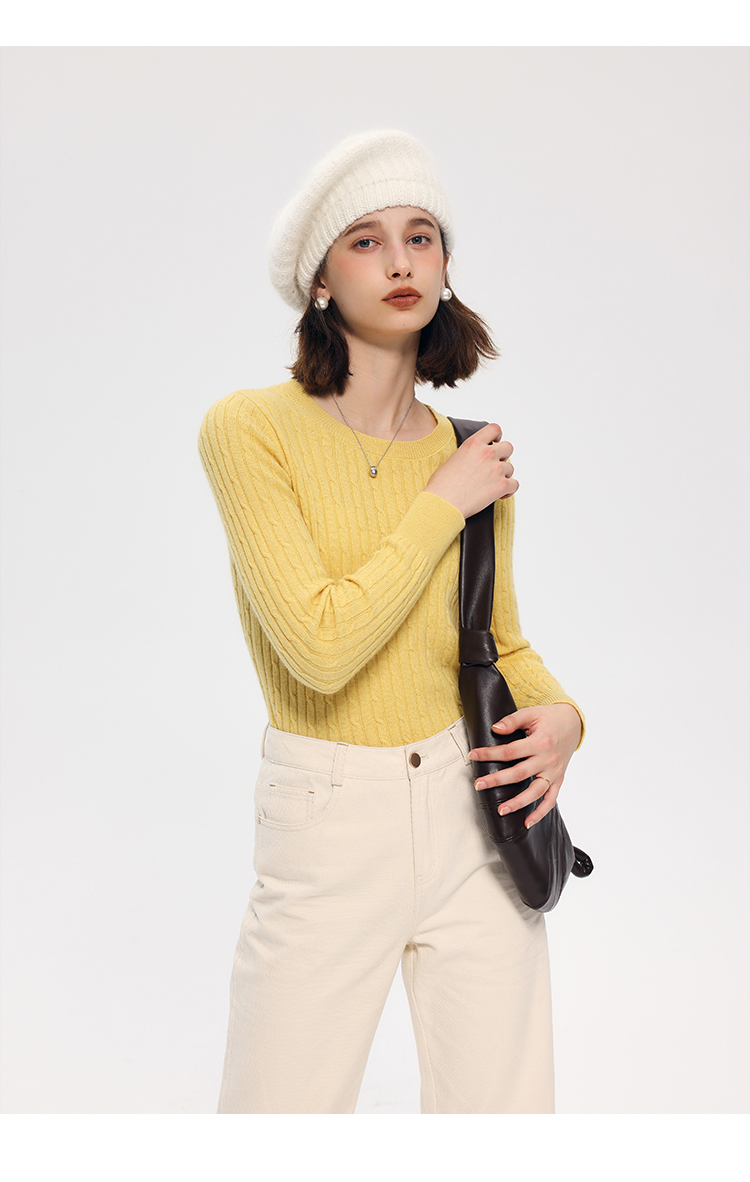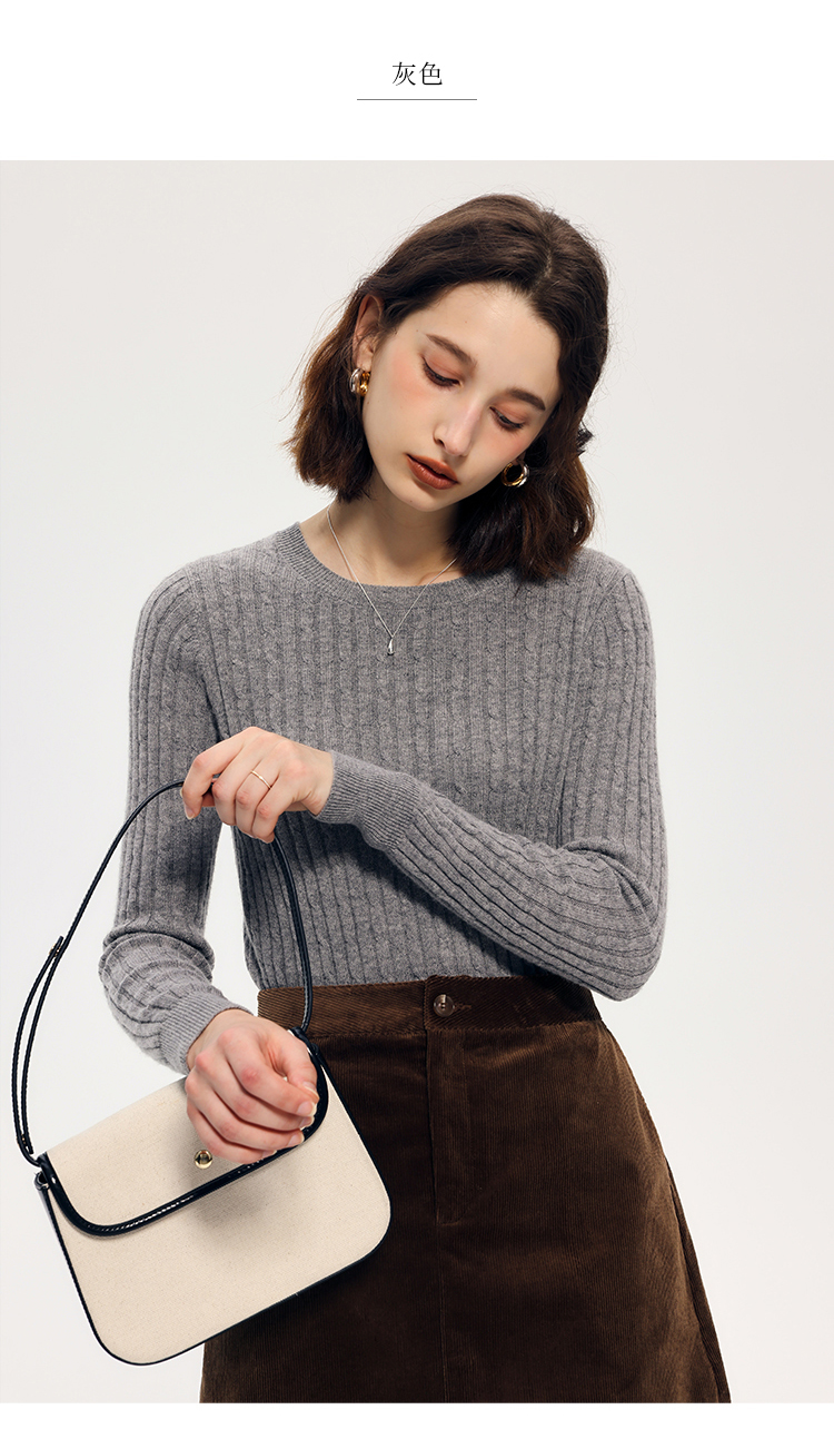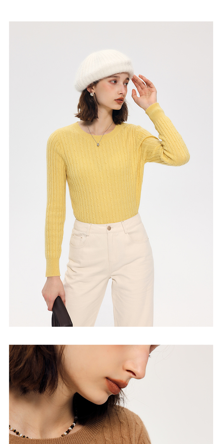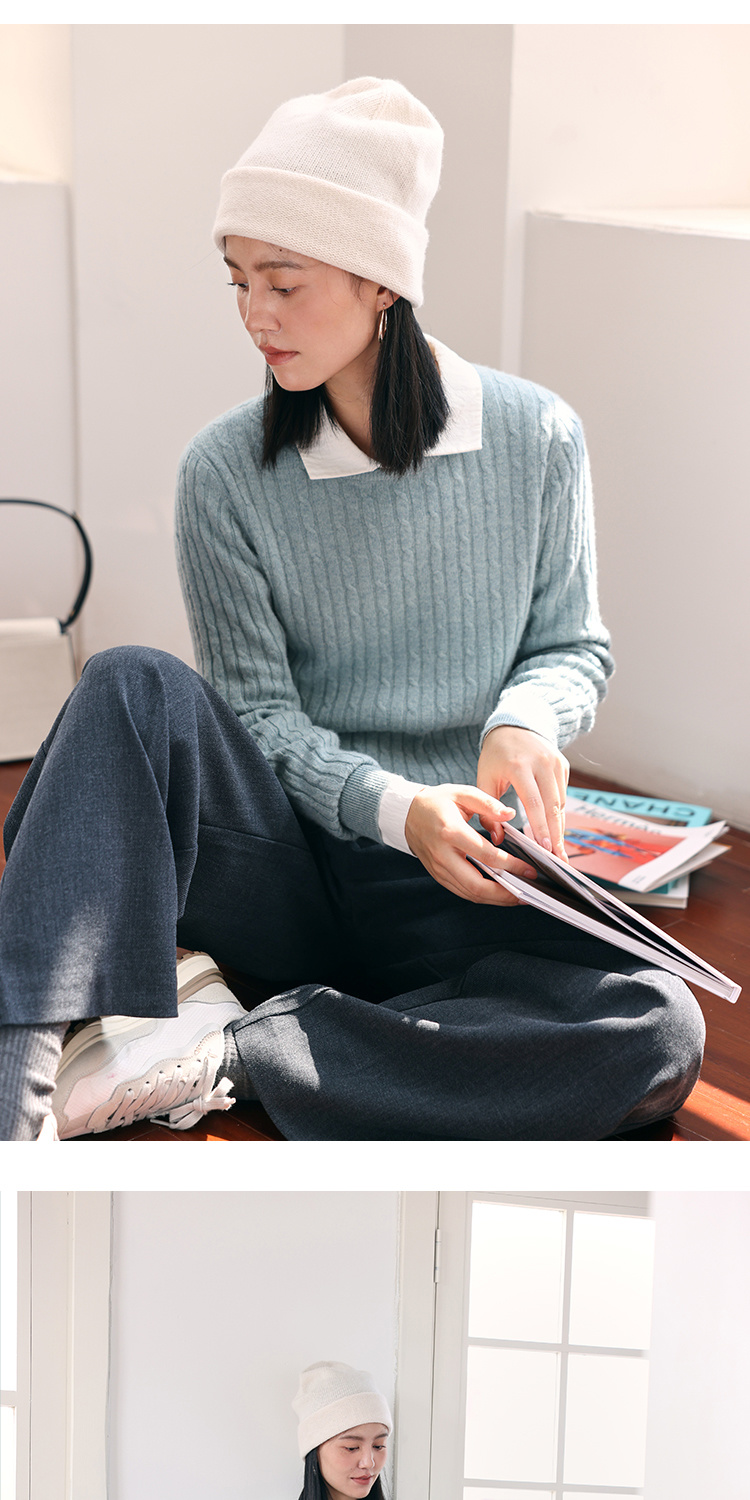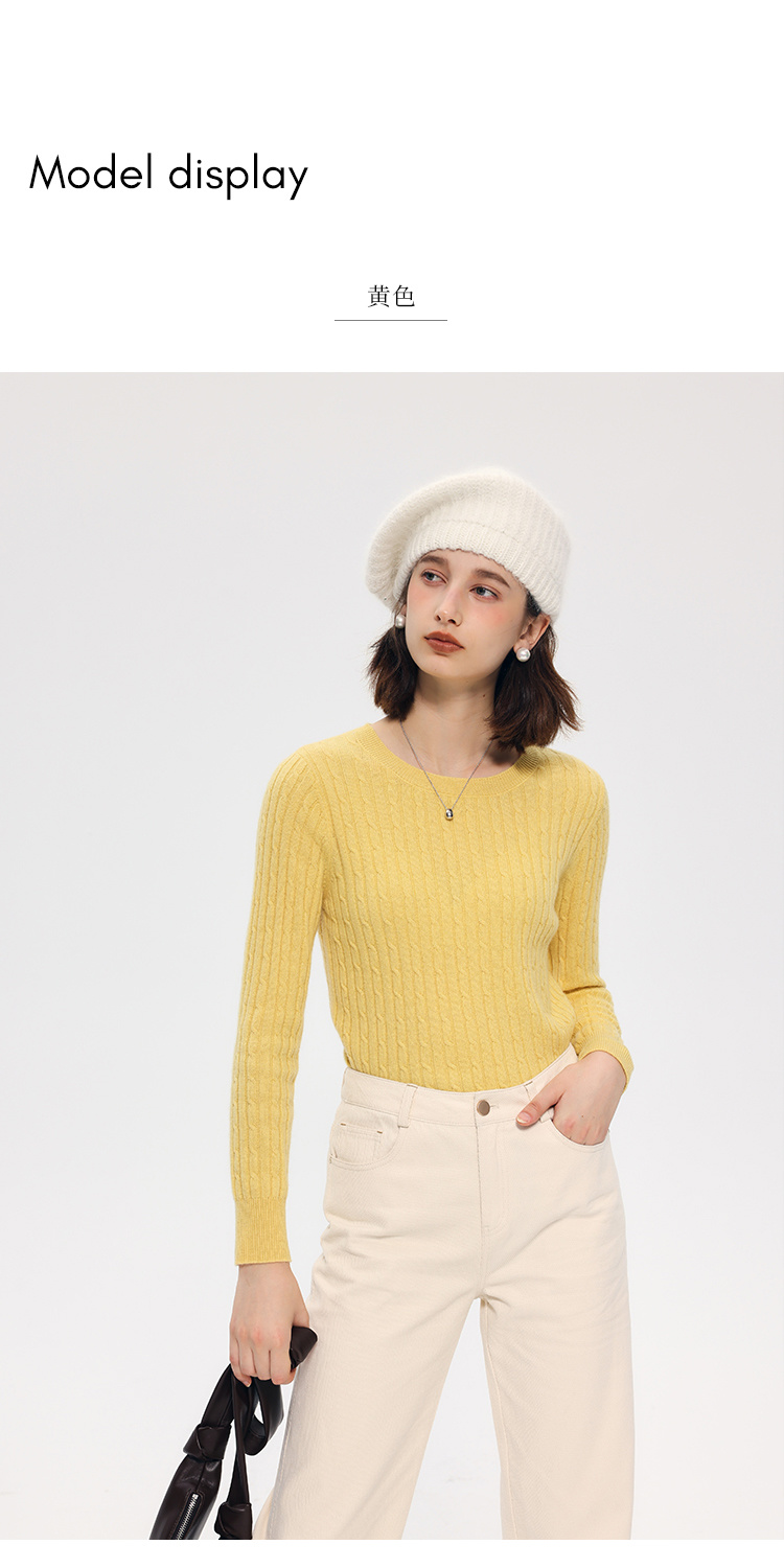 HeyDress绵羊毛绞花毛衣女秋冬圆领宽松针织衫桑蚕丝保暖上衣