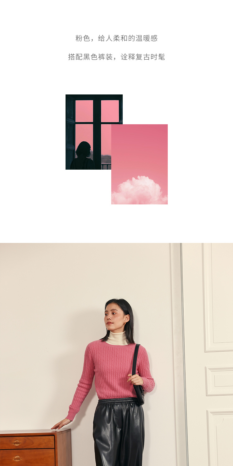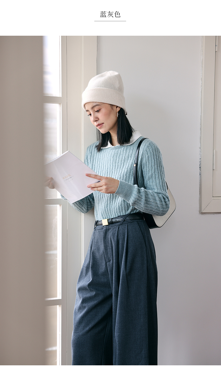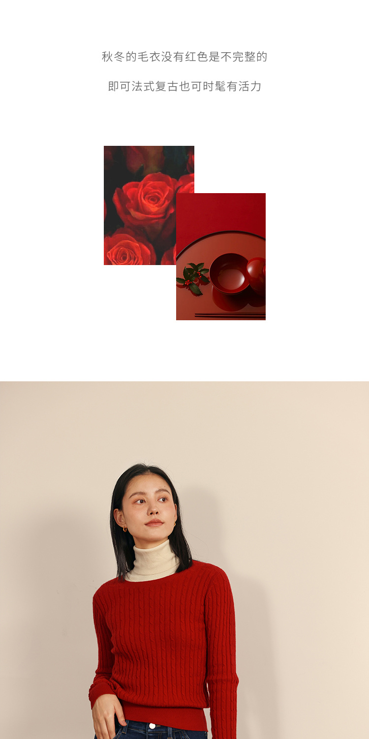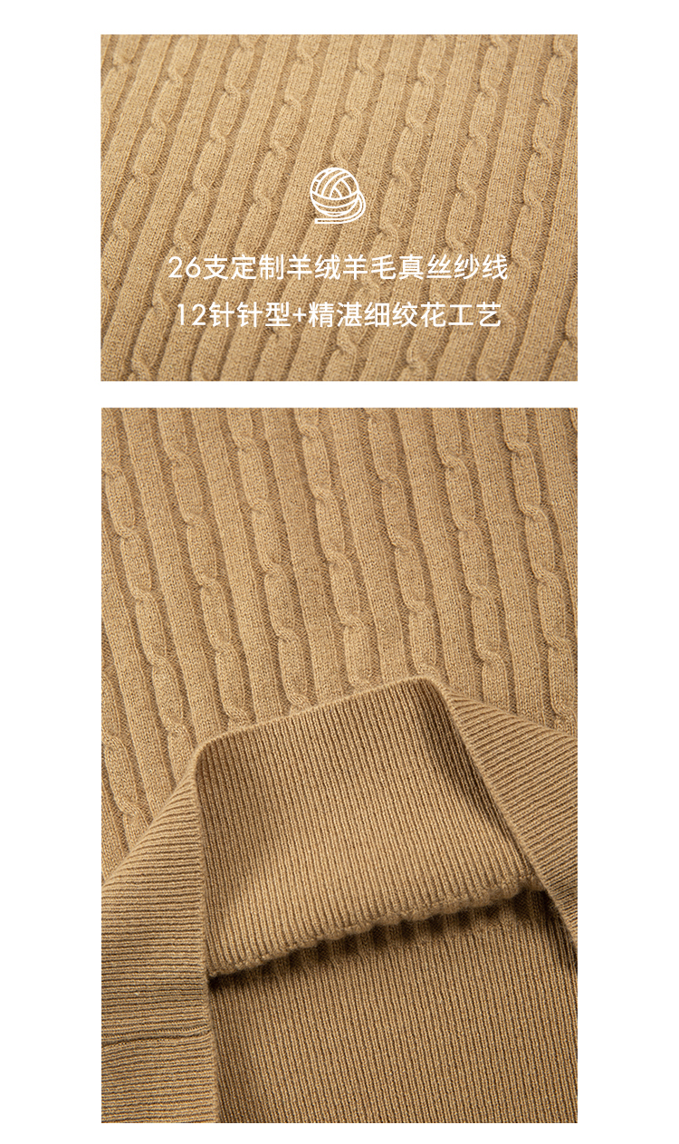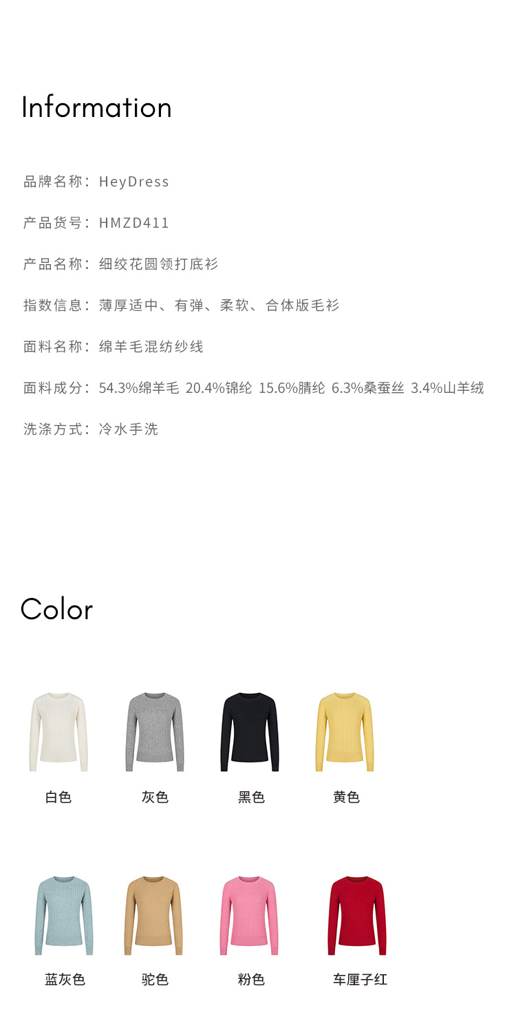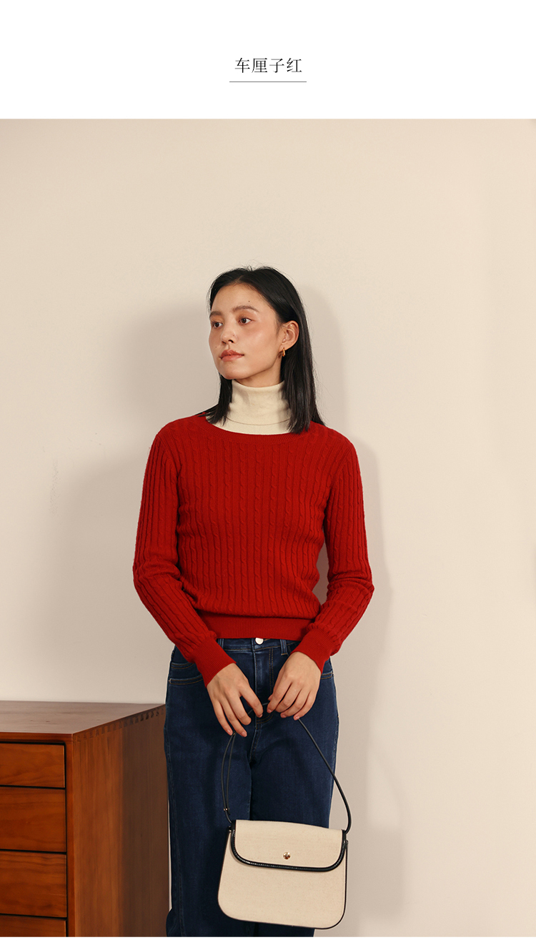 HeyDress绵羊毛绞花毛衣女秋冬圆领宽松针织衫桑蚕丝保暖上衣