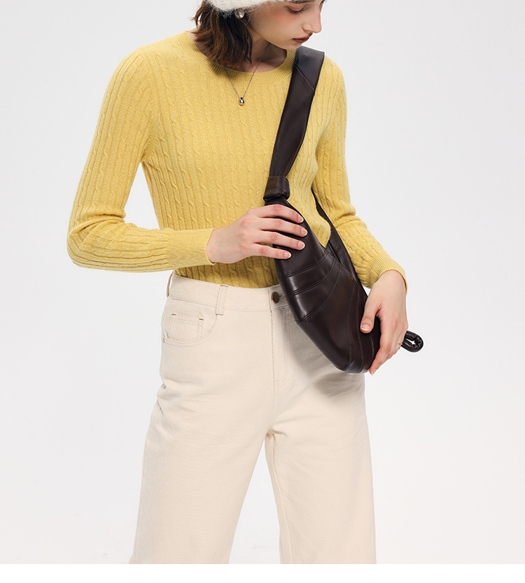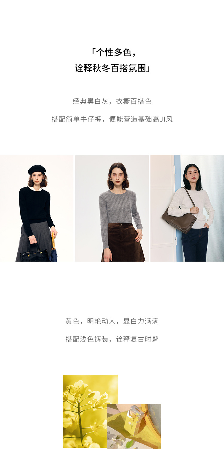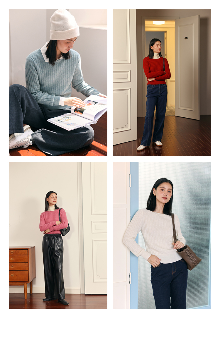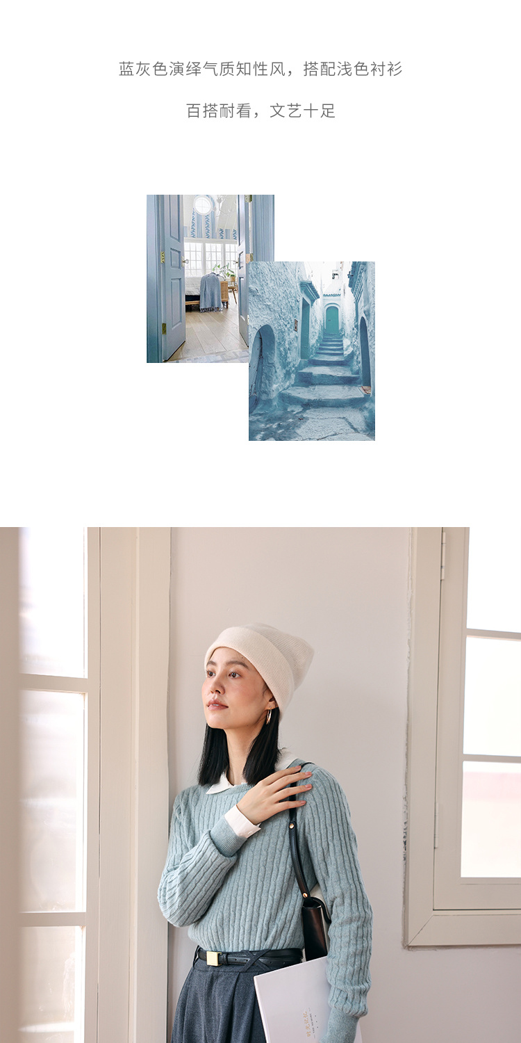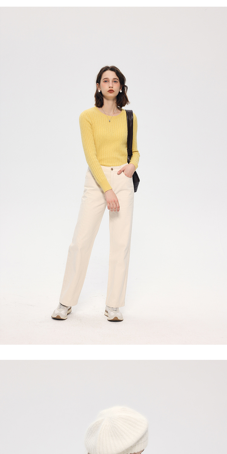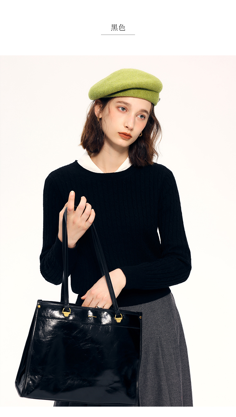 HeyDress绵羊毛绞花毛衣女秋冬圆领宽松针织衫桑蚕丝保暖上衣