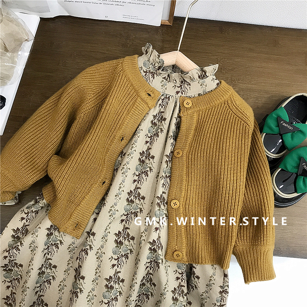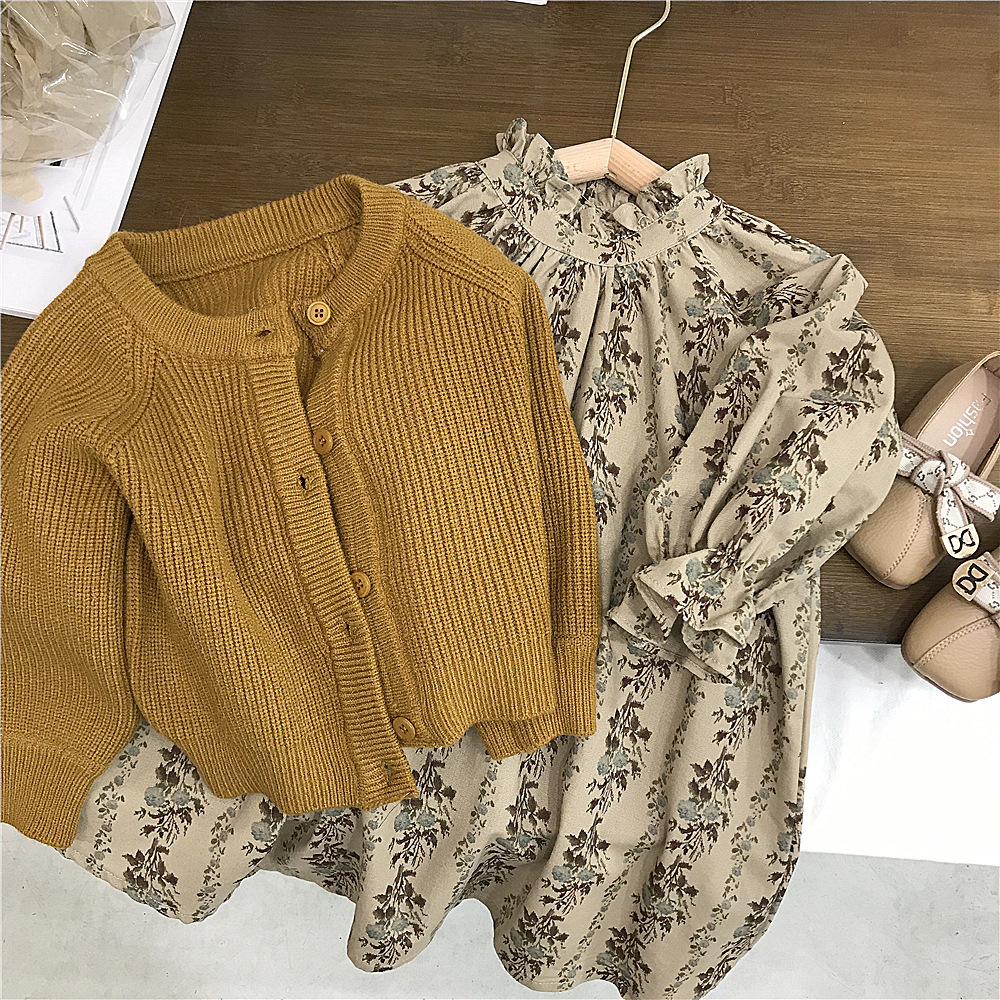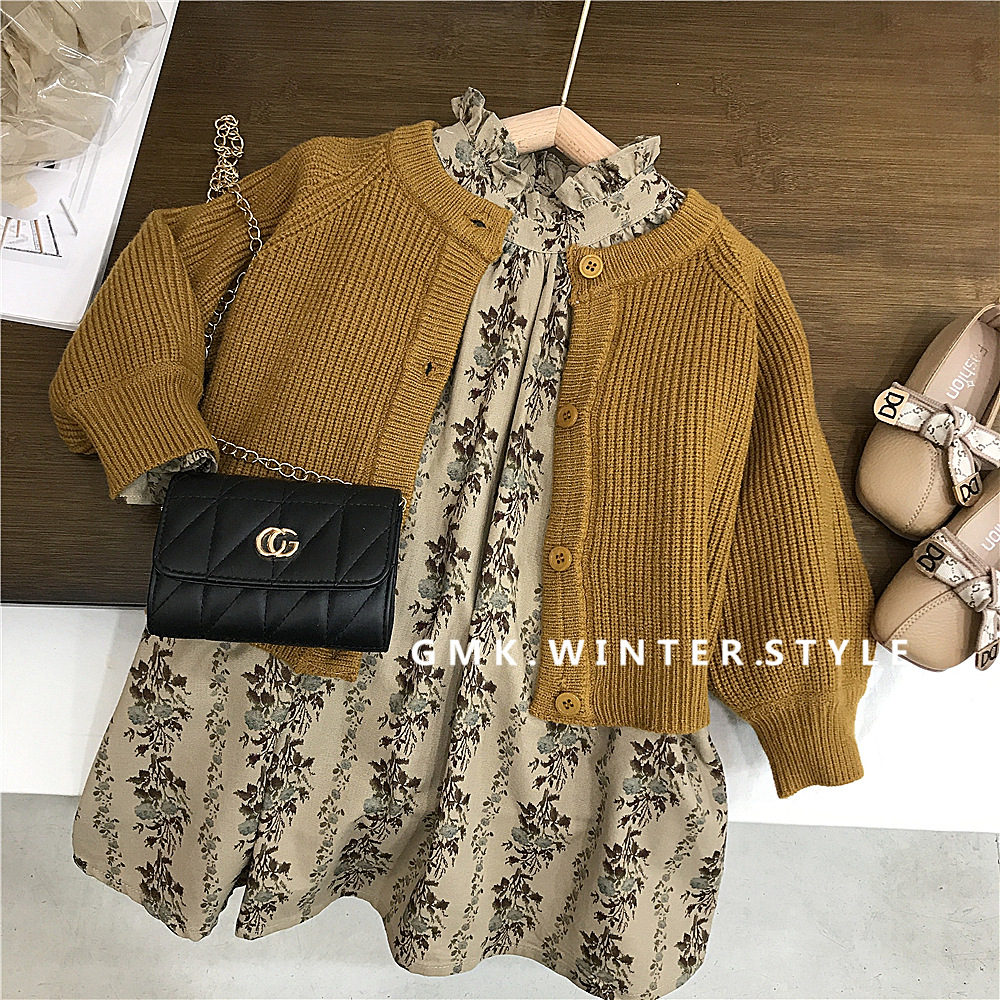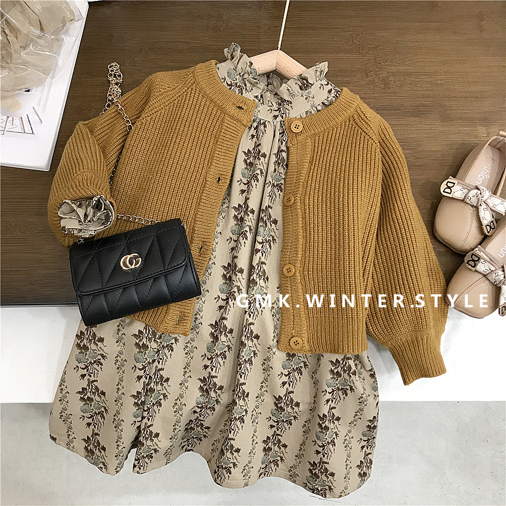 【新品上架!女童森系两件套裙,时尚又实用】女小童碎花连衣裙套装 女童针织毛衣外套 新款童装儿童森系两件套套裙-QQ