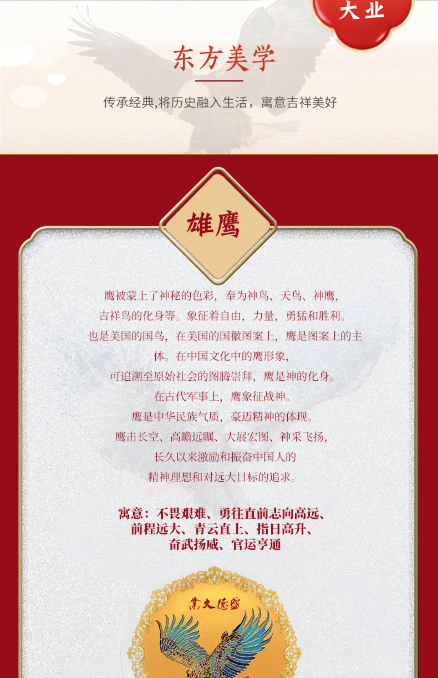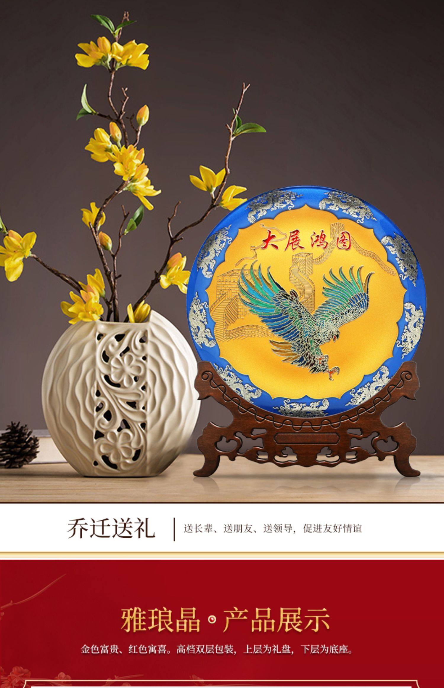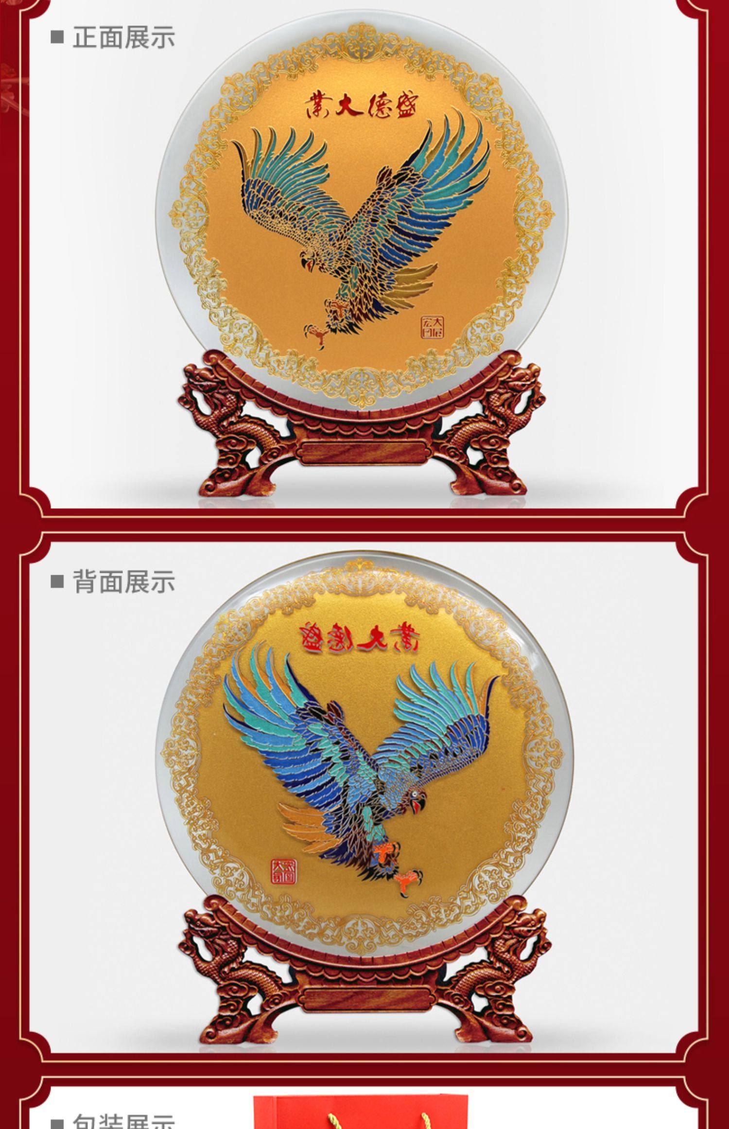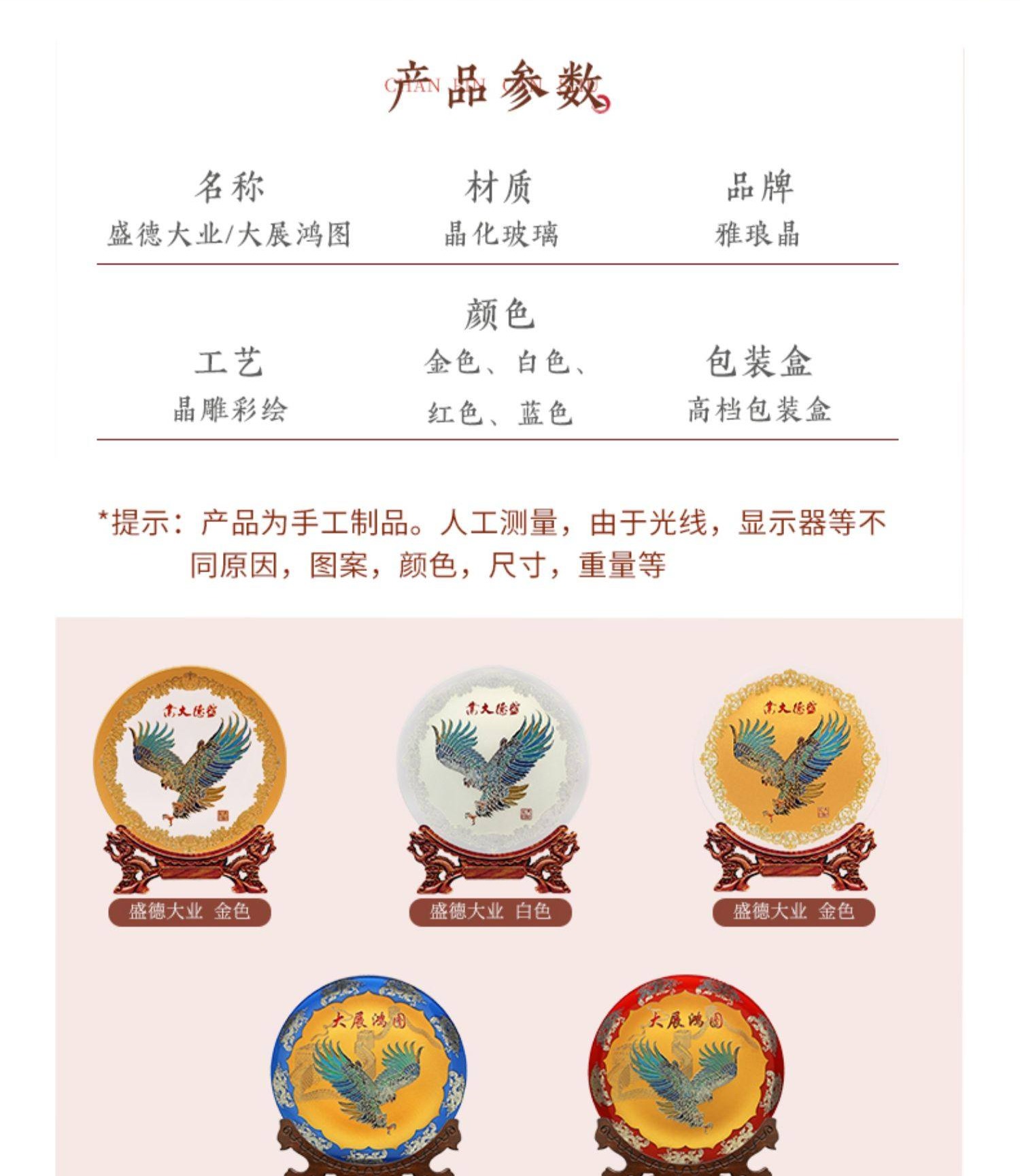【彼达思】雅琅晶 盛德大业 大展宏图摆件客厅老板办公室家居装饰老鹰工艺品开业纪念盘