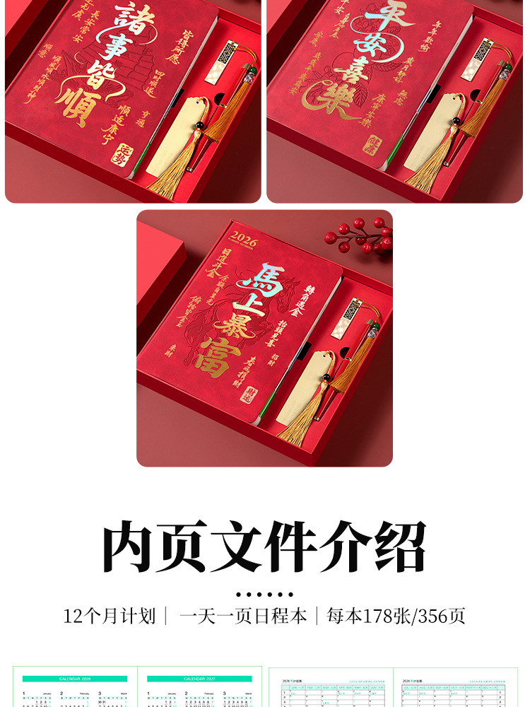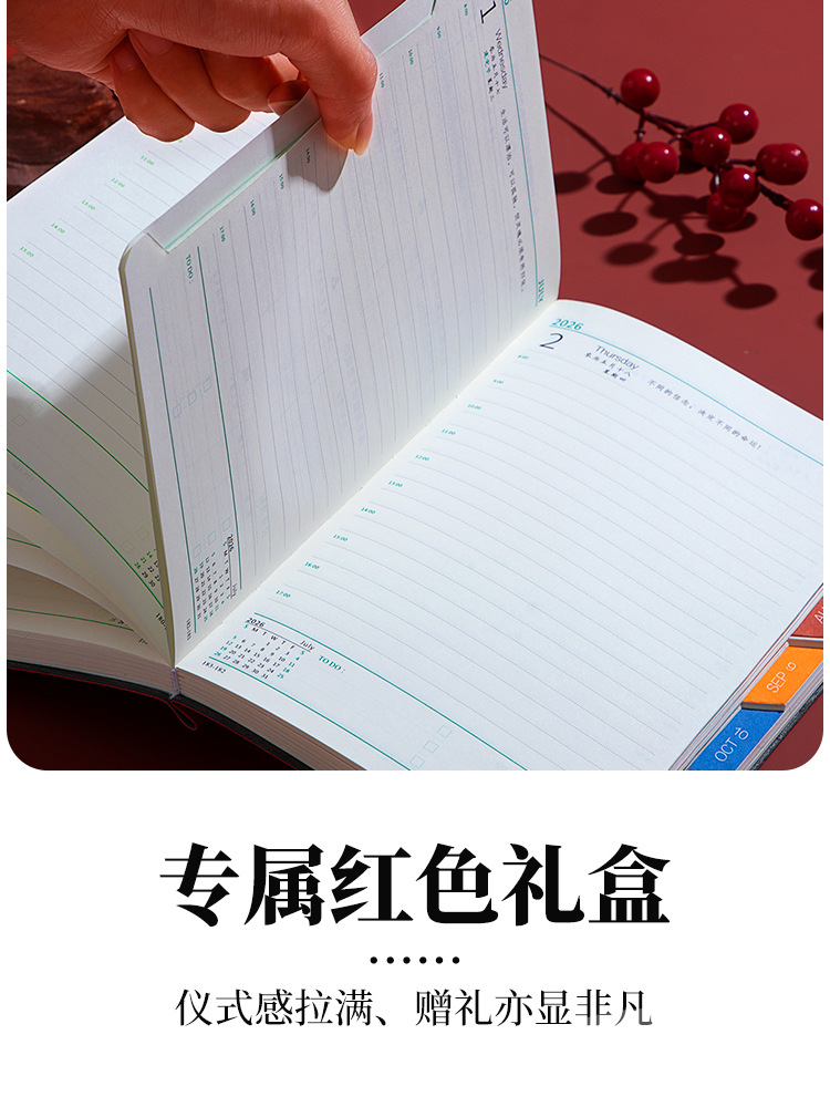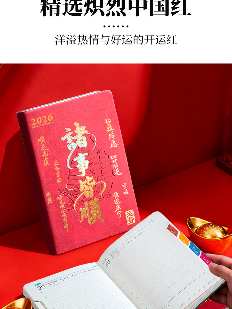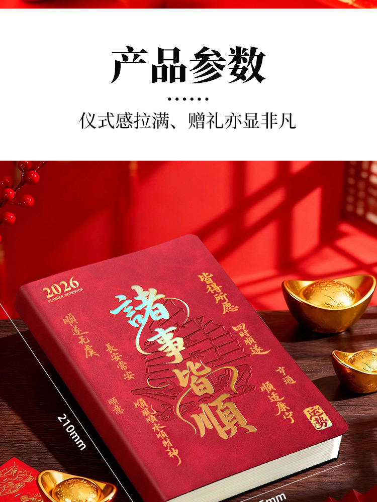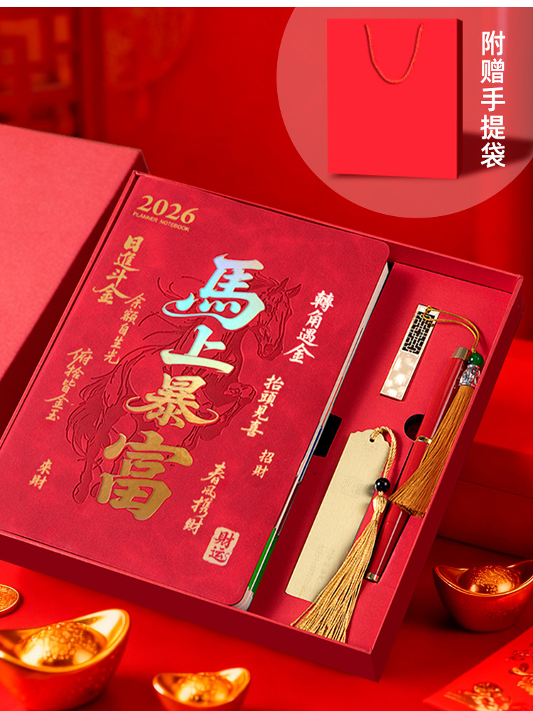 附赠手提袋【烫金压印封面❗️柔软皮面手感舒适】2026年日程本365天一日一页时间管理计划本马年A5国潮笔记本。jb
