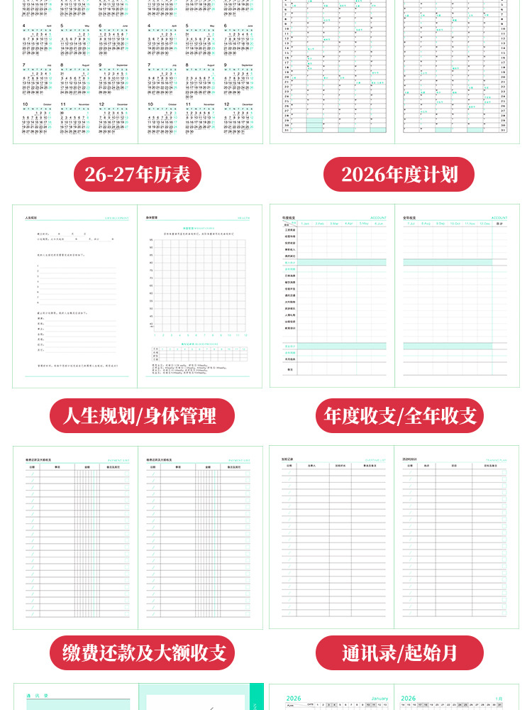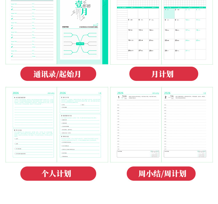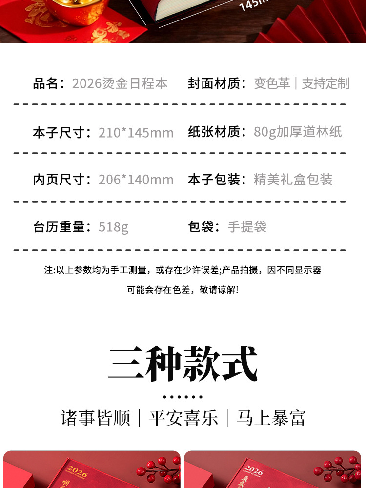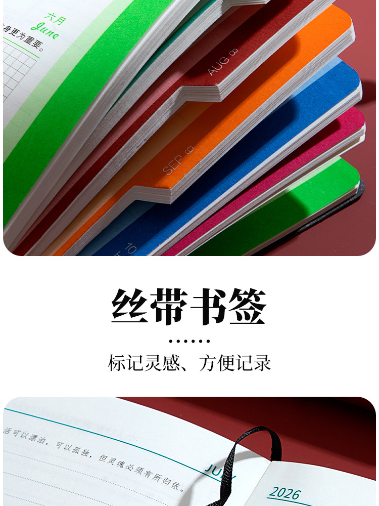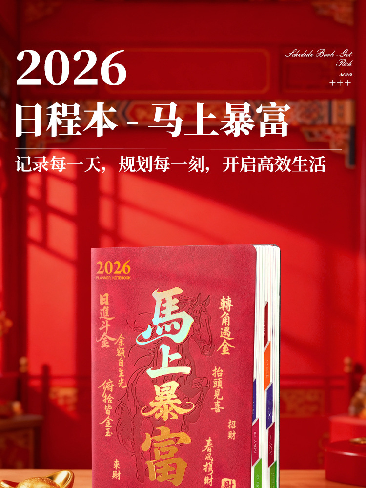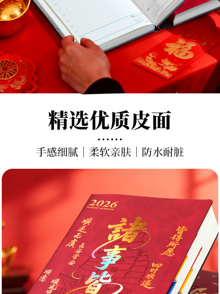 附赠手提袋【烫金压印封面❗️柔软皮面手感舒适】2026年日程本365天一日一页时间管理计划本马年A5国潮笔记本。jb