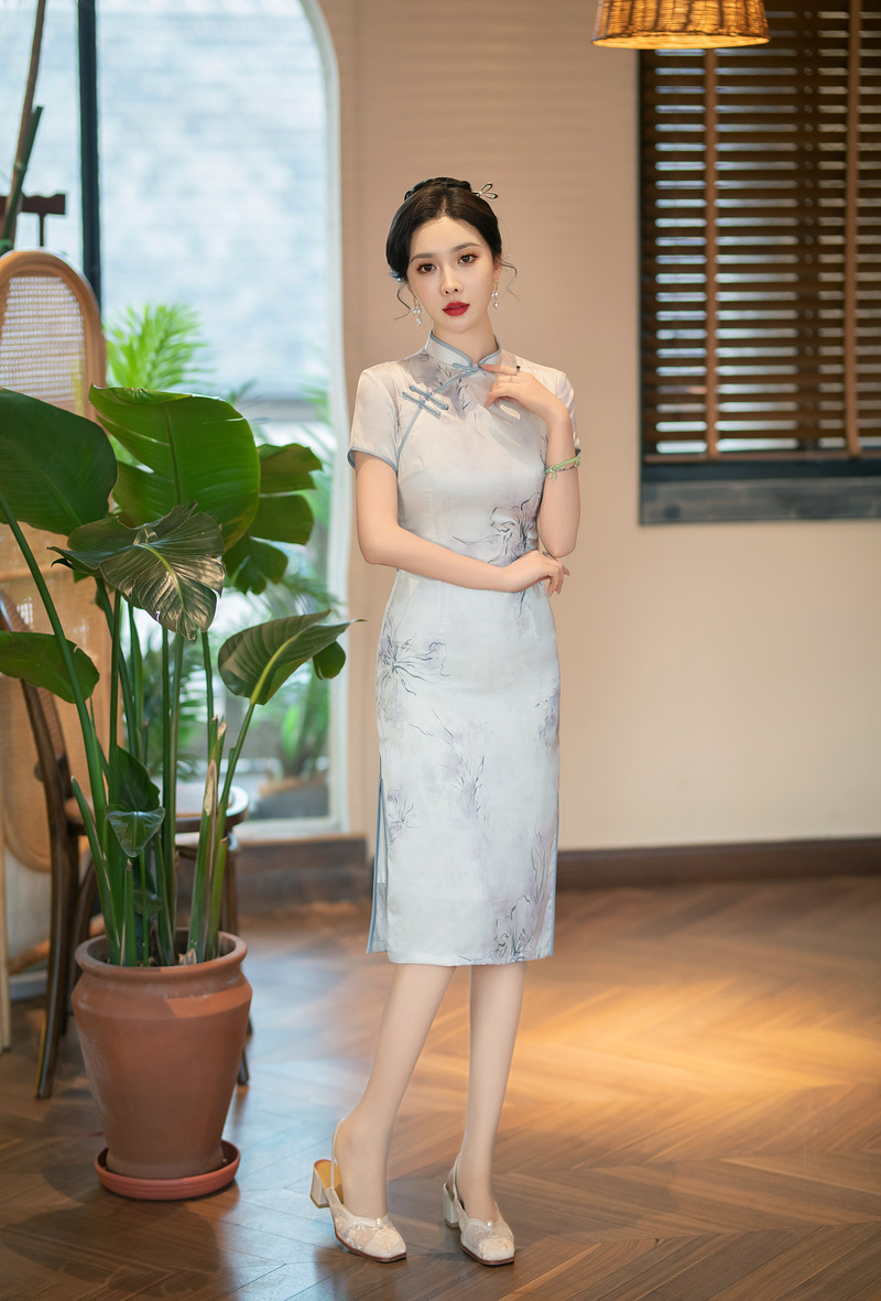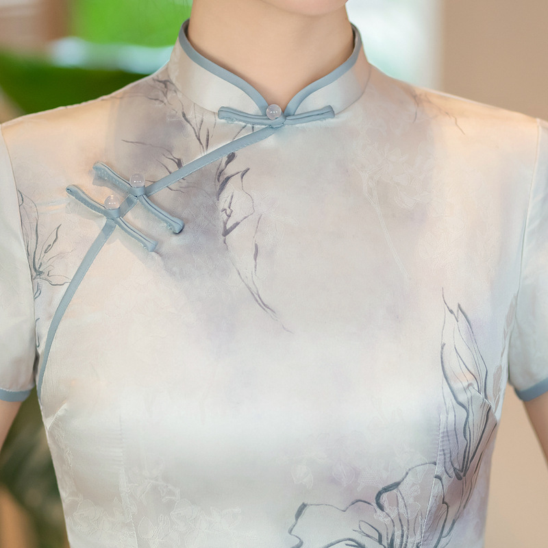 ZAYS-82288春季新款改良丝绸中长素雅日常修身显瘦中国风新中式女装旗袍