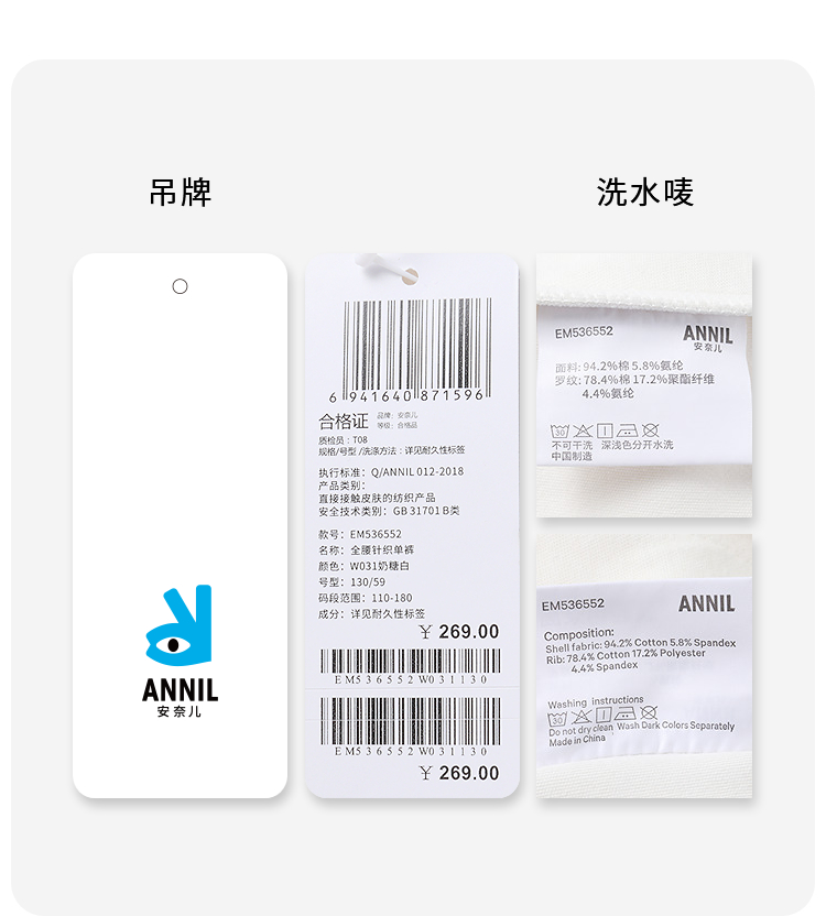 男女童全腰针织单裤秋季新款安奈儿童装小程序专享EM536552