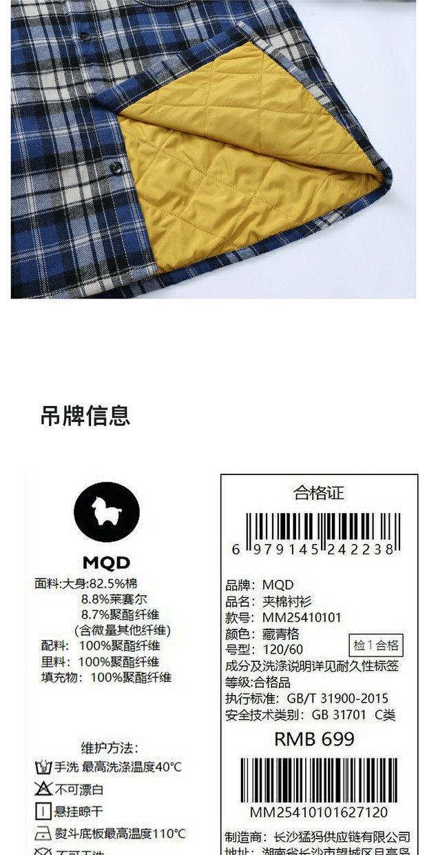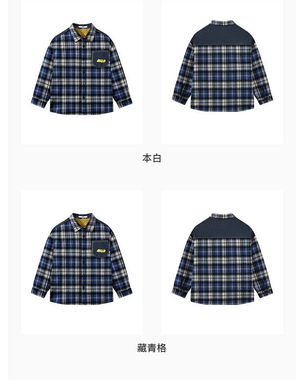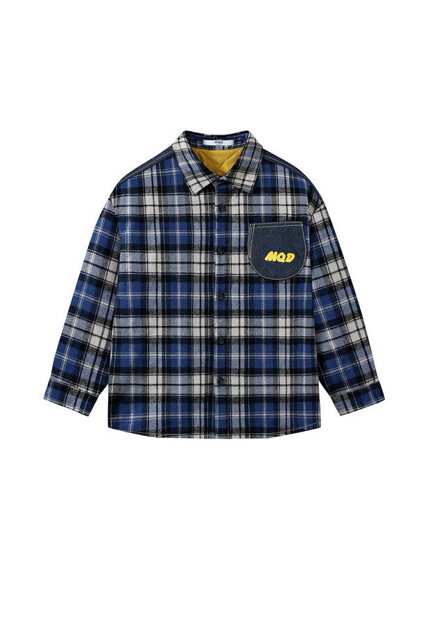 【MQD】童装男大童冬新款儿童休闲保暖百搭上衣格纹夹棉衬衫外套