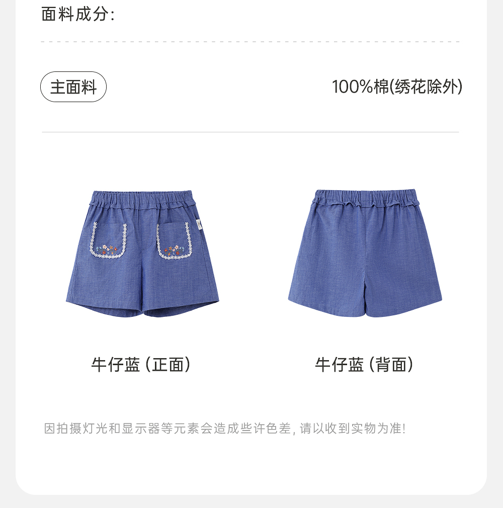 【商场同款】英氏儿童裤子夏季女童轻薄纯棉牛仔裤2025新款短裤