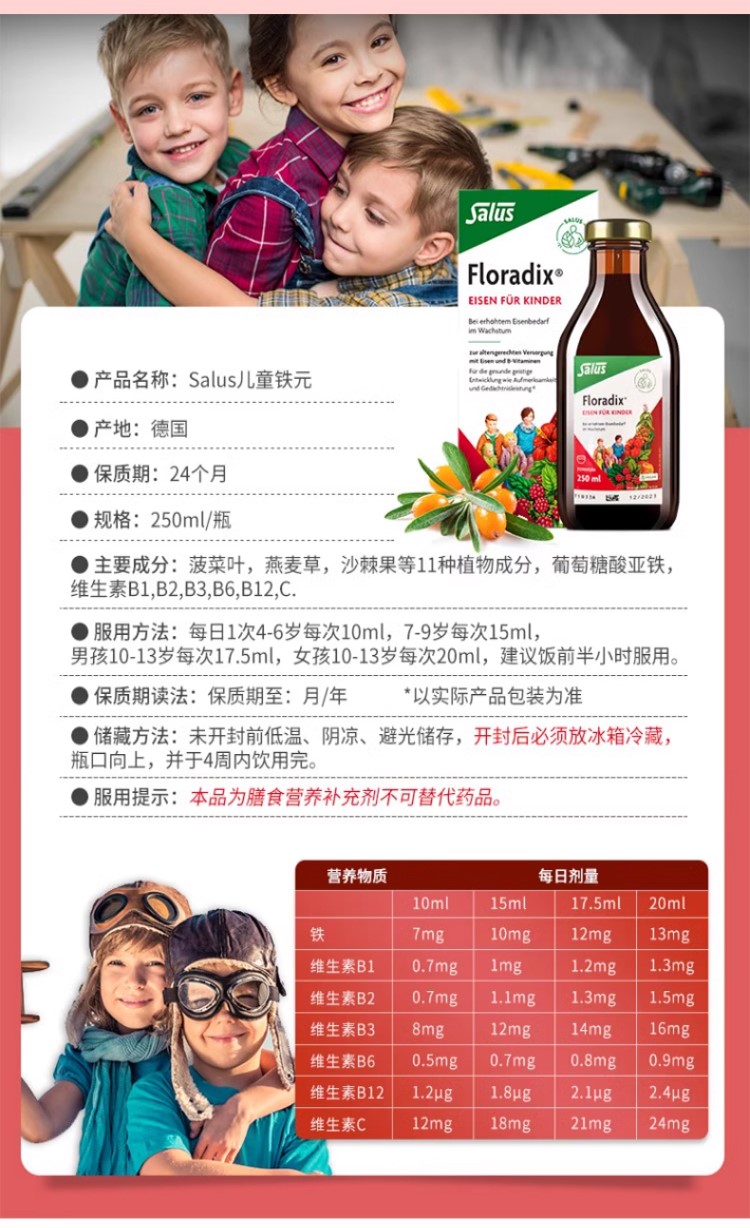 Salus莎露斯Floradix 儿童版铁元250ml【保税直发】