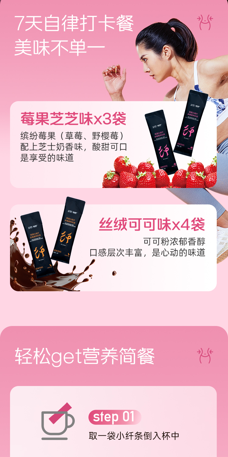 【镜脂·纤 高蛋白高纤多维奶昔】专利养菌代餐+16种复合维矿+高蛋白多纤维,营养控卡!(7袋/盒——莓果芝芝味*3袋+丝绒可可味*4袋)