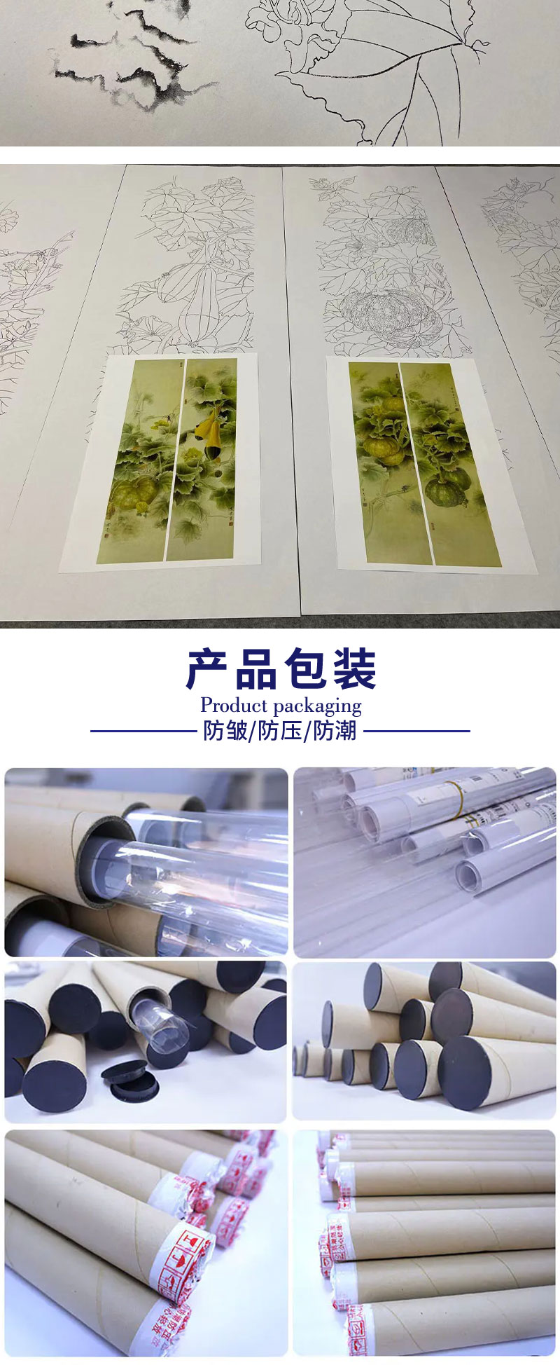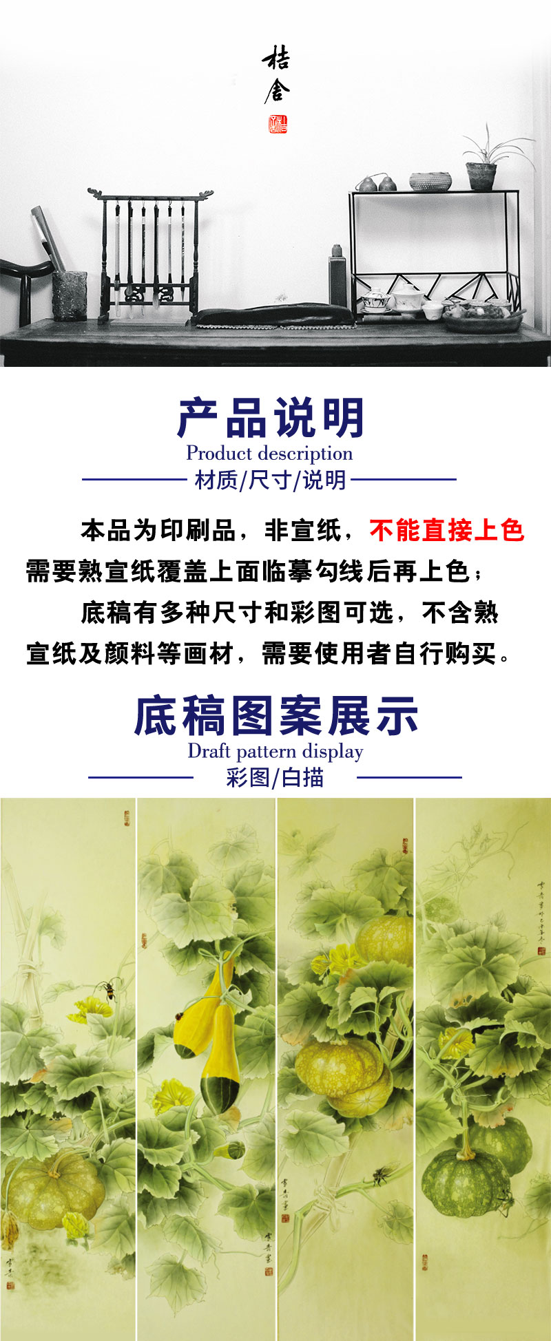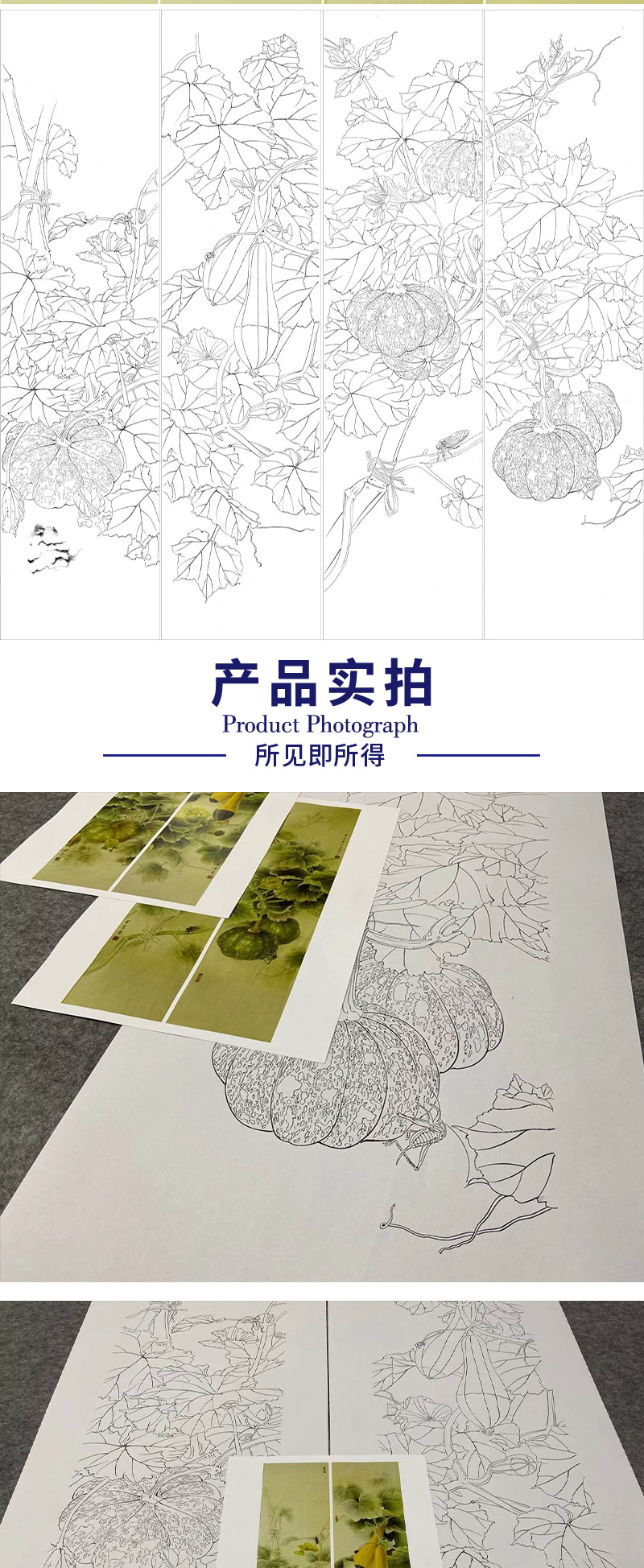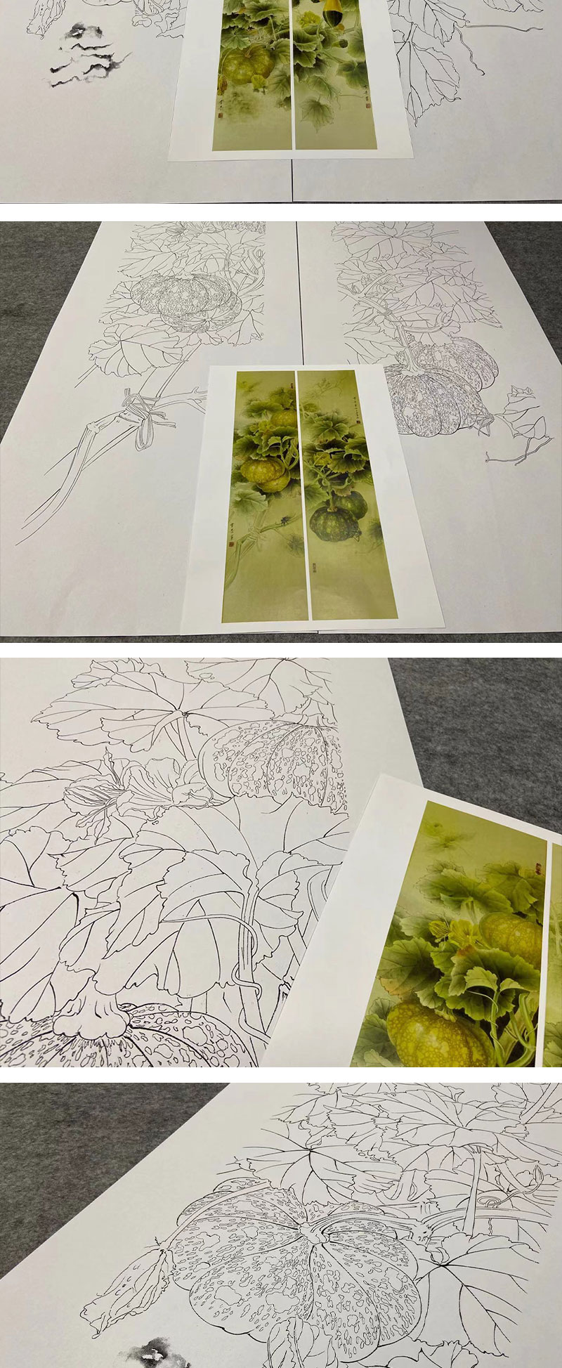 【四条屏】龚雪青工笔画白描底稿南瓜临摹勾线高清打印稿XQ70