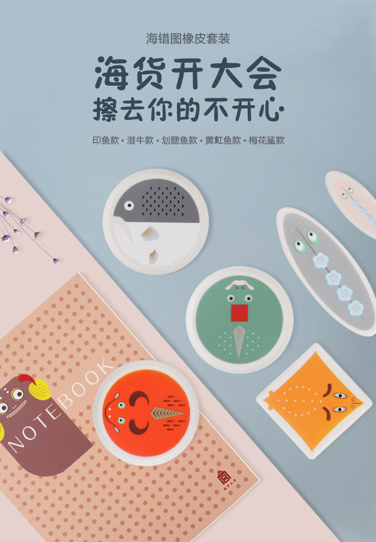 故宫文具海错图橡皮组合国风创意学生办公儿童礼物博物君文创