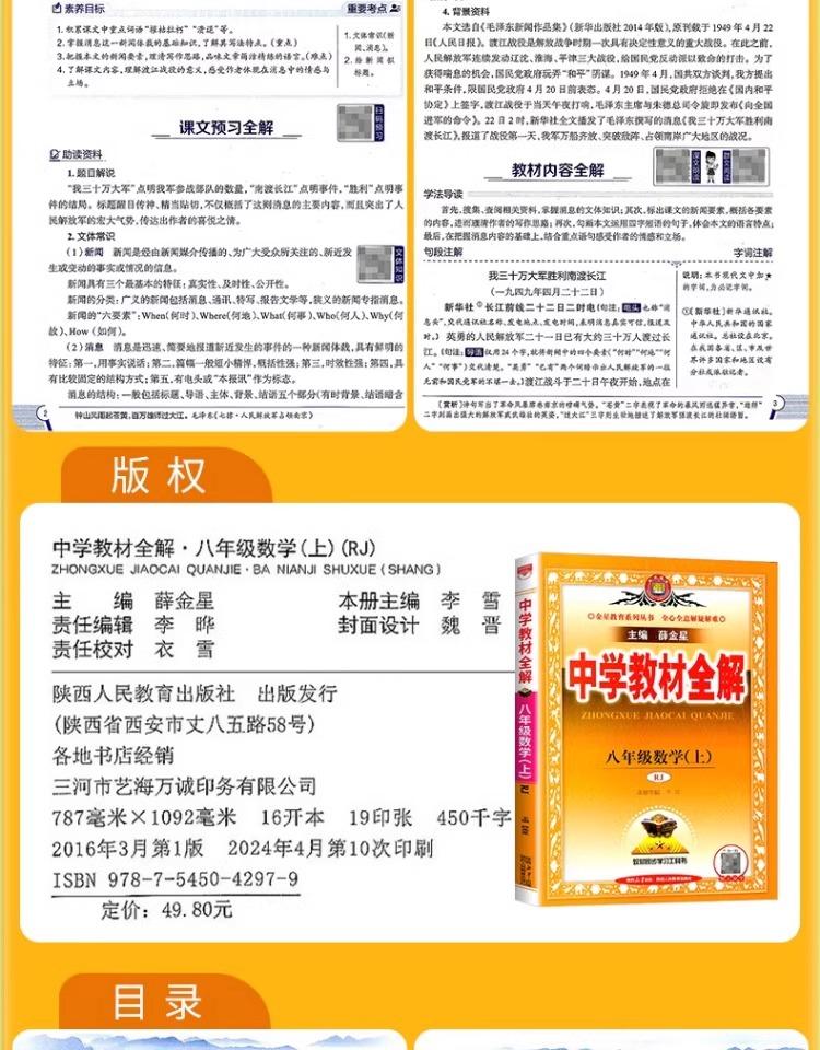 2026薛金星上册下册中学教材全解同步初中教材解读资料辅导浙江专版