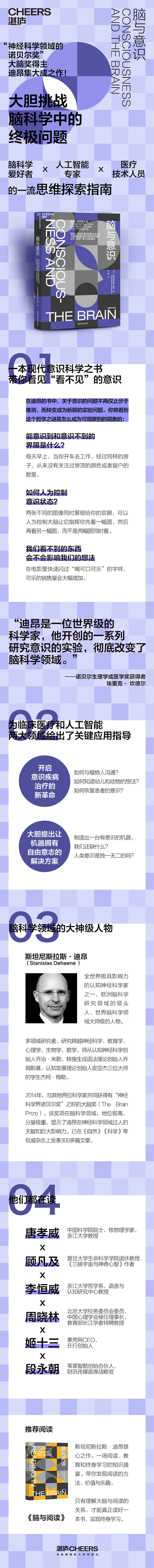意识从何而来?亘古至今,这一问题迷人而深奥。迪昂的这部著作总结了近20年来人类对意识的探索,涵盖了经典的科学实验以及前沿的研究进展,为读者展现了一幅绚烂的意识画卷,是难得的佳作。译文忠于原著,行文流畅,得其精髓。无论是学界的研究者,还是大众读者,都能从本书中获得启发。