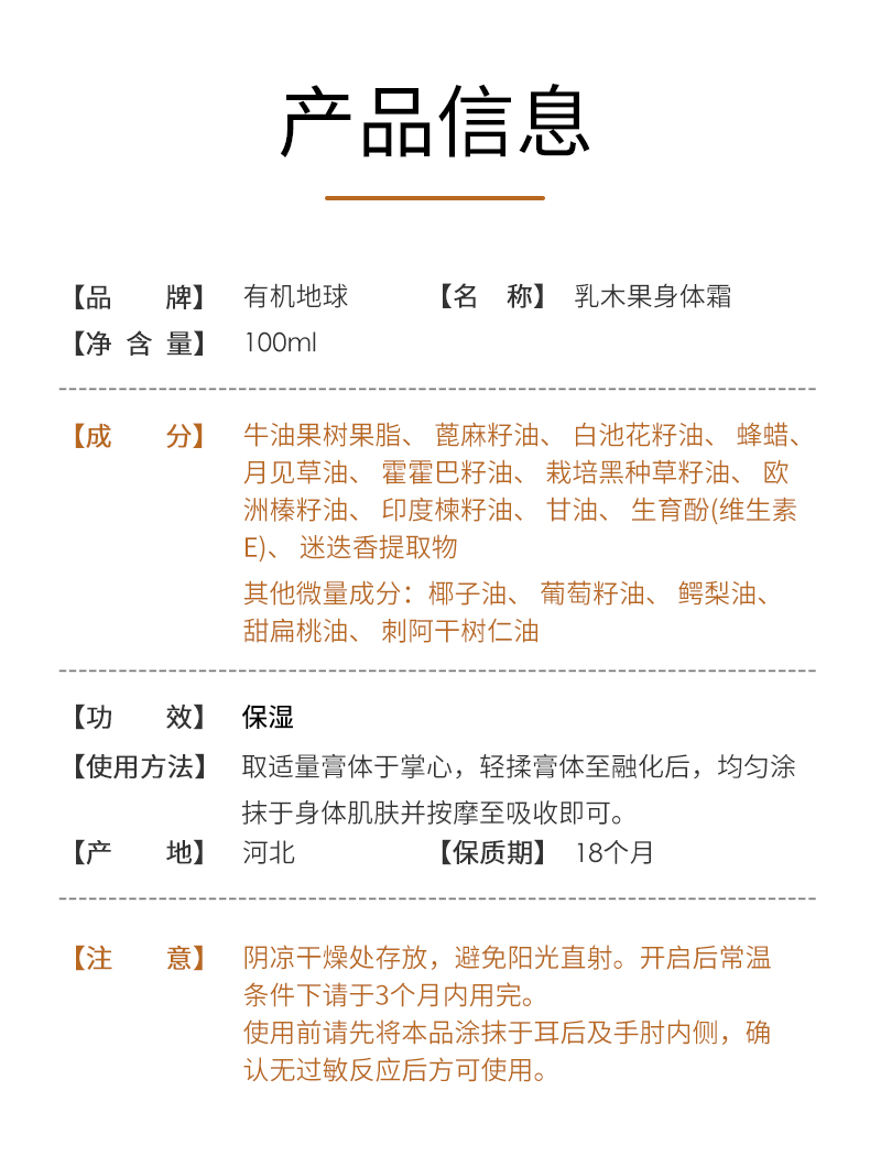 乳木果身体霜 | 100ml/罐 高保湿润肤霜 滋润干燥肌肤 含蜂蜡 四季适用 有机地球「外罐环保无塑封」