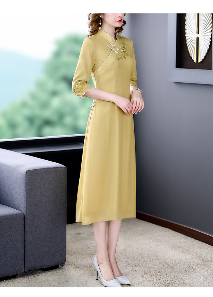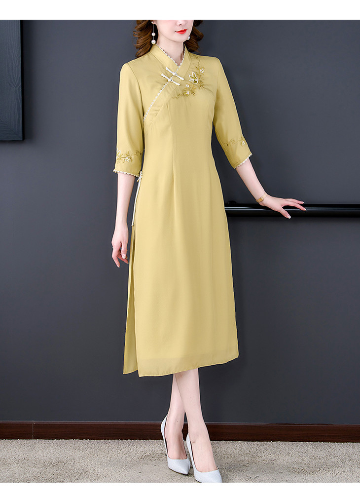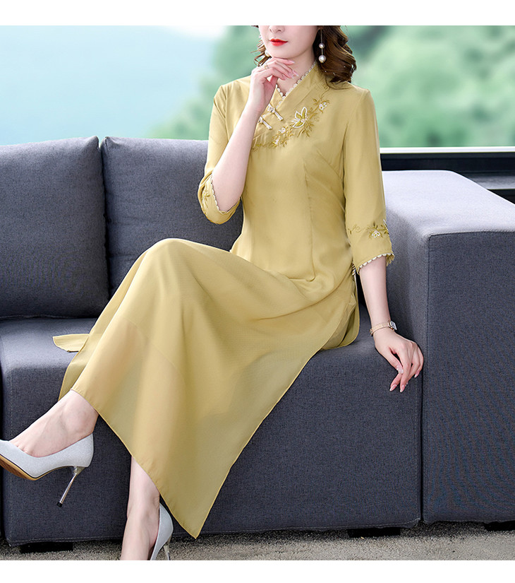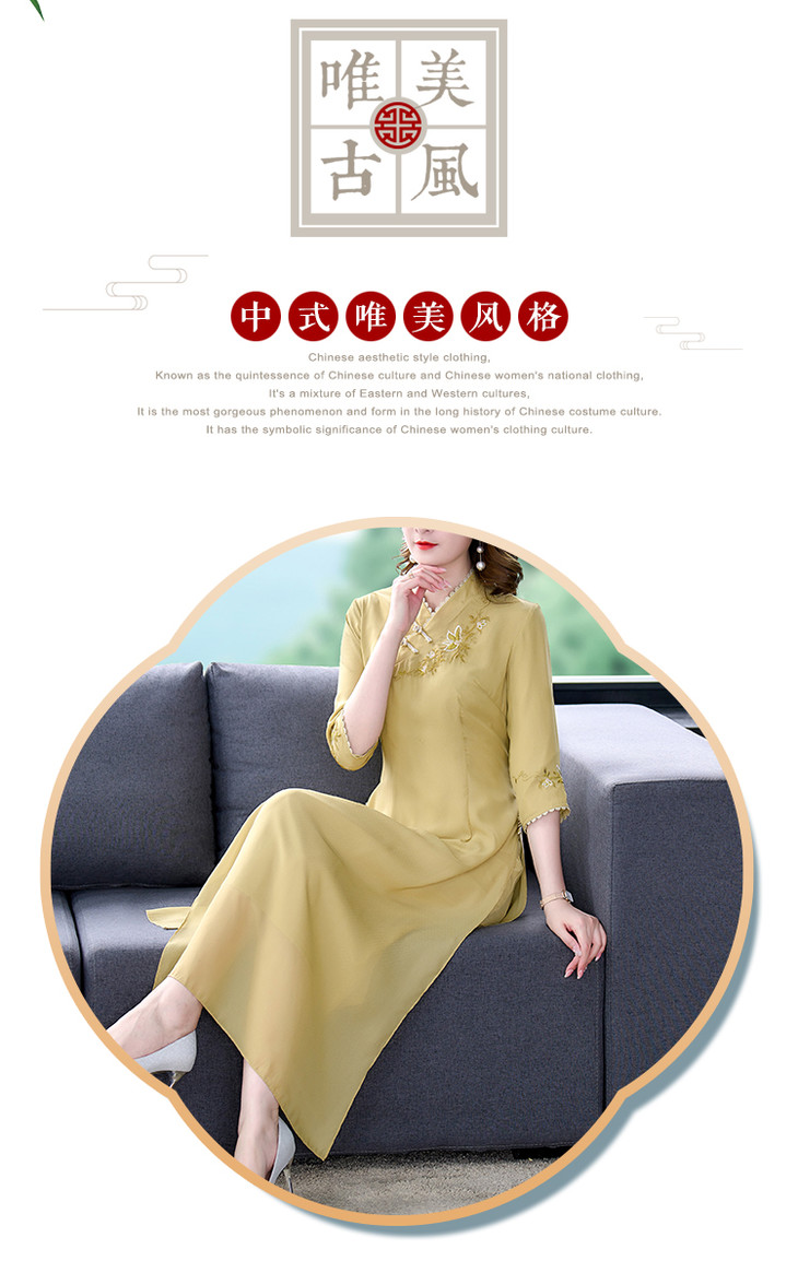 改良旗袍2022春夏新款开领优雅绣花A摆日常中式国风旗袍连衣裙 XYX8665