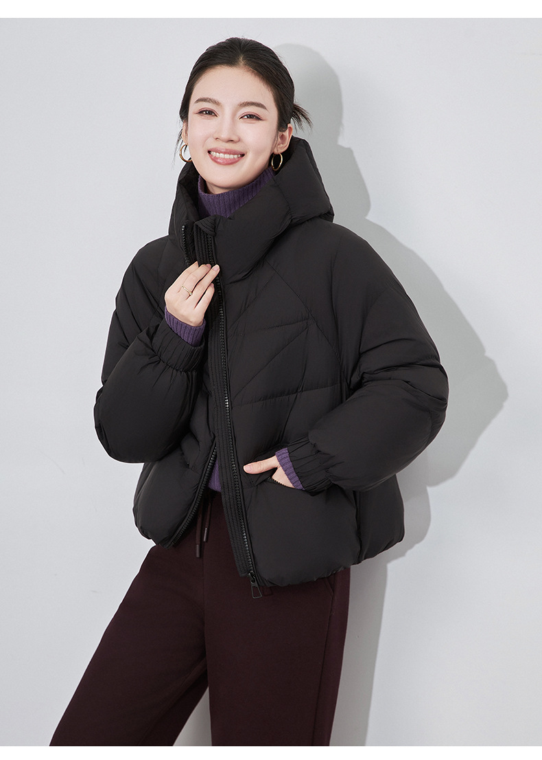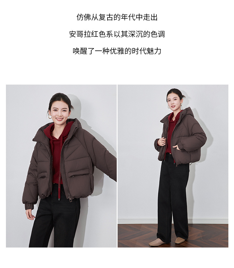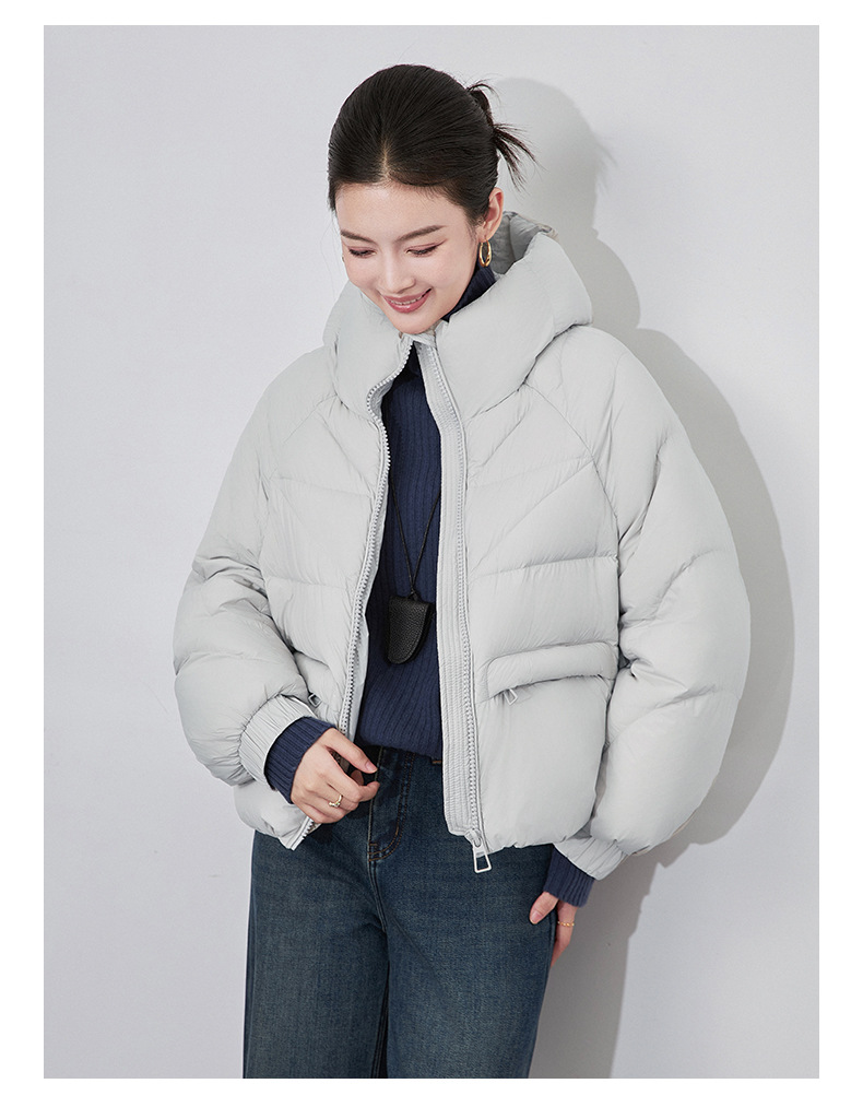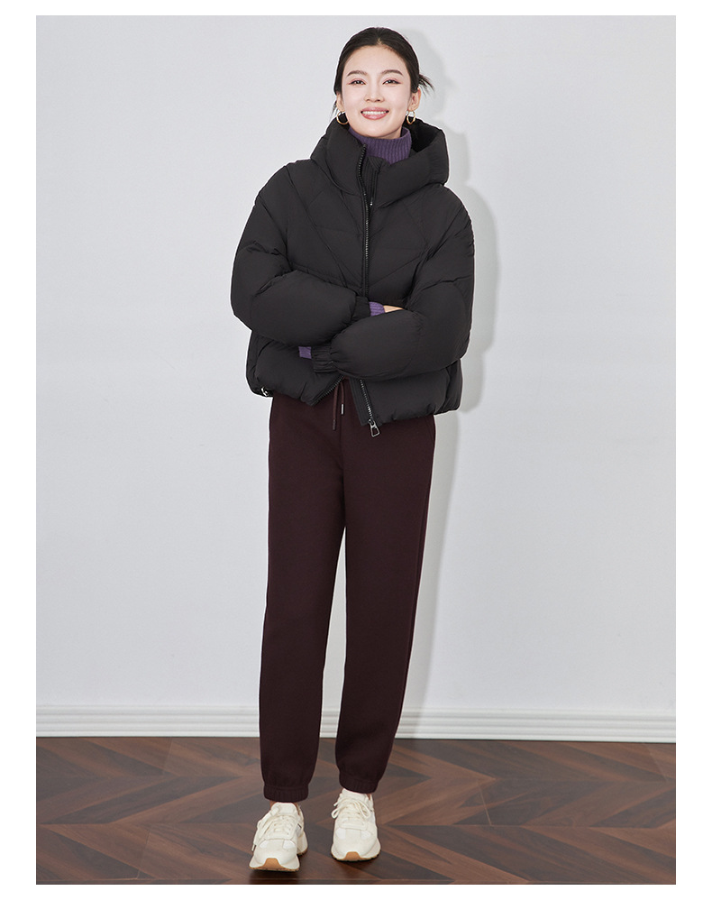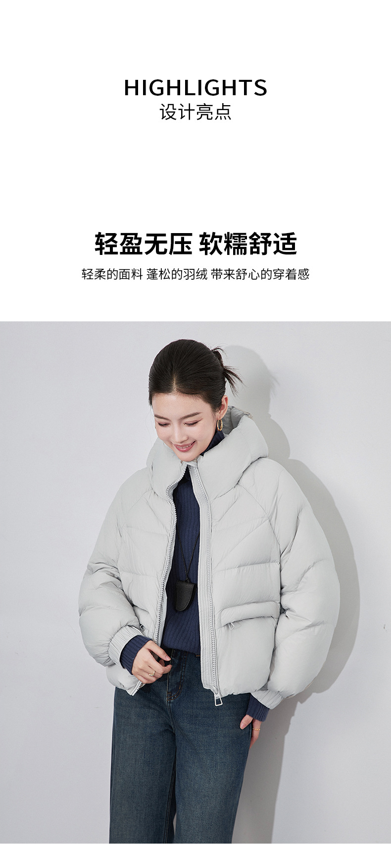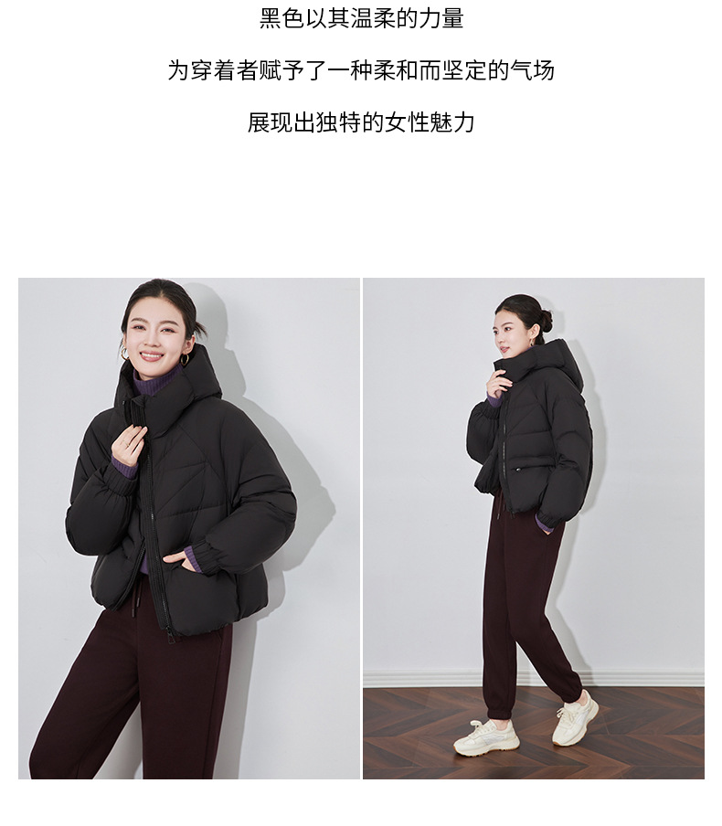 【高货wl】全新升级【铂金会员551/天猫749/差价198】(04209) 洛诗琳冬季短款连帽立领三角菱格绗线宽松直筒加厚羽绒服