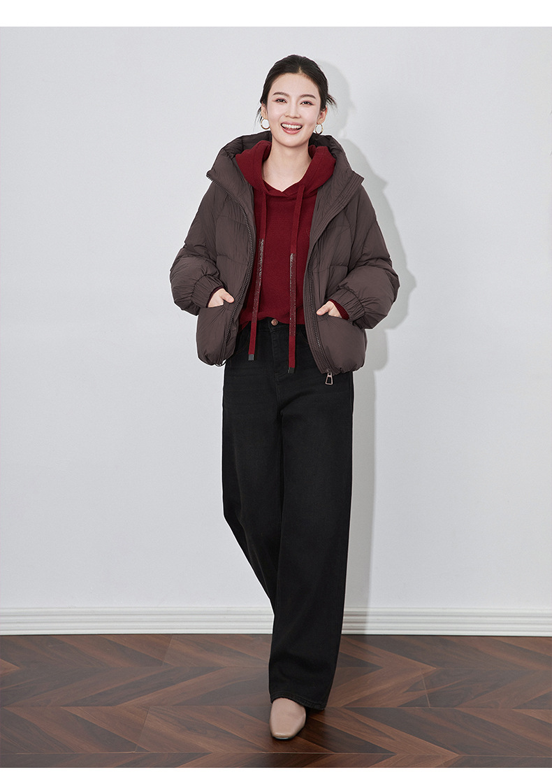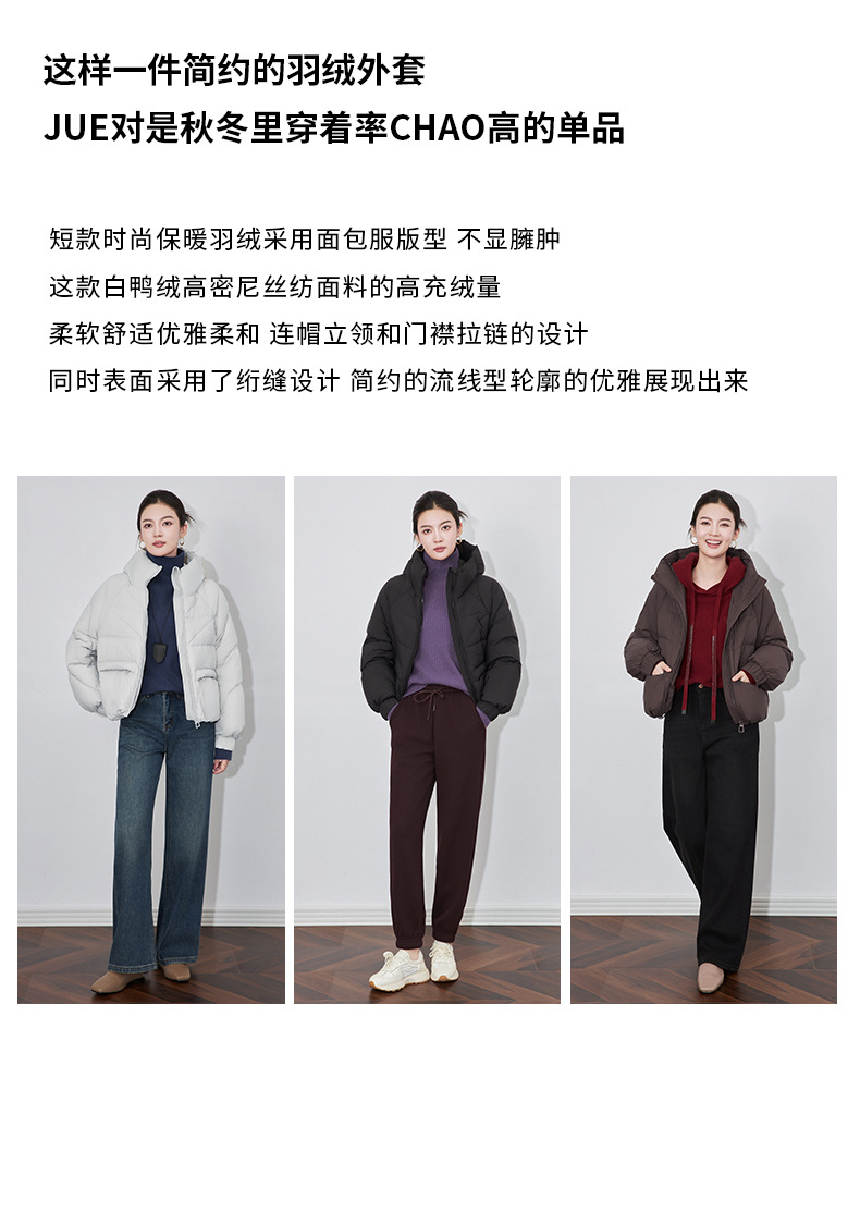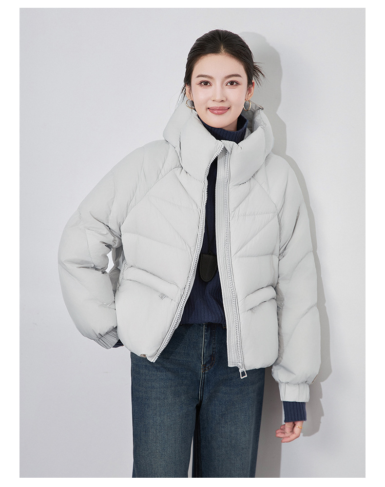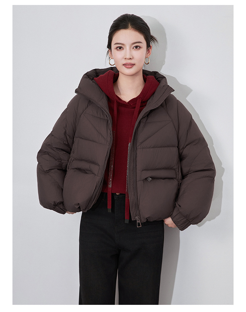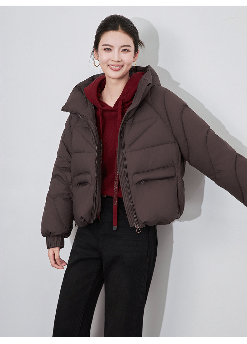 【高货wl】全新升级【铂金会员551/天猫749/差价198】(04209) 洛诗琳冬季短款连帽立领三角菱格绗线宽松直筒加厚羽绒服