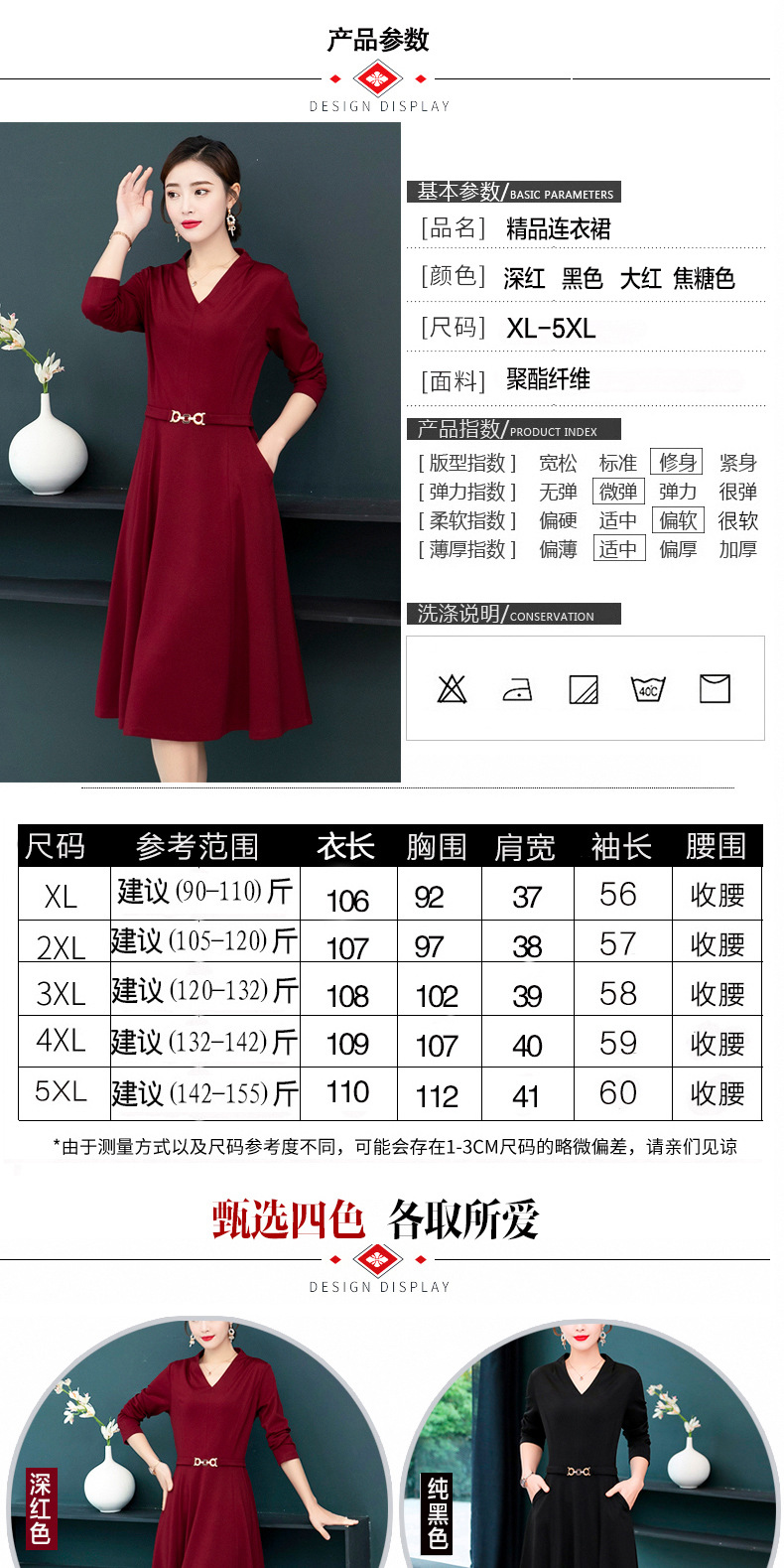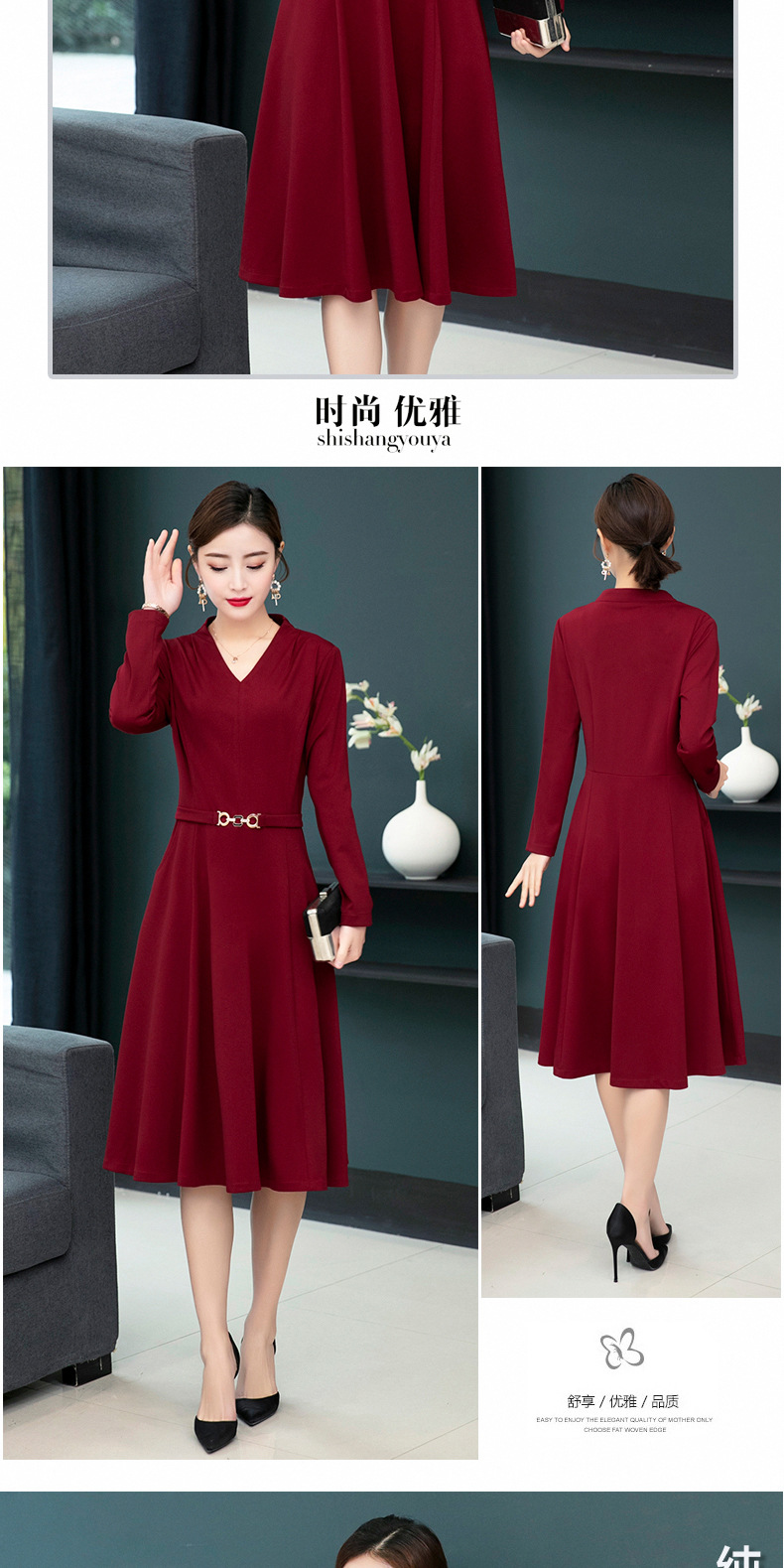 MQ-RL9960春新款V领收腰显瘦过膝OL气质长裙