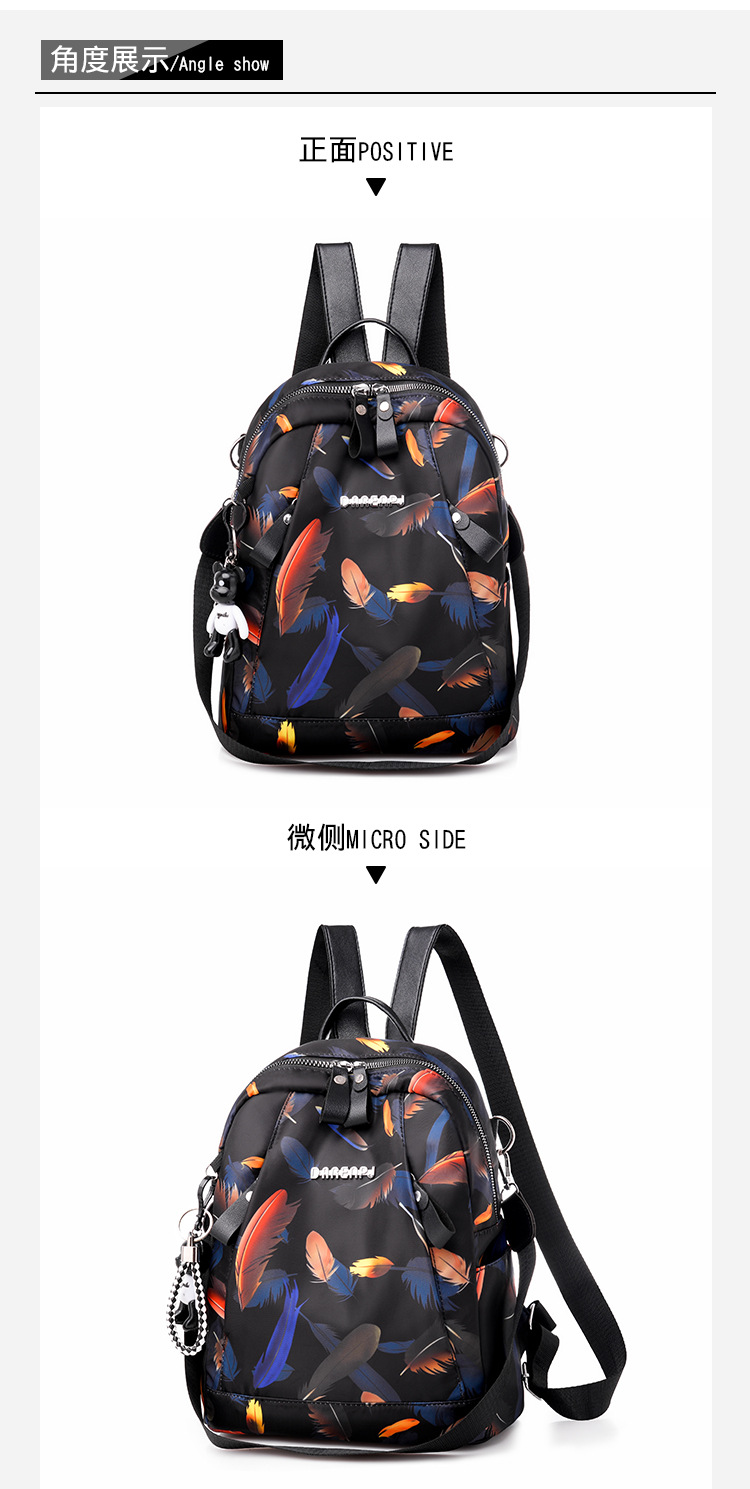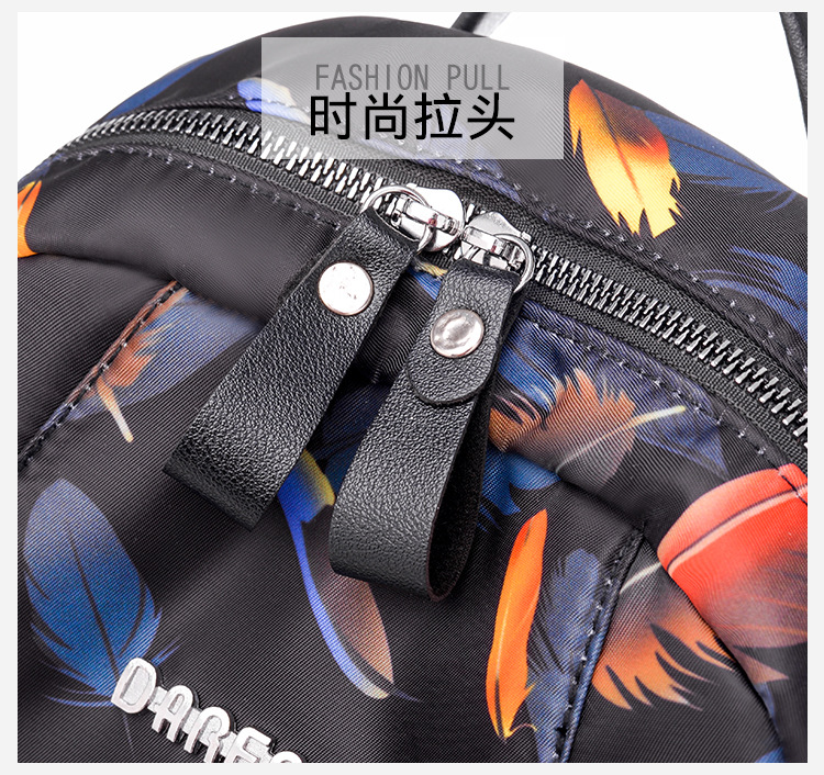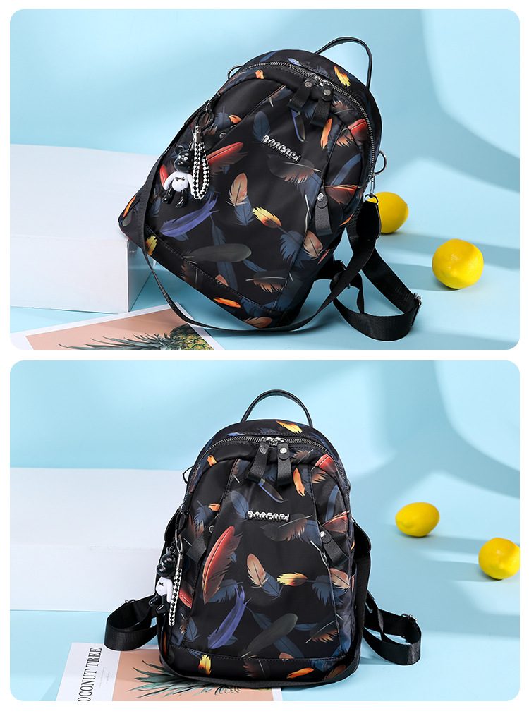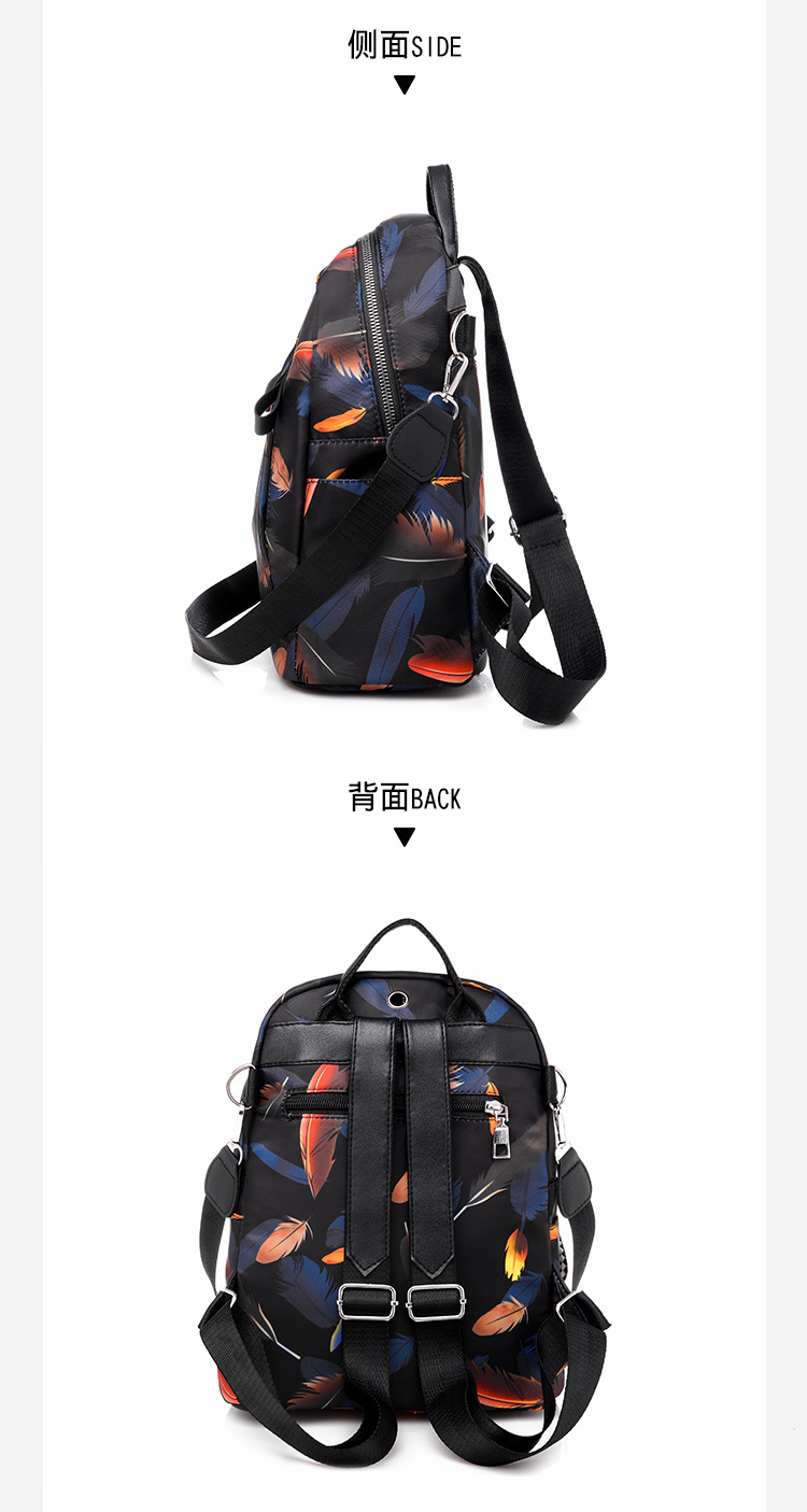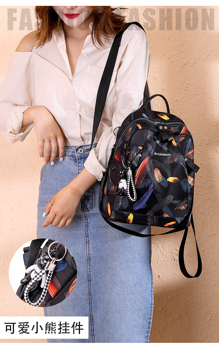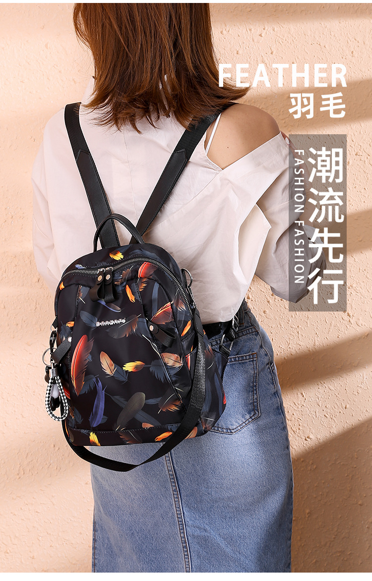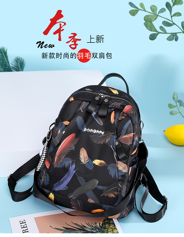 QY-双肩女包韩版时尚牛津布印花羽毛背包 TZW