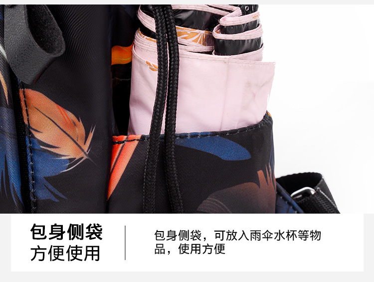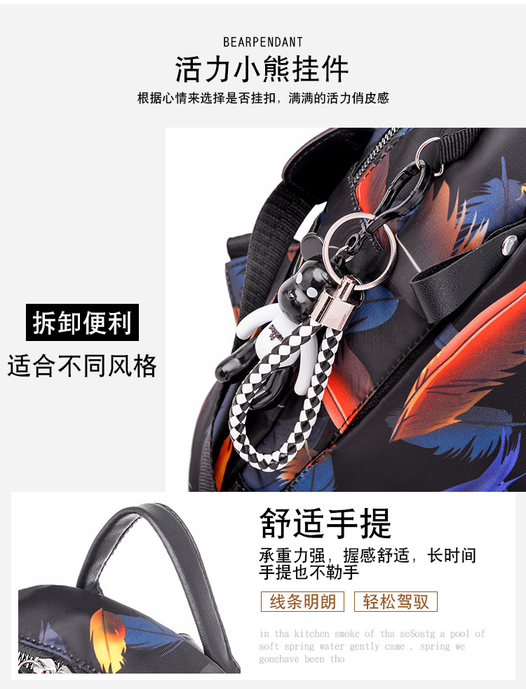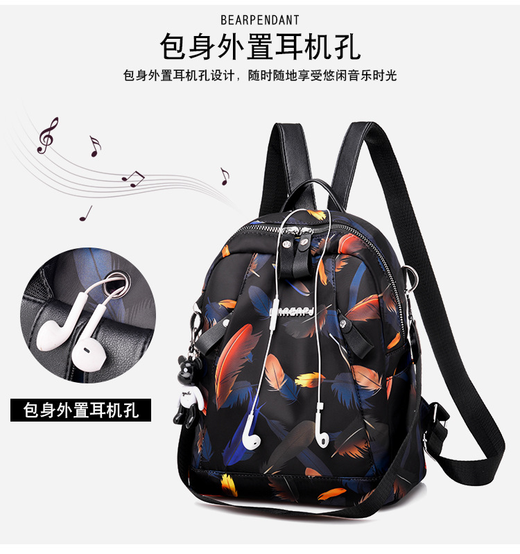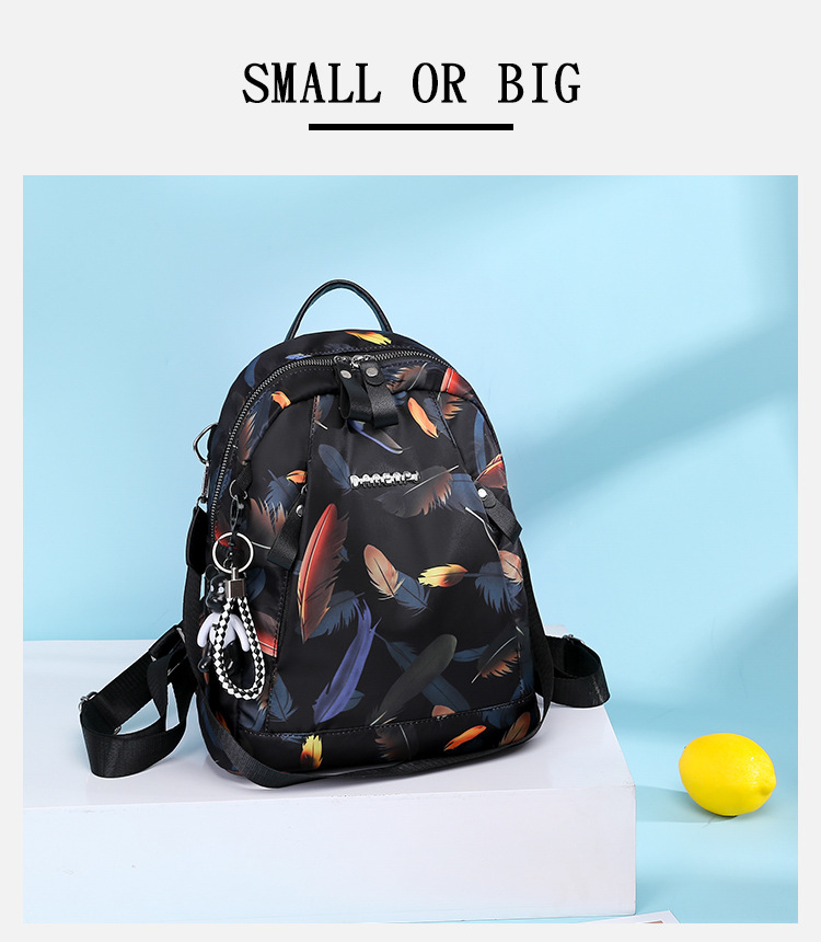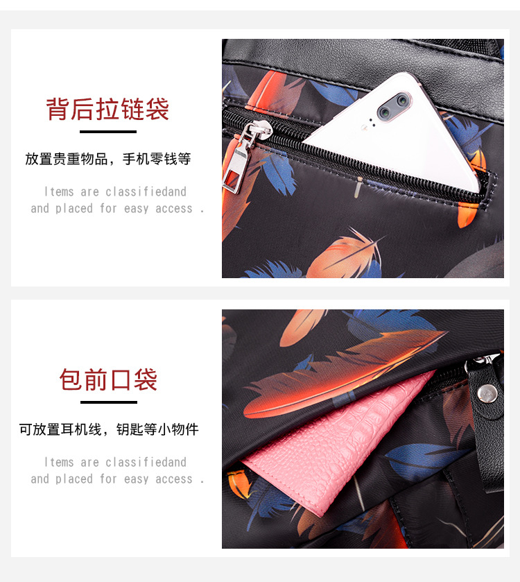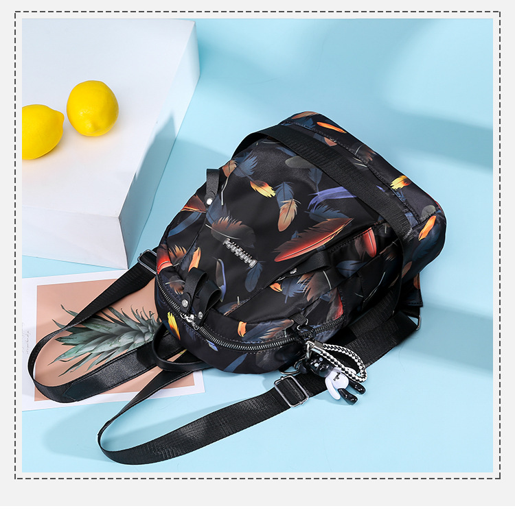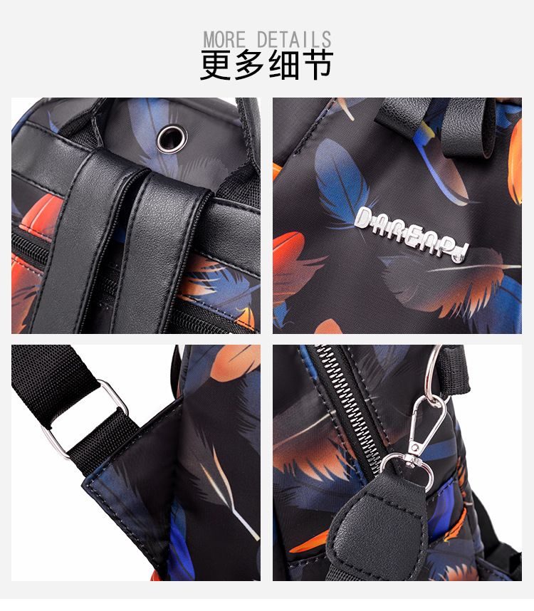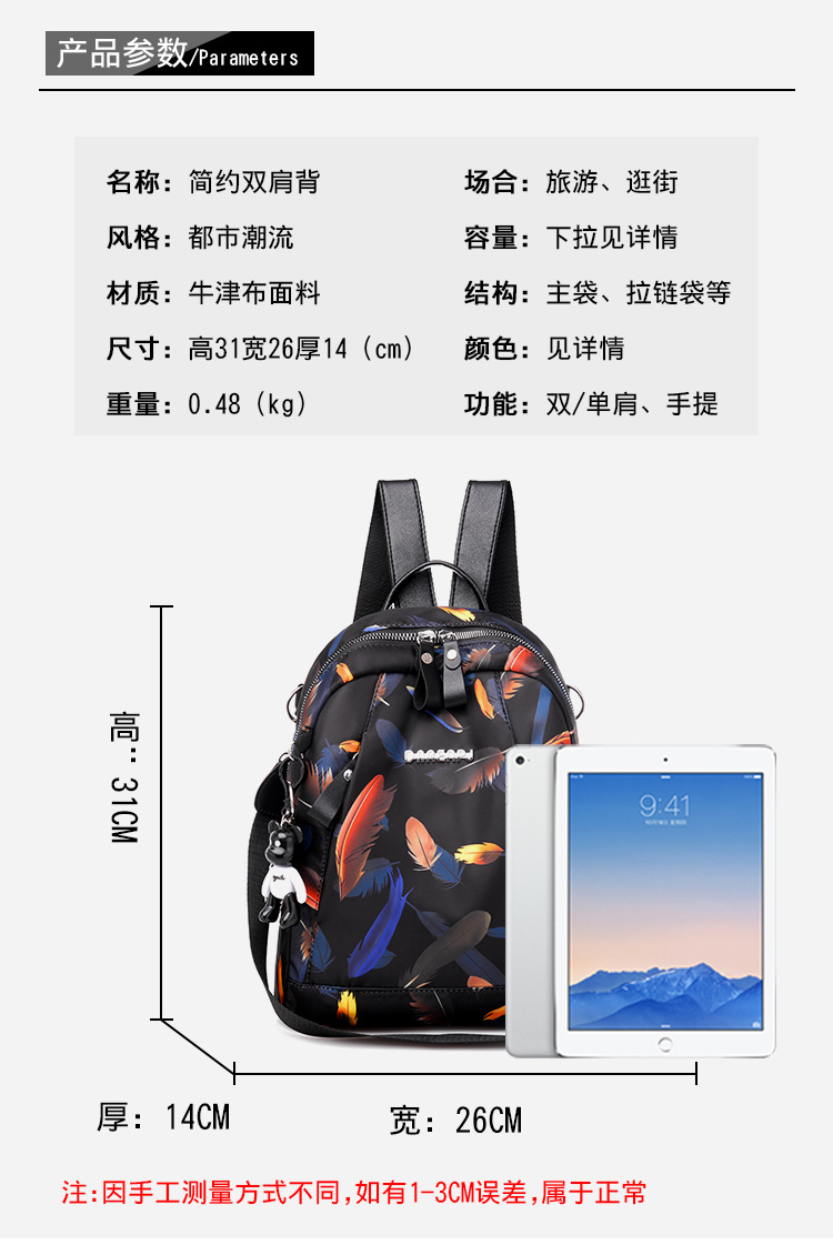 QY-双肩女包韩版时尚牛津布印花羽毛背包 TZW