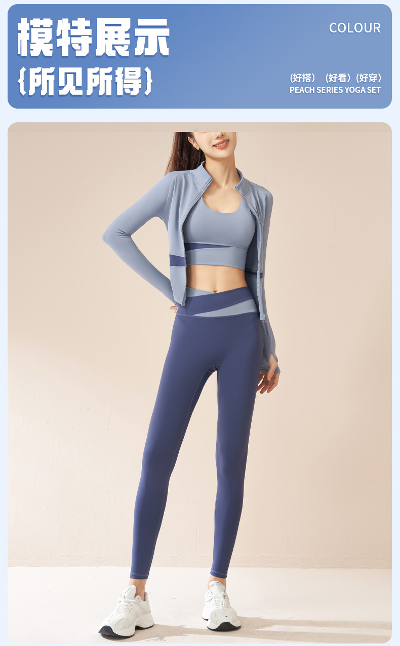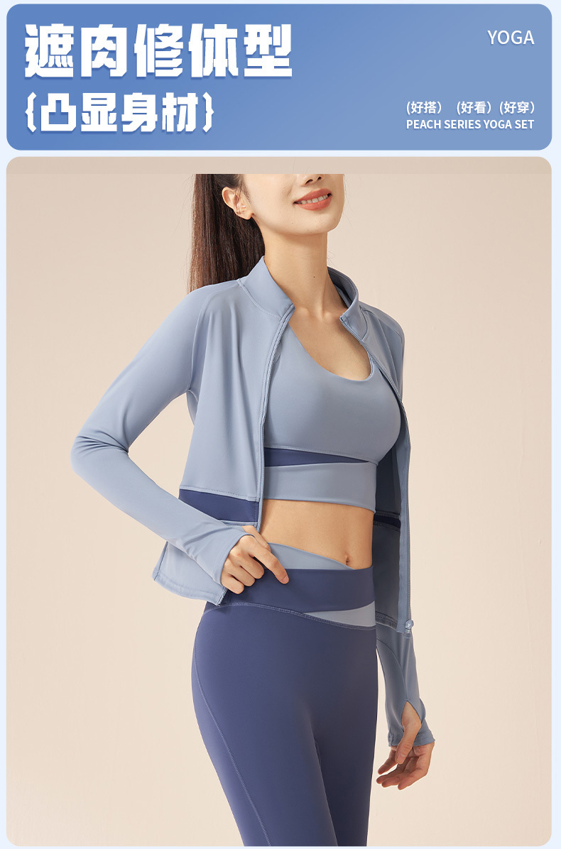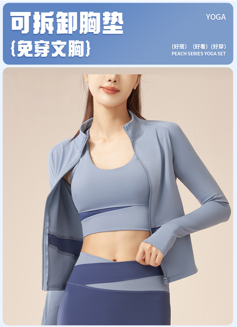 跃牌【瑜堂系列】拼色瑜伽四件套文胸短裤外套长裤裸感修身高强度瑜伽套装JYMW022+JYMN004+JYMK002+JYMA003