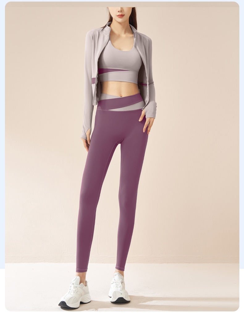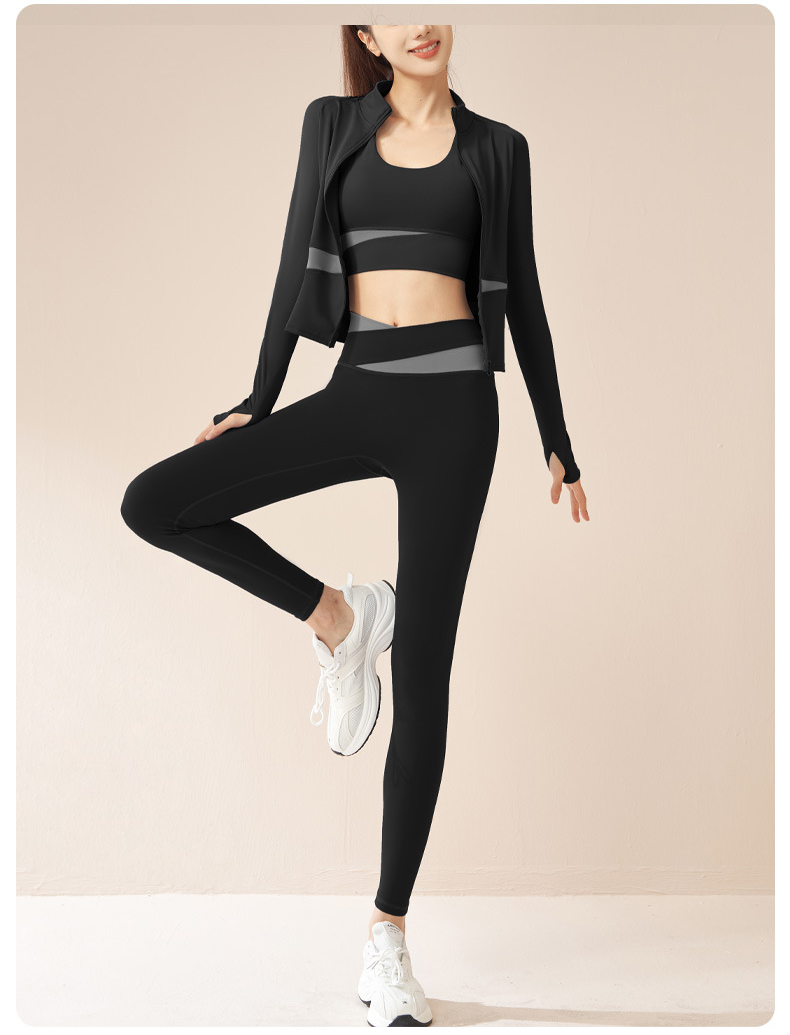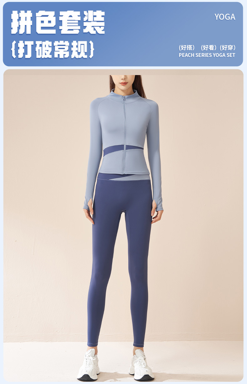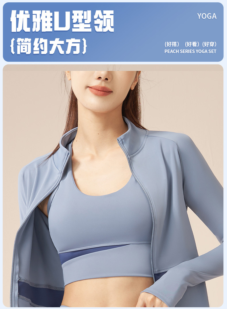 跃牌【瑜堂系列】拼色瑜伽四件套文胸短裤外套长裤裸感修身高强度瑜伽套装JYMW022+JYMN004+JYMK002+JYMA003