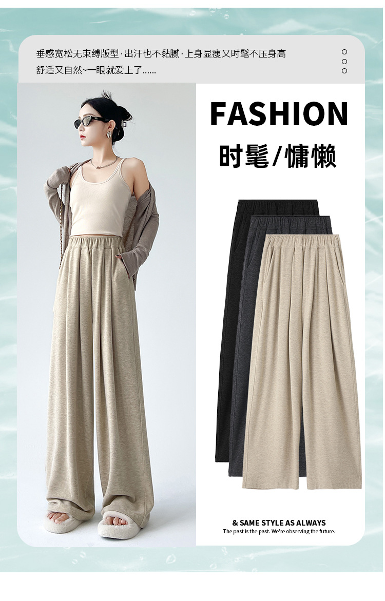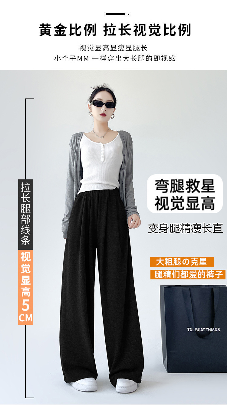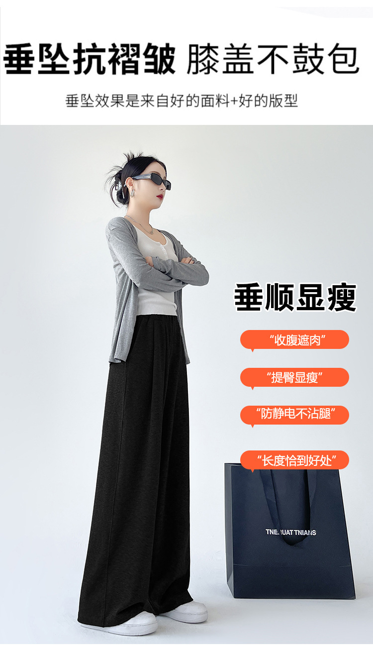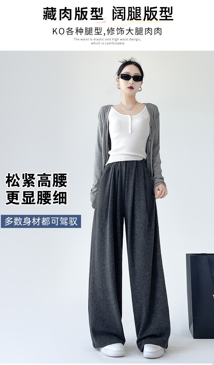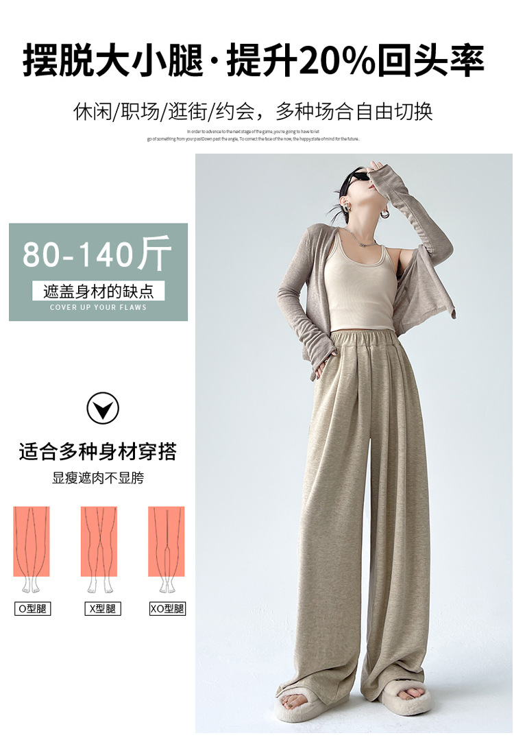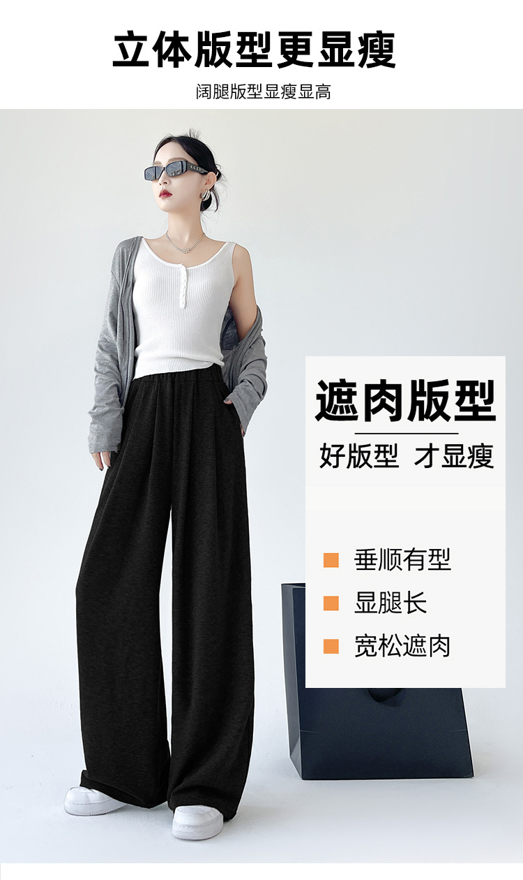 百媚生 糯米阔腿裤女高腰宽松简约直筒垂感休闲裤子 K8602