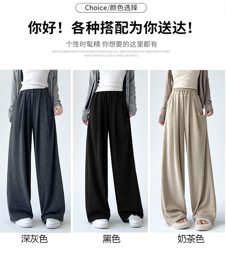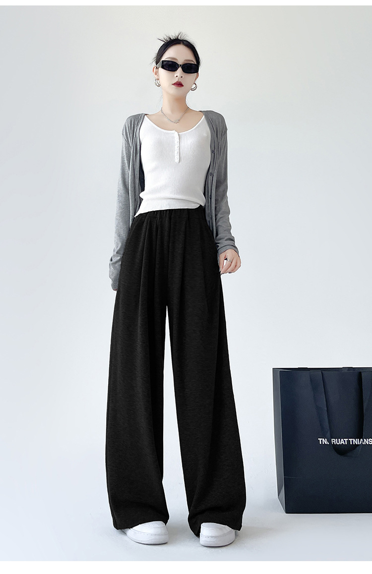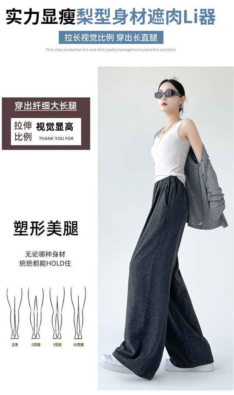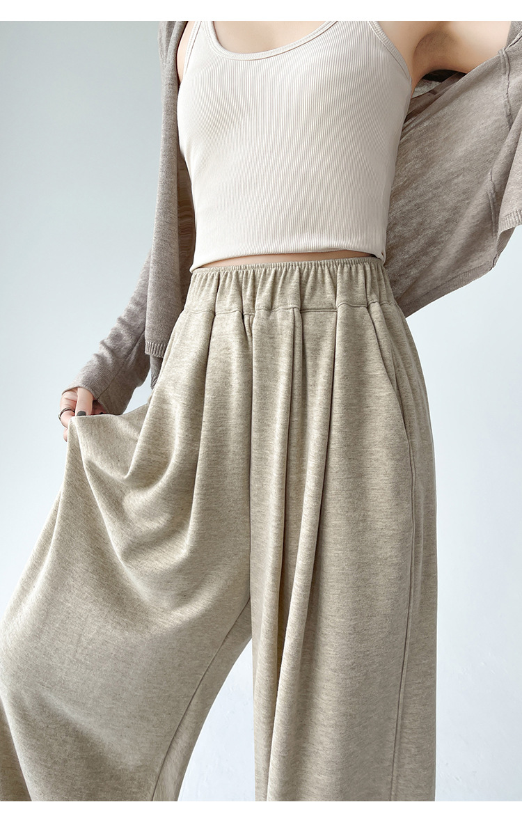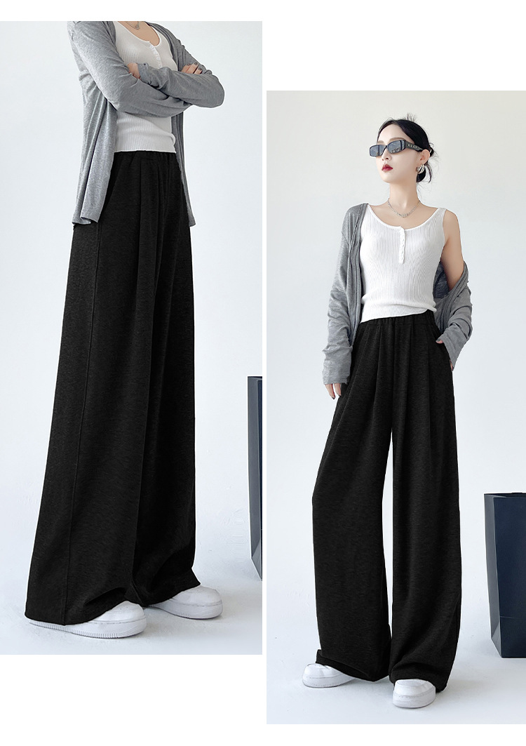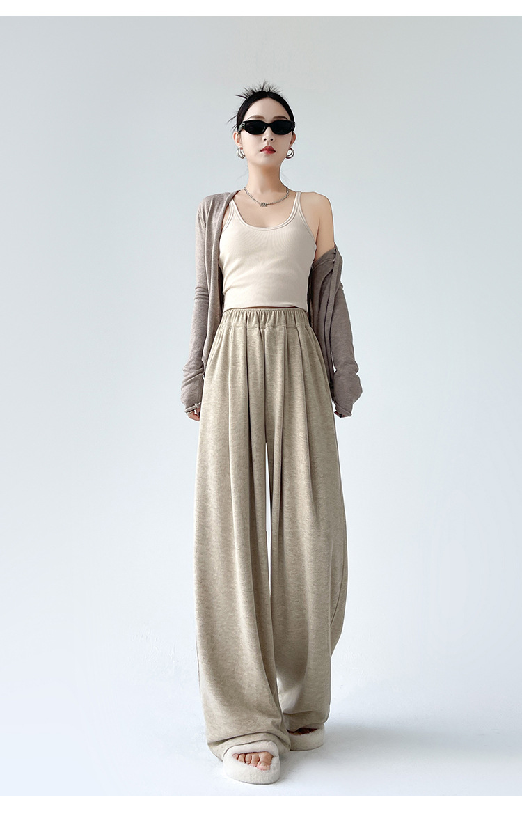 百媚生 糯米阔腿裤女高腰宽松简约直筒垂感休闲裤子 K8602