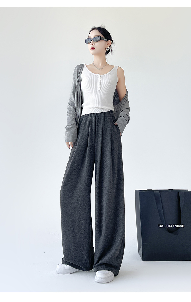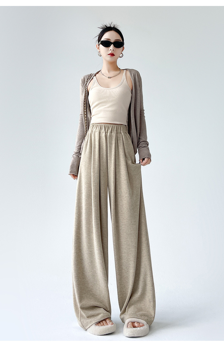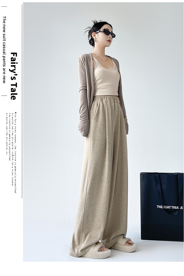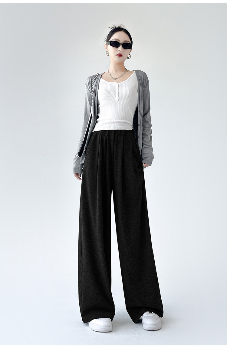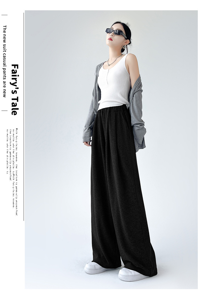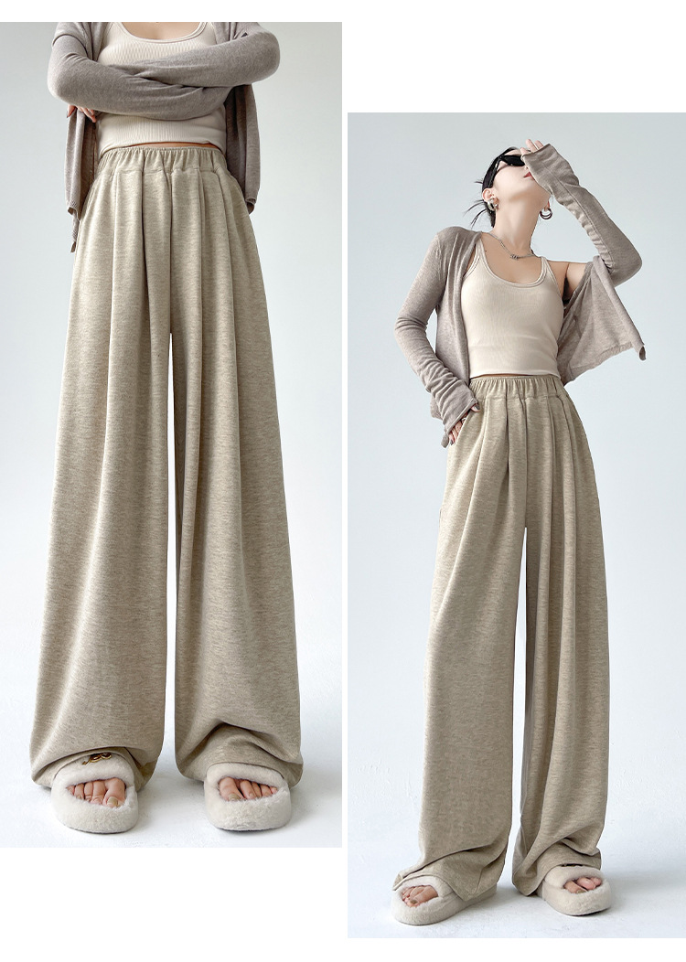 百媚生 糯米阔腿裤女高腰宽松简约直筒垂感休闲裤子 K8602