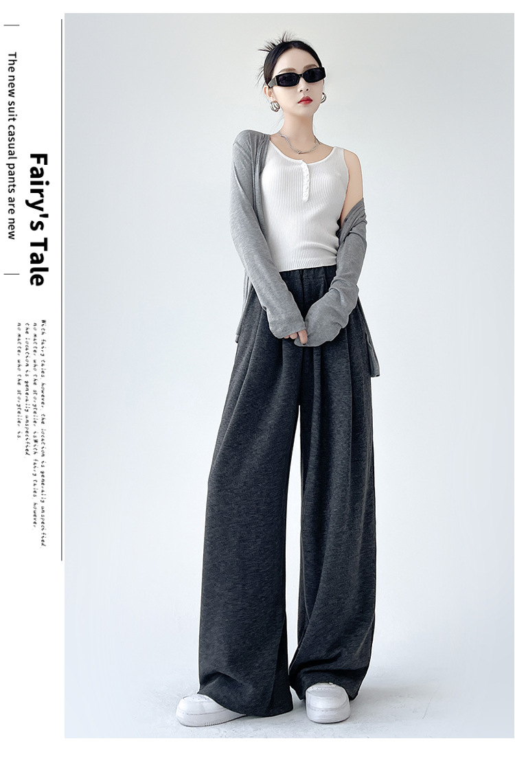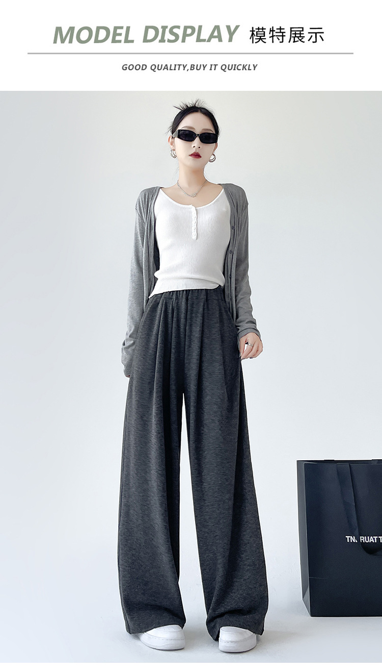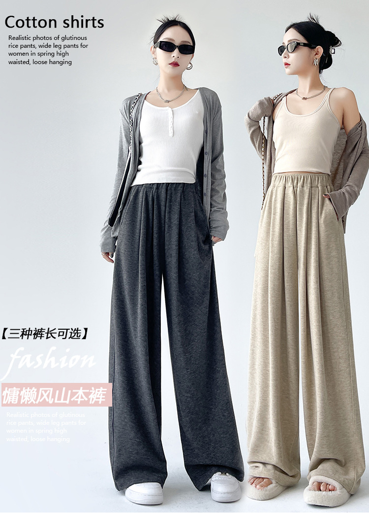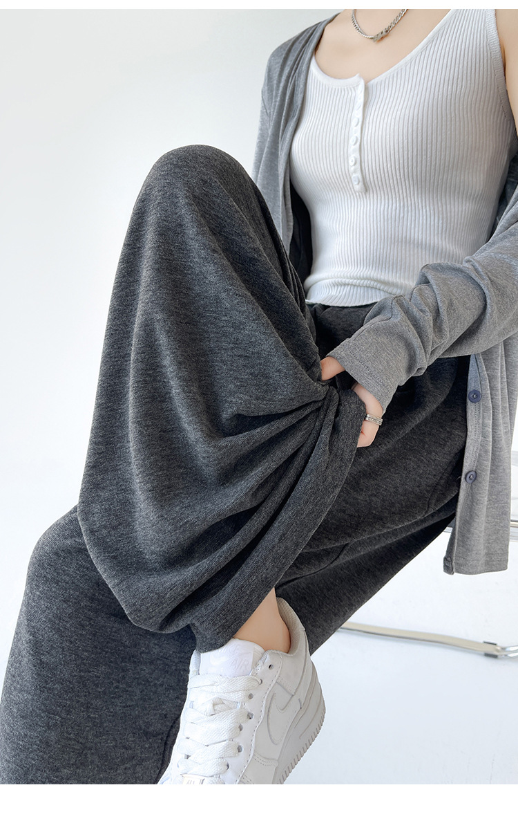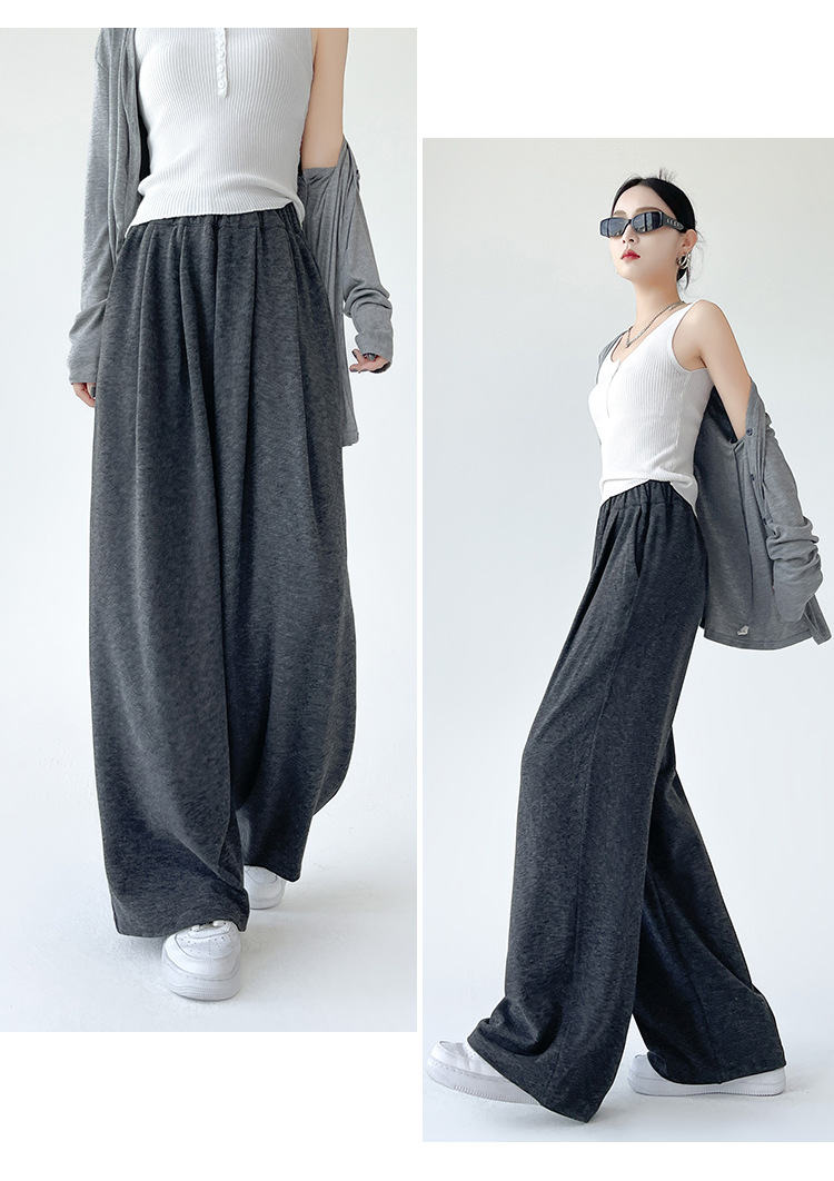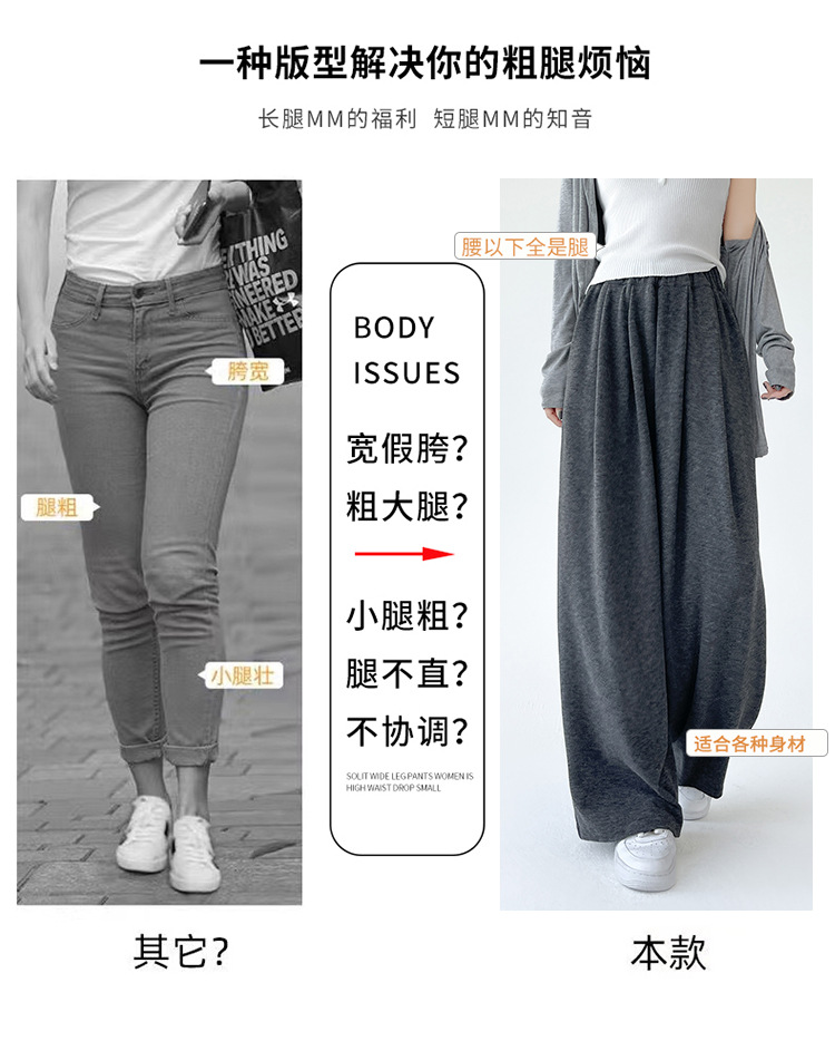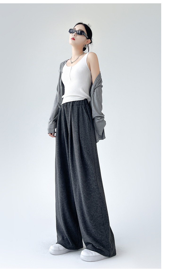 百媚生 糯米阔腿裤女高腰宽松简约直筒垂感休闲裤子 K8602