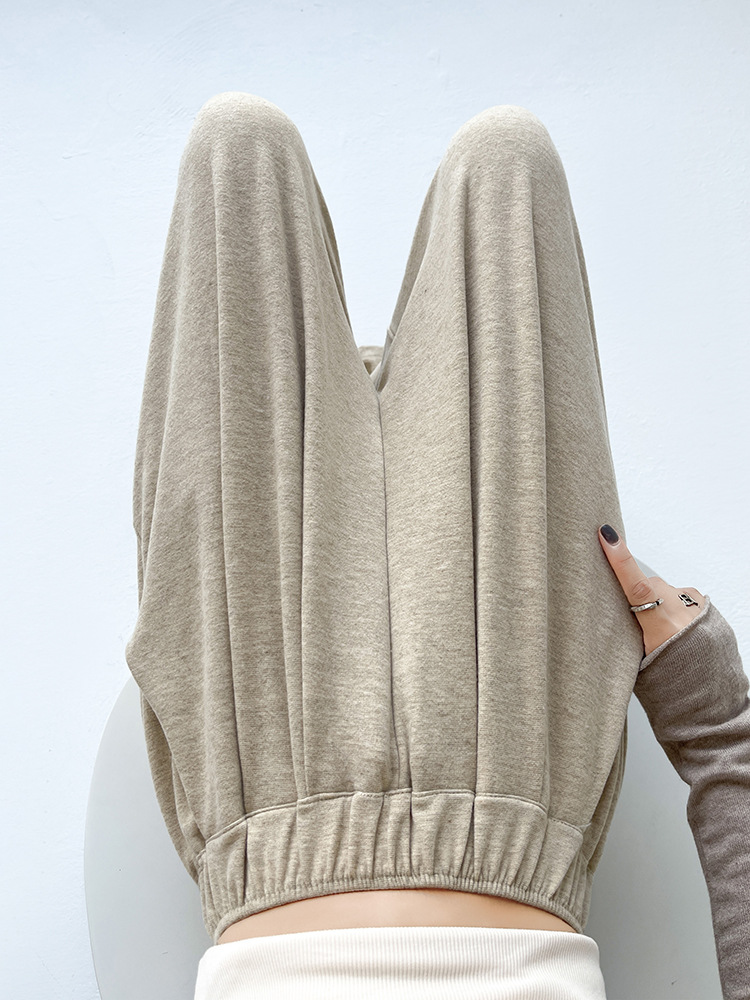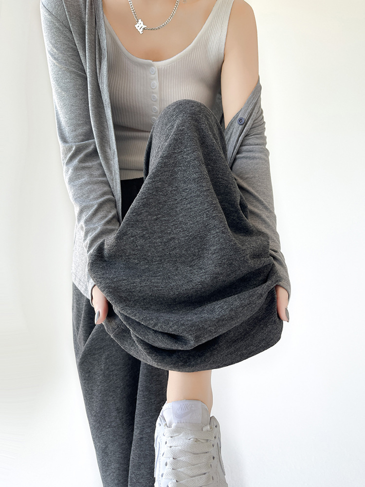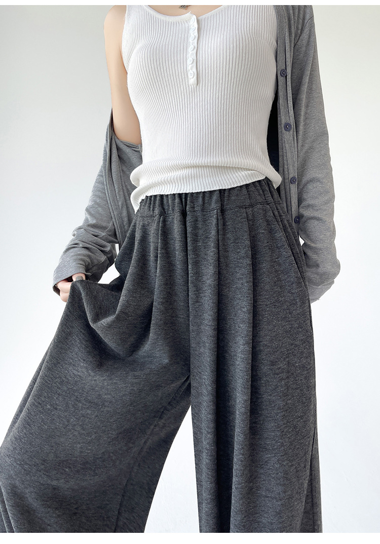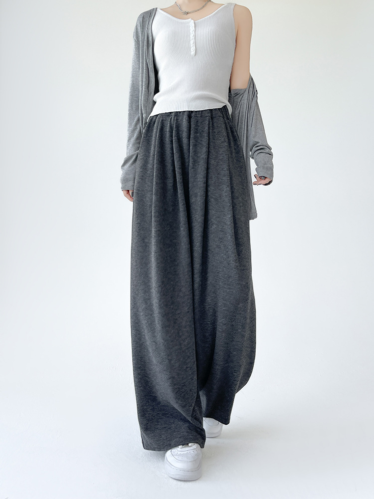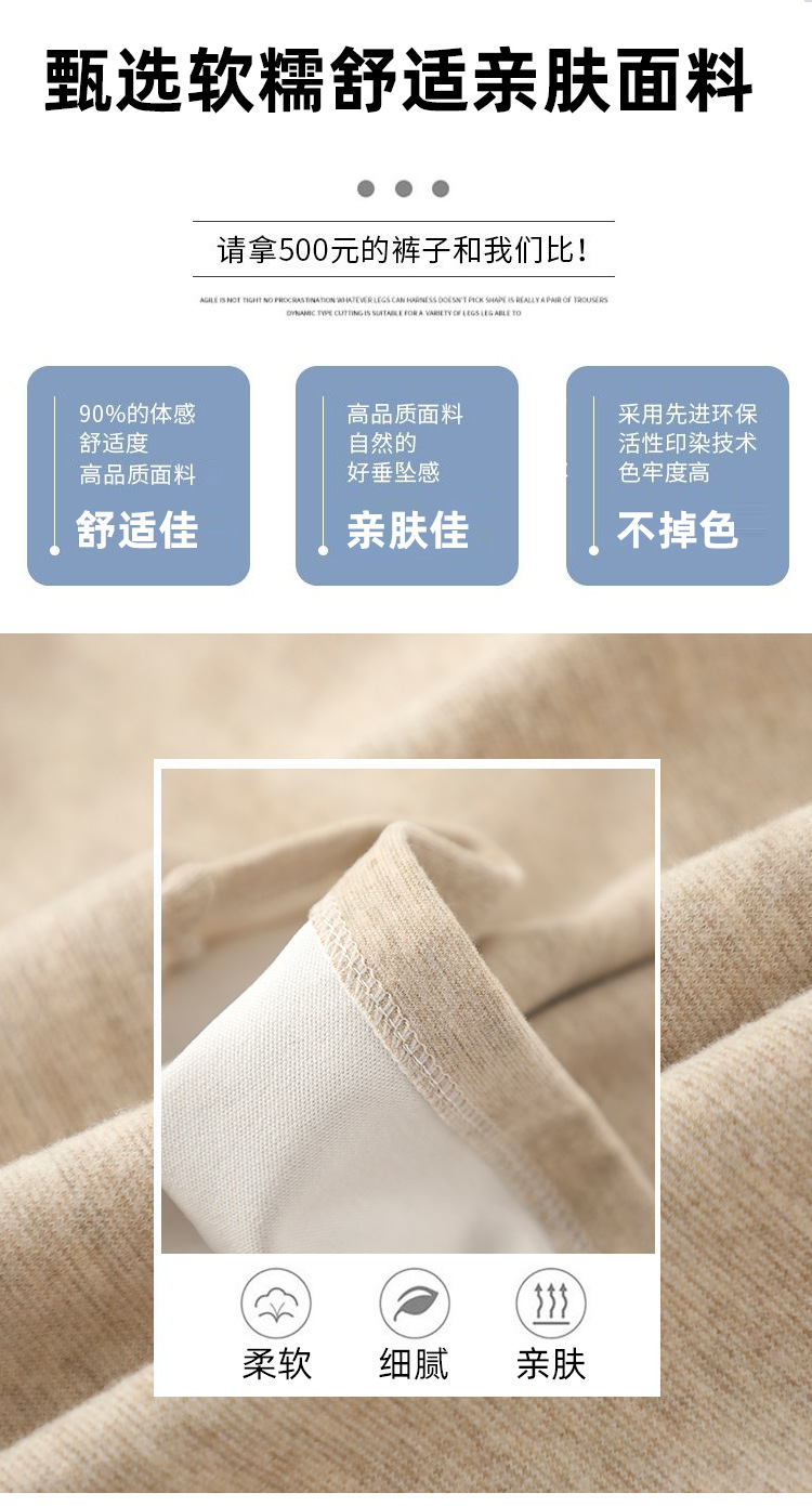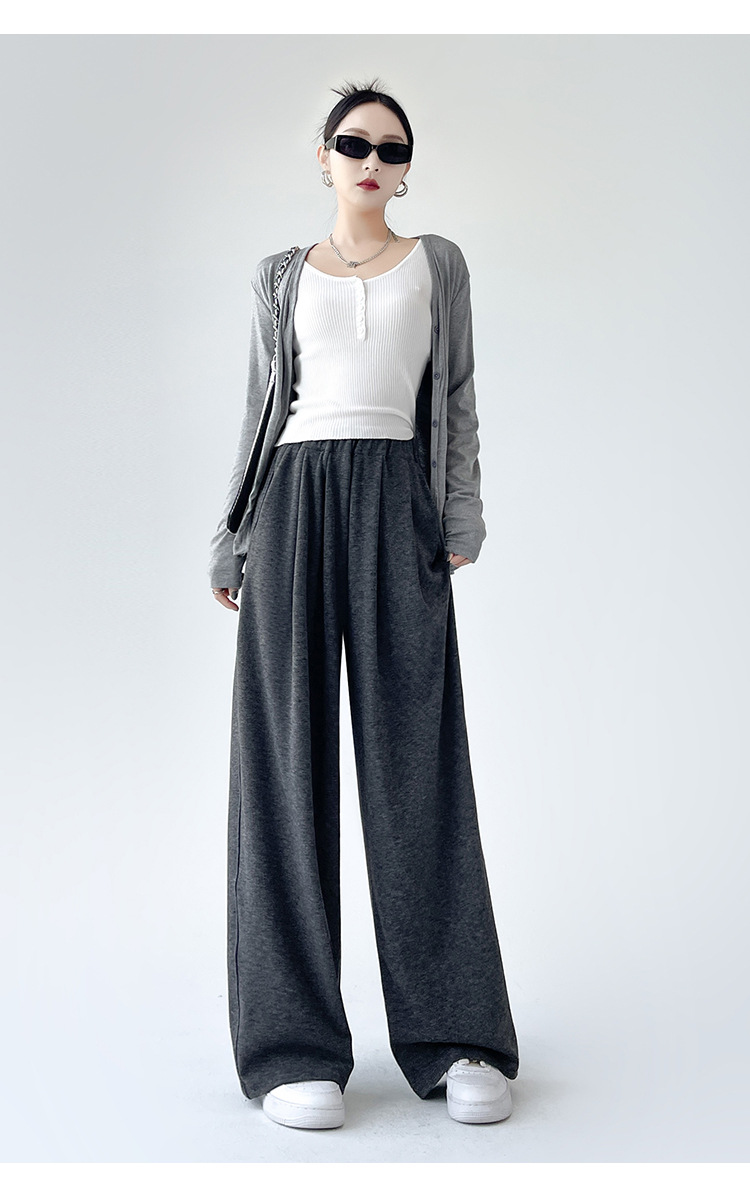 百媚生 糯米阔腿裤女高腰宽松简约直筒垂感休闲裤子 K8602