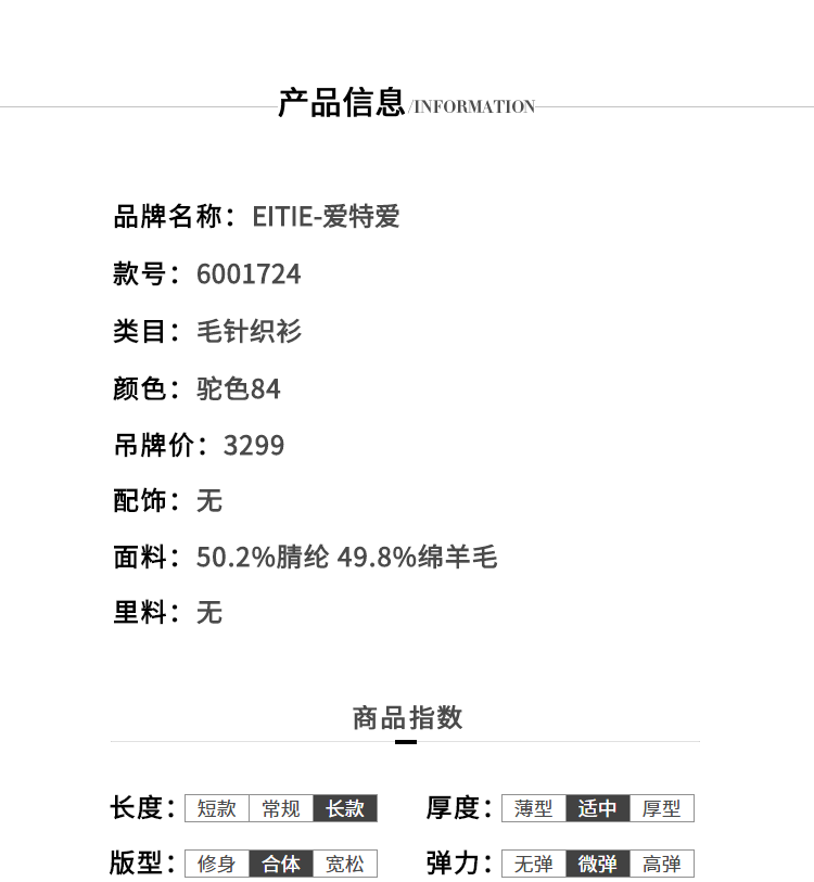 EITIE爱特爱秋冬甜美洋气宽松中长款打底针织衫女套头6001724
