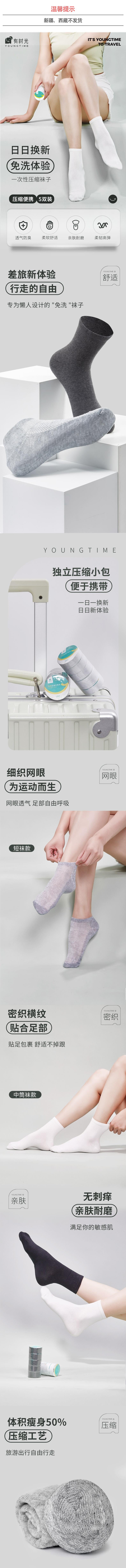 有时光 便携压缩短袜灰色5双*2 6973275766527