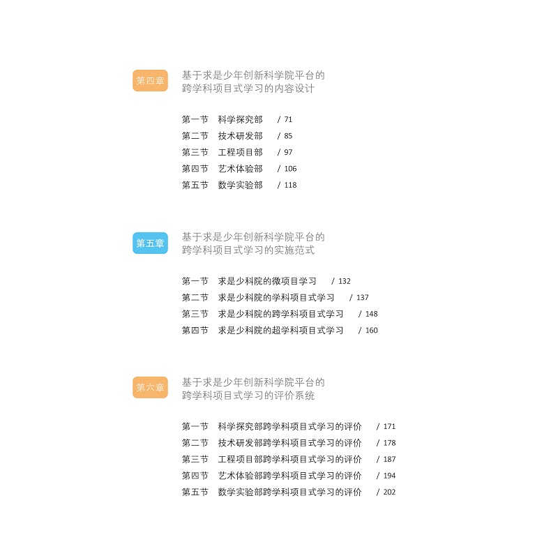 书稿梳理了学校在跨全式项目育人模式的理论基础,总结了通过“跨地域”圈学习场建设,“跨领域”圈项目课程架构,“跨界域”圈项目化学习,“跨思域”圈素养型评价的跨圈式育人模式。