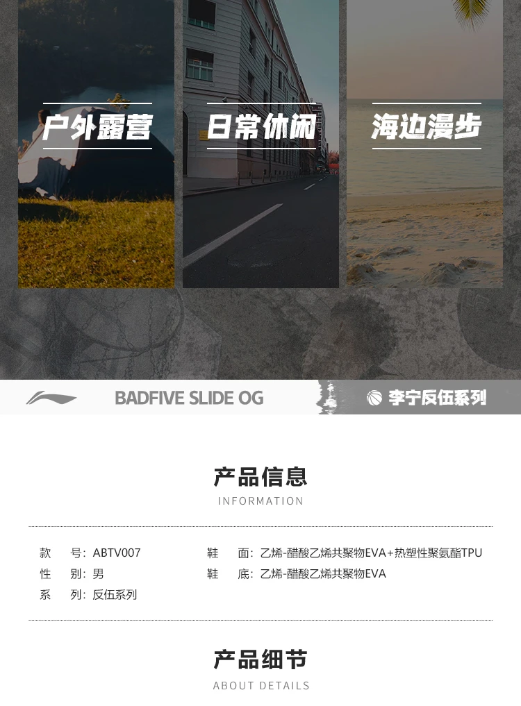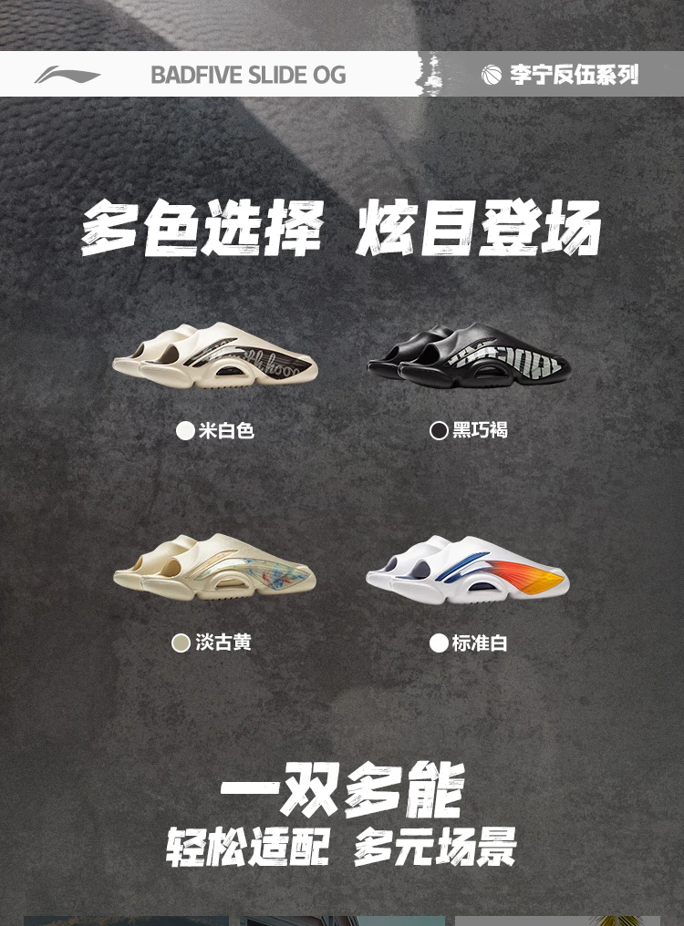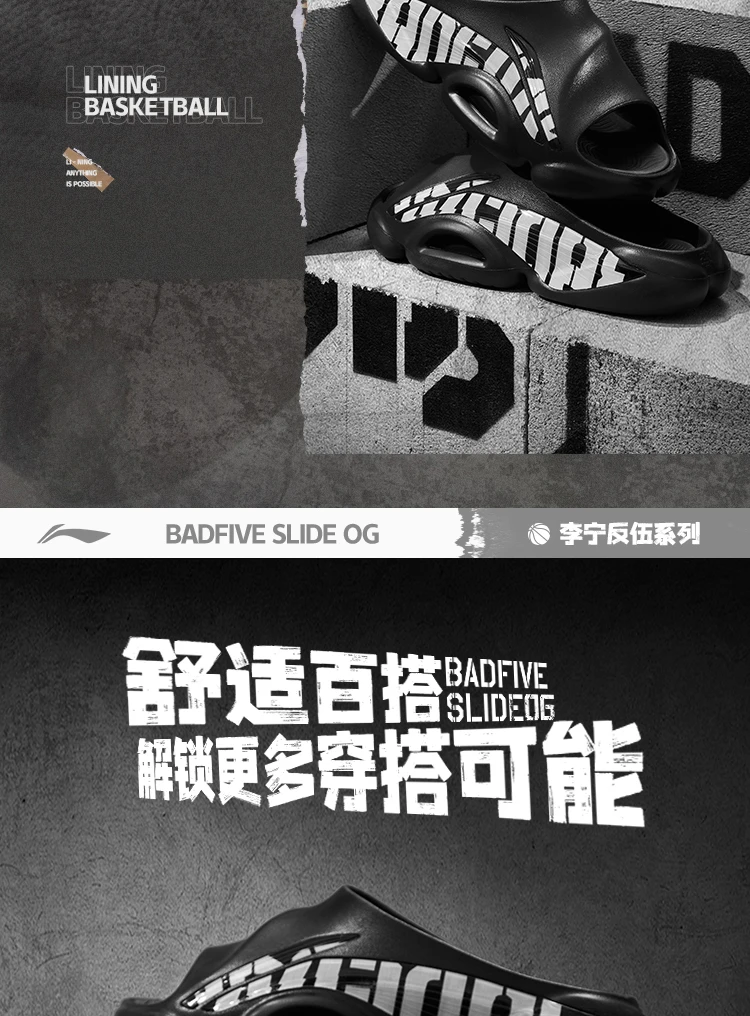 李宁反伍BADFIVE SLIDE OG男子篮球场下拖鞋ABTV007