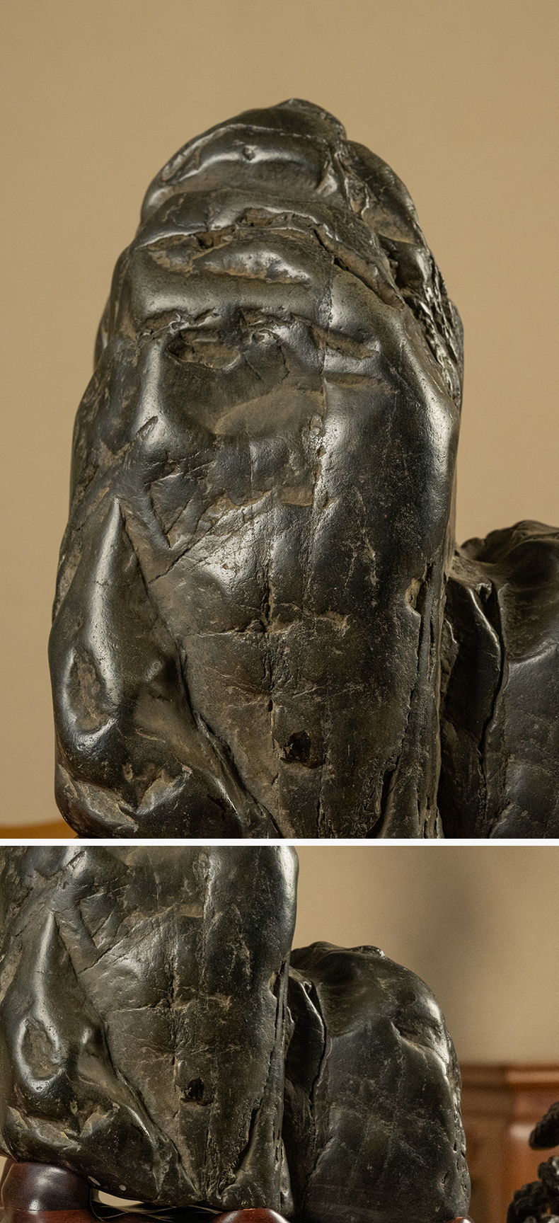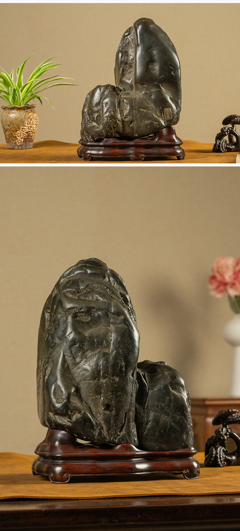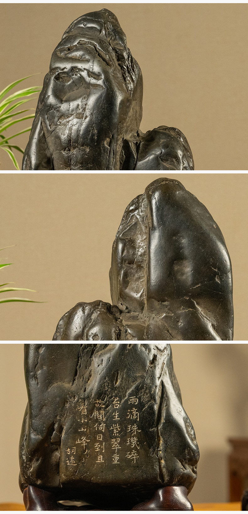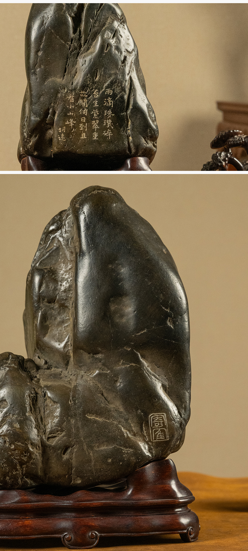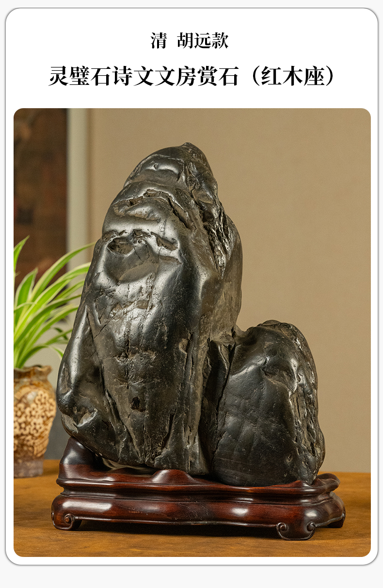 清 胡远款灵璧石诗文文房赏石(红木座)