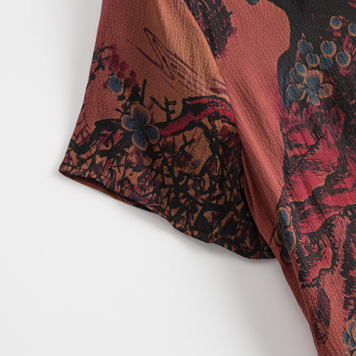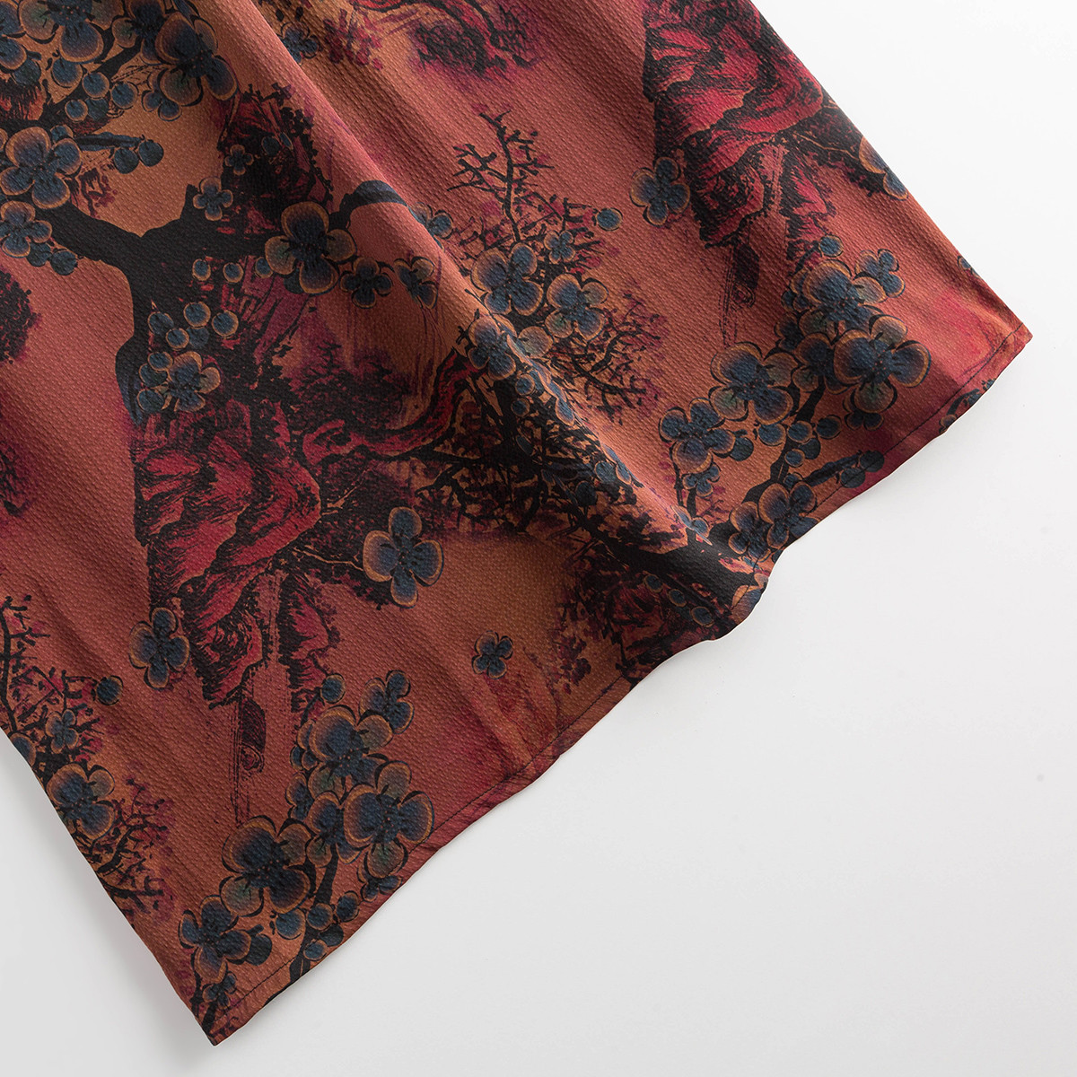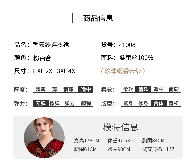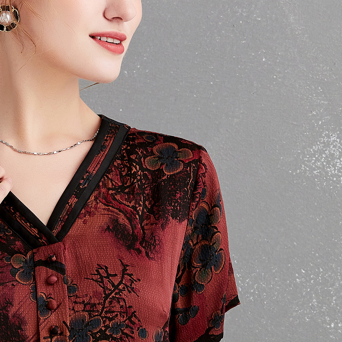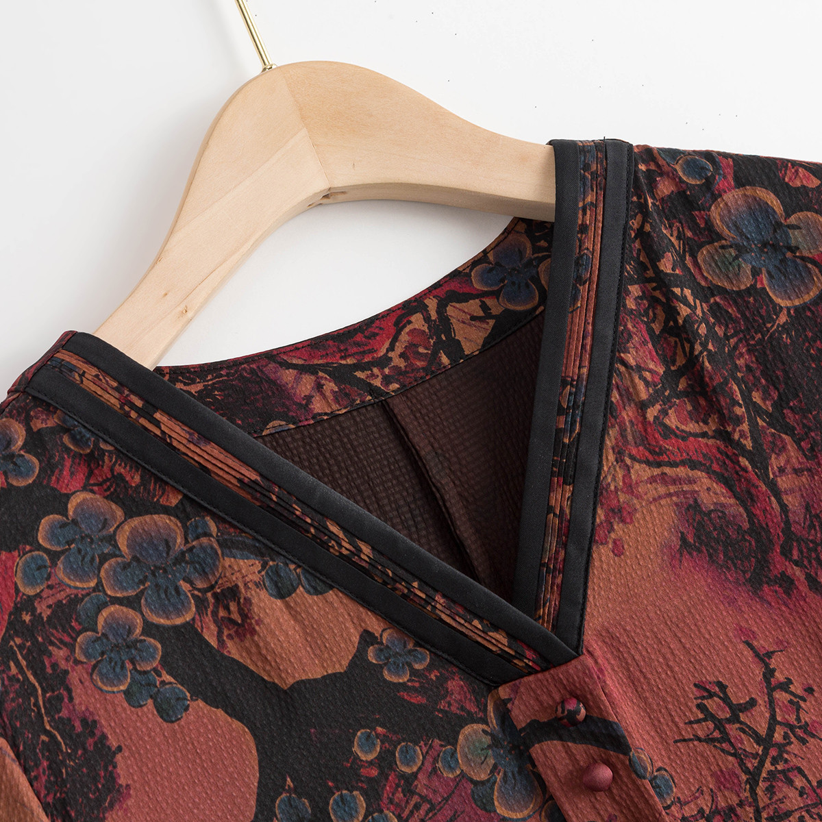 上海旗袍厂XT-21008-3复古V领桑蚕丝连衣裙 气质中腰碎花民族风女式香云纱连衣裙
